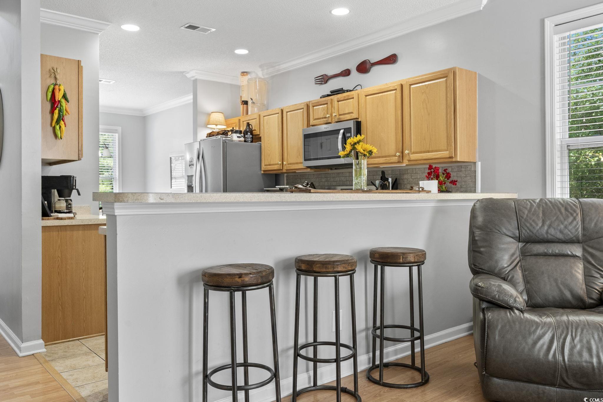 Welcome to this beautifully maintained 3-bedroom, 2.5-bath semi-detached home in the highly desirable Berkshire Forest community!This spacious residence features an open-concept layout with vaulted ceilings, laminate flooring throughout the main living area, and a modern kitchen equipped with stainless steel appliances. The first-floor primary suite offers a walk-in closet, additional linen storage, and an en-suite bath with a large shower and single vanity. Upstairs, you'll find two additional bedrooms and a shared full bathroom. Enjoy outdoor living with a generously sized patio overlooking a serene pond, all set on a cul-de-sac lot with brick veneer accents, an attached storage area, and a two-car garage. Berkshire Forest offers resort-style amenities, including walking trails, sidewalks, a pool with hot tub, clubhouse with a kitchen, game room, fitness center, billiards, tennis and basketball courts, and access to scenic Silver Lake. Residents also enjoy exclusive access to the Atlantica Resort Beach Club. Conveniently located just minutes from the beach, top-rated golf courses, shopping, dining, Tanger Outlets, the mall, and the airport—this is coastal living at its finest!
