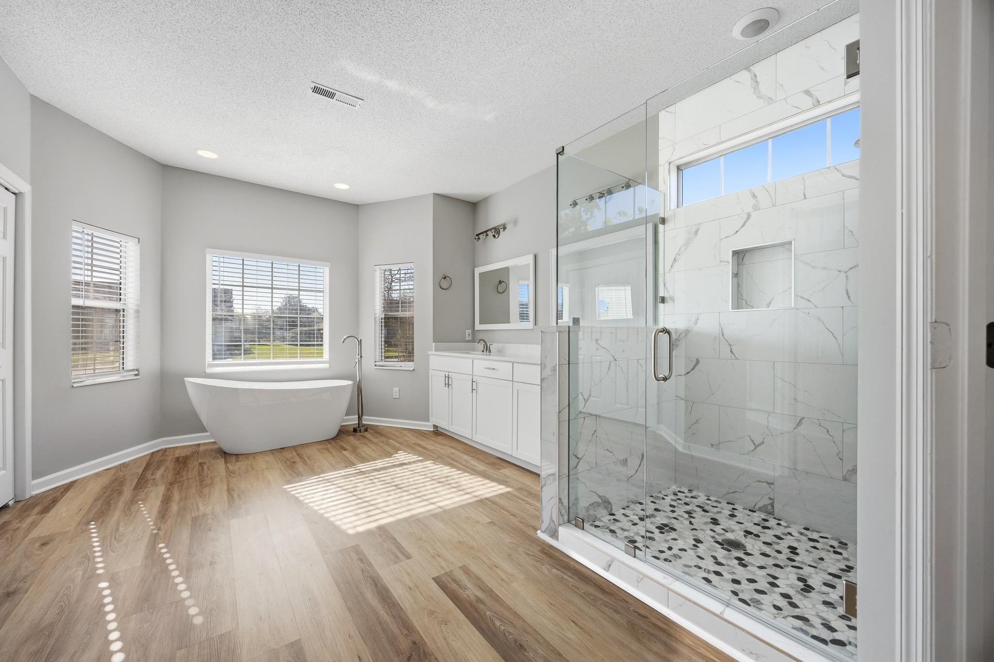 This beautiful and spacious 4-bedroom, 2-bath home in the desirable Southwood community offers serene pond views and modern updates throughout, making it an ideal retreat near Surfside Beach. The open layout features a grand living room with a cozy fireplace, soaring vaulted ceilings, and a ceiling fan, complemented by a huge family room boasting vaulted ceilings and two more fans—all enhanced by fresh luxury vinyl plank flooring and new paint for a bright, contemporary feel. The kitchen shines with brand-new cabinets, gleaming granite countertops, stainless steel appliances, a convenient breakfast bar, and ample pantry storage. The luxurious owner's suite provides private patio access and an enviable en-suite bath complete with a tile walk-in shower, double-sink vanity with new fixtures, and a stunning freestanding soaking tub for ultimate relaxation. Guest bedrooms include new ceiling fans and share an updated bath with fresh vanity, sinks, and granite, while a bonus room over the garage adds flexible space with closet and attic storage. Step outside to the expansive 14x24 patio off the family room, perfect for enjoying peaceful pond vistas. Call today to schedule your viewing of this lovely home! *Seller is SC realtor/broker*
