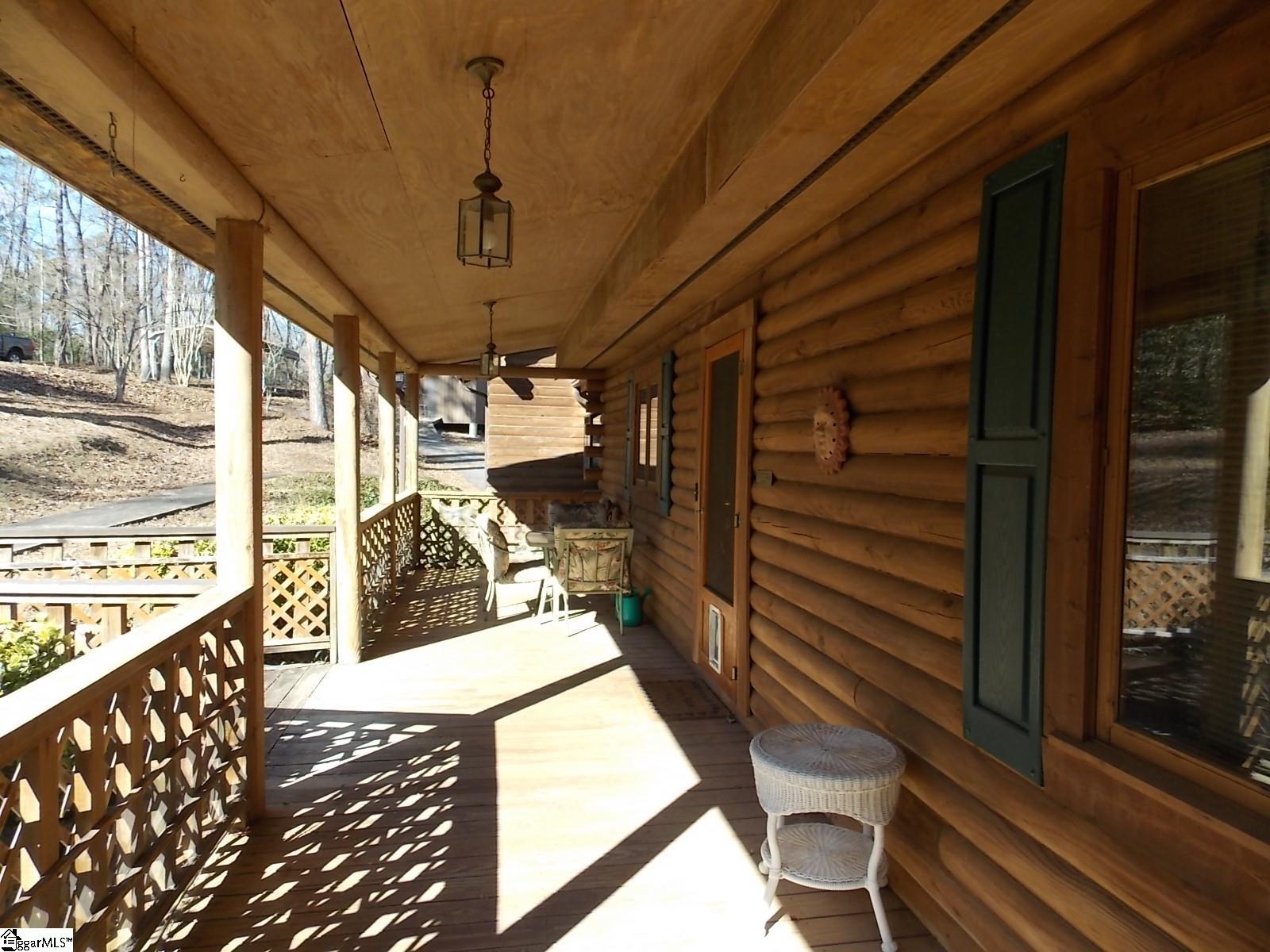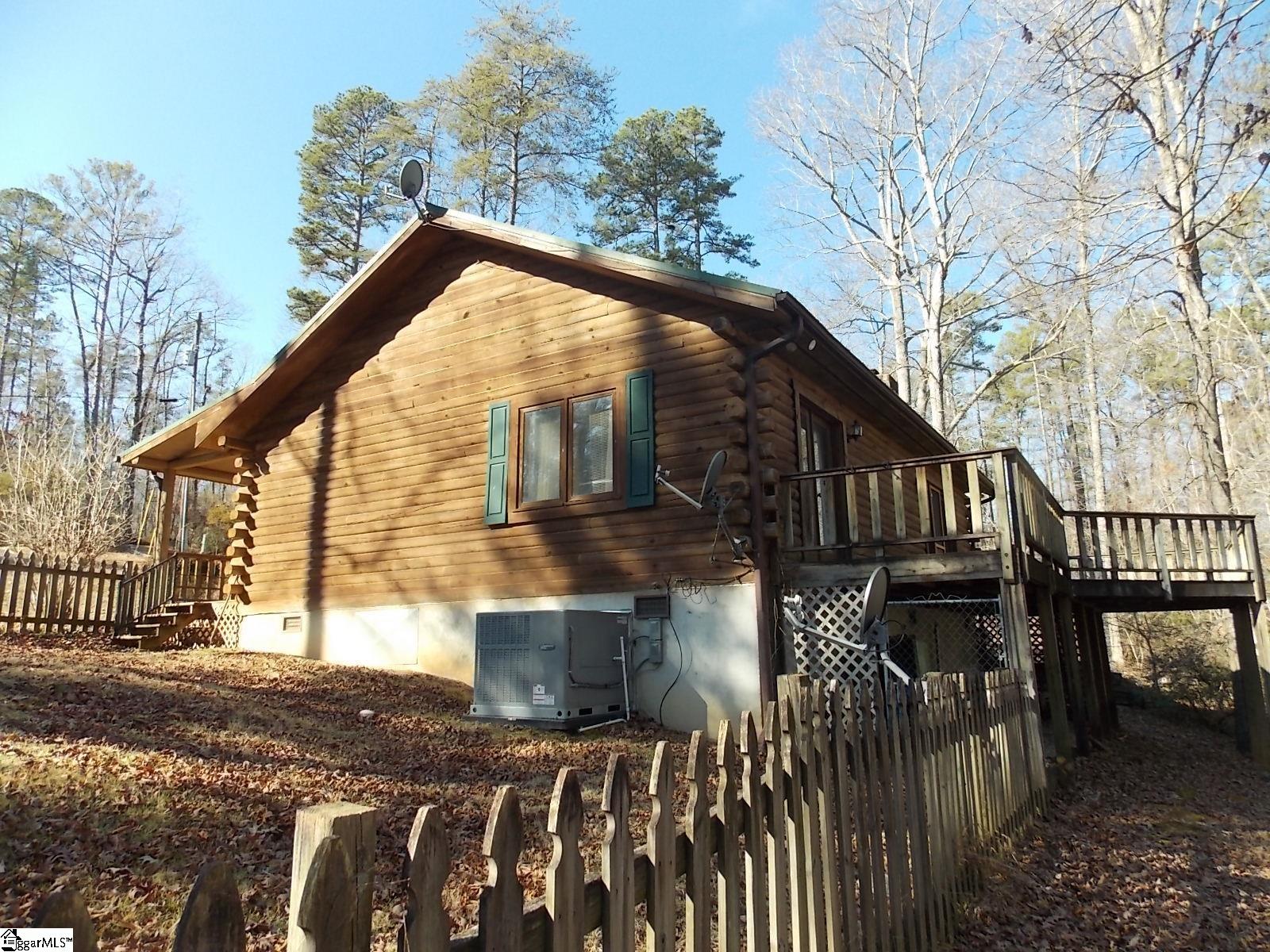 This is a Southland Log Home with just under 1200 sq ft and it is being "SOLD AS IS". It only needs some TLC to bring it back to one beautiful Log Cabin. The back deck will need to be addressed and the 28'x20' outbuilding staircase going to second level will need new treads. Outbuilding also has a neat elevator for hoisting up things to the upper level. A metal carport 14'x20' will protect one car or pickup plus the home offers room for one car as well. This cabin just had a new HVAC installed within last 1.5 years plus a new well pump was put in, in 2025. The metal roof was installed 2003 and they are good for 50 years. This cabin is just waiting for the new owner to move in and take your time with the repairs while you are living there. Utility bills will be very easy as log homes tend to be very energy efficient both heating & cooling. The two bedrooms each have a full bathroom. The dish washer is new but not hooked up. Washer and dryer both stay so all appliances come with this purchase. The location of this home is only 4 miles to Table Rock State Park & the lakes are just 13 miles away. A small creek runs out back just down the slope. If you clear a few trees out back you will have a full-time view of Caesars Head mountain range. Very easy drive to Pickens, Easley and or Greenville plus Hendersonville NC is just a short drive.