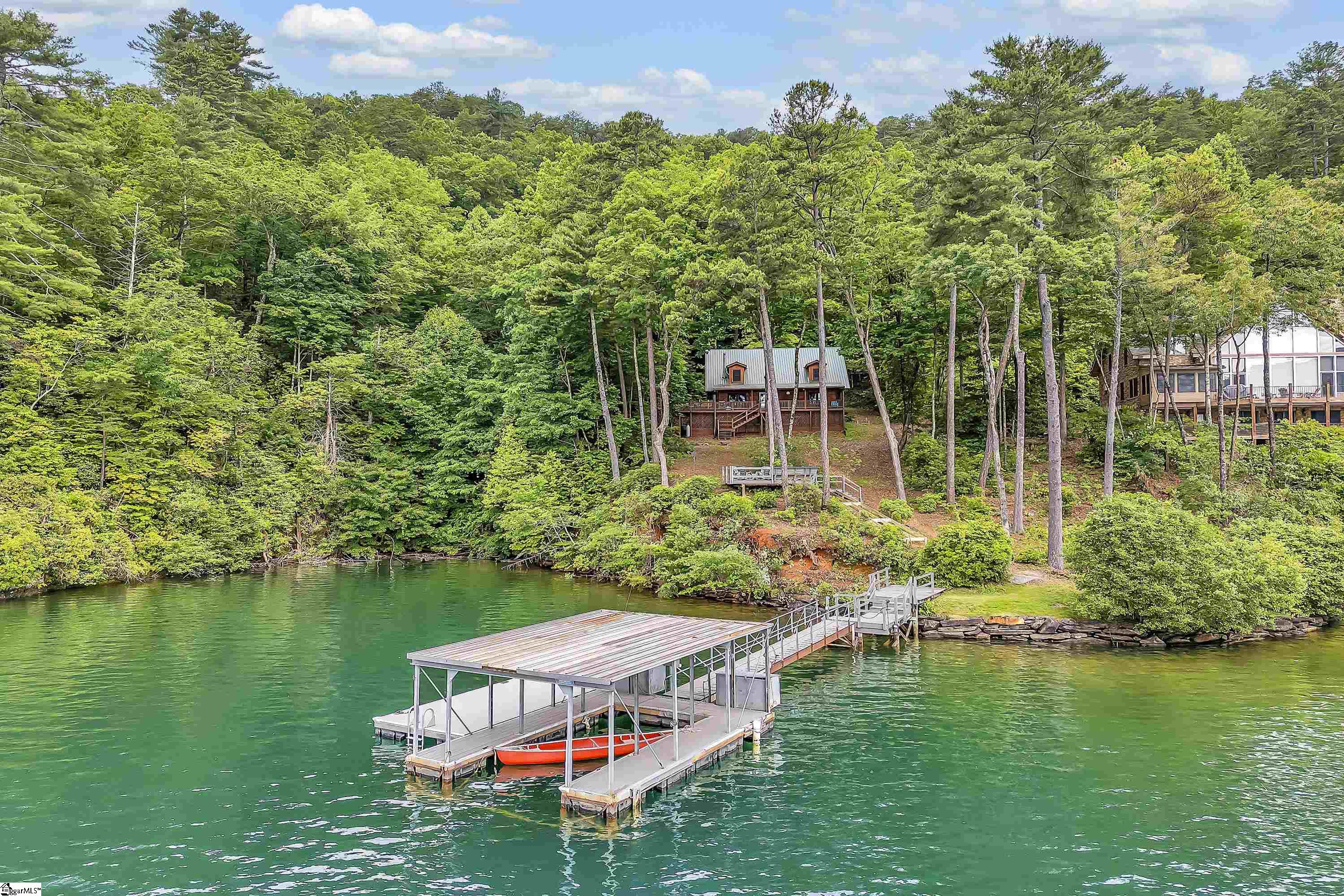 RARE opportunity on stunning lake jocassee! Upstate South Carolina and Western North Carolina are home to beautiful lakes and mountains, but nothing compares to Jocassee. National Geographic touted lake jocassee as a Top 10 out of 50 "Last Great Places - Destinations of a Lifetime". This mostly undiscovered, 7,500+acre mountain lake has less than 50 homes total on the deepest, clearest, coolest water around. You can go days without seeing other boats and the scenery is jaw-droppingly natural; surrounded by 50,000 protected acres of Jocassee Gorges State Park and Duke Energy land. Topographically, one of flattest lots on the lake with a nearly 5-mile view across the water and into layered Blue Ridge Mountains. Imagine the possibilities with such a special lot. A tidy, well-kept 4 bedroom, 3 bathroom log cabin has been the destination of many good times and memory-making experiences. Too many updates/upgrades to list. It's also been a very successful rental over the years. Comfortable and functional layout with strong living space and a wonderful deck to take in the scenery. Another rarity on Jocassee; no tram is needed to get to the lower deck, pier, and covered dock. You can actually have a front yard at this approximately 2-acre estate lot with nearly 300' of lake frontage. There are dozens of waterfalls (Whitewater Falls is around the corner), as well as fishing, boating, and scuba diving for multiple generations to enjoy. A short drive to resort mountain towns of Cashiers and Highlands, under an hour to Clemson and just over an hour to Greenville. These opportunities are rare, so if you are interested reach out for a showing today.