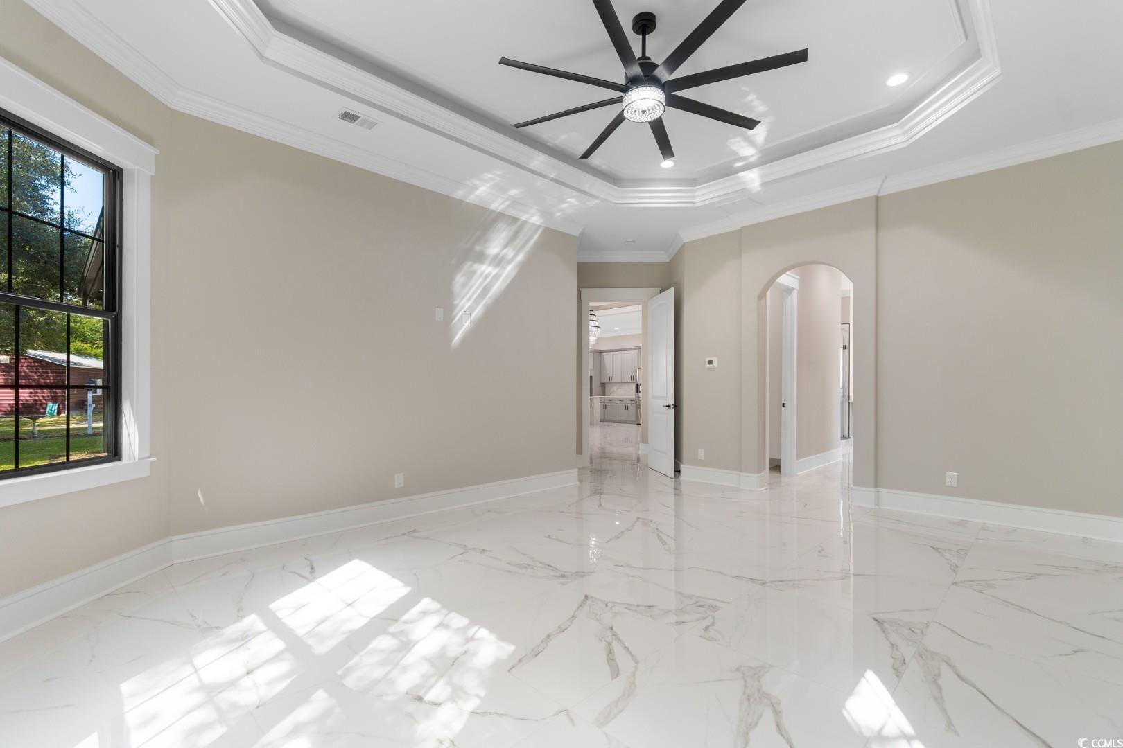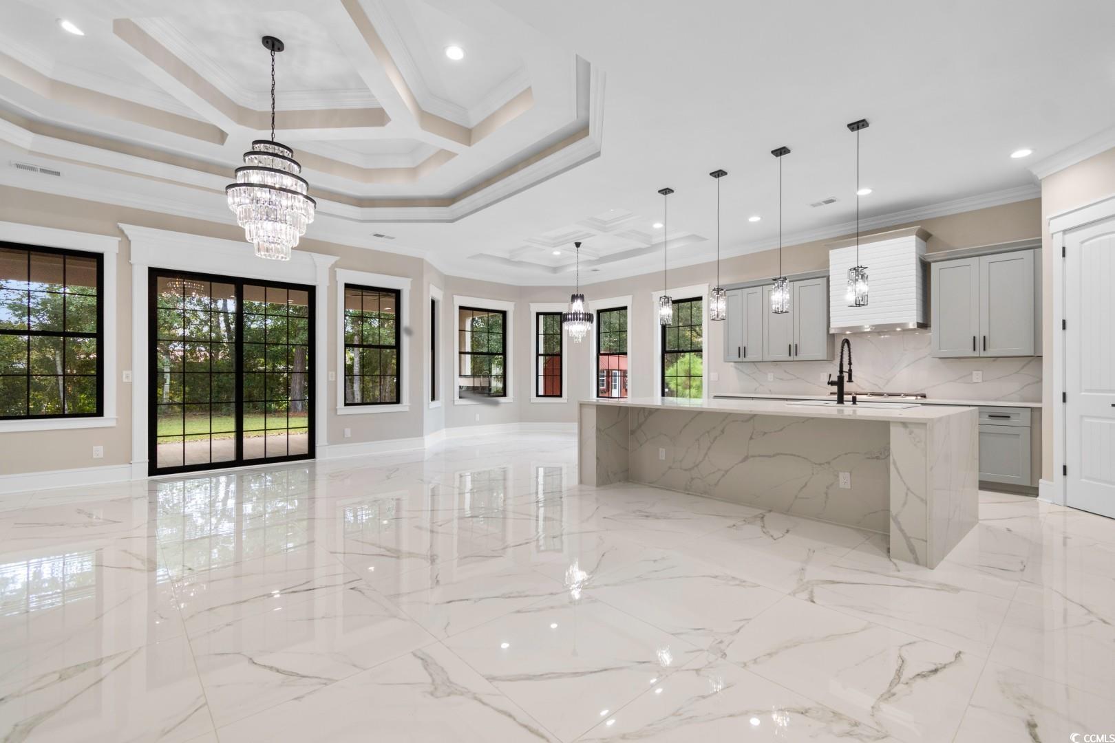 Welcome to this stunning Mediterranean style newly built 4 bedroom, 3 bathroom home in the heart of Little River, blending modern style, everyday comfort, and thoughtful design. From the moment you walk in, you're greeted by a spacious foyer that welcomes you to the open-concept living area featuring 12-foot ceilings, a cozy fireplace with built in , porcelain tile through, and custom tray & coffered ceilings that elevate the space with a touch of luxury. This expansive chef's kitchen showcases, custom cabinetry, stunning quartz countertops with a full-height backsplash that matches the countertops, a large waterfall island , high-end stainless steel appliances, and a generous pantry. Designed perfectly for everyday function with upscale style for effortless entertaining. Retreat to the spacious master suite, boasting elegant tray ceilings, two walk-in closets with custom shelving, and a spa-inspired bathroom with an oversized slab walk-in shower, double vanities, and a relaxing jetted tub. Two of the additional bedrooms are joined by a Jack-and-Jill bathroom with a double vanity, tray ceilings, and large custom closets. The fourth bedroom has an en-suite bathroom which is perfect for guests or a home office. The roomy laundry room has plenty of cabinets for storage, counterspace for laundry days and a sink. Step outside to the spacious covered back porch, which features an outdoor kitchen area with granite countertops and a built-in stainless steel refrigerator sets the stage for unforgettable gatherings and weekend cookouts! This home features a spacious three-car side garage with epoxied flooring. Additionally, this breathtaking home offers all high end chandeliers, the guest bedroom ceilings fans have speakers and multicolor lights, LED vanity mirrors, built in exterior light surround the home and so much more! Located within a short to the beach and all that the Grand Strand has to offer! Don't miss out on this exceptional property, schedule your showing today!