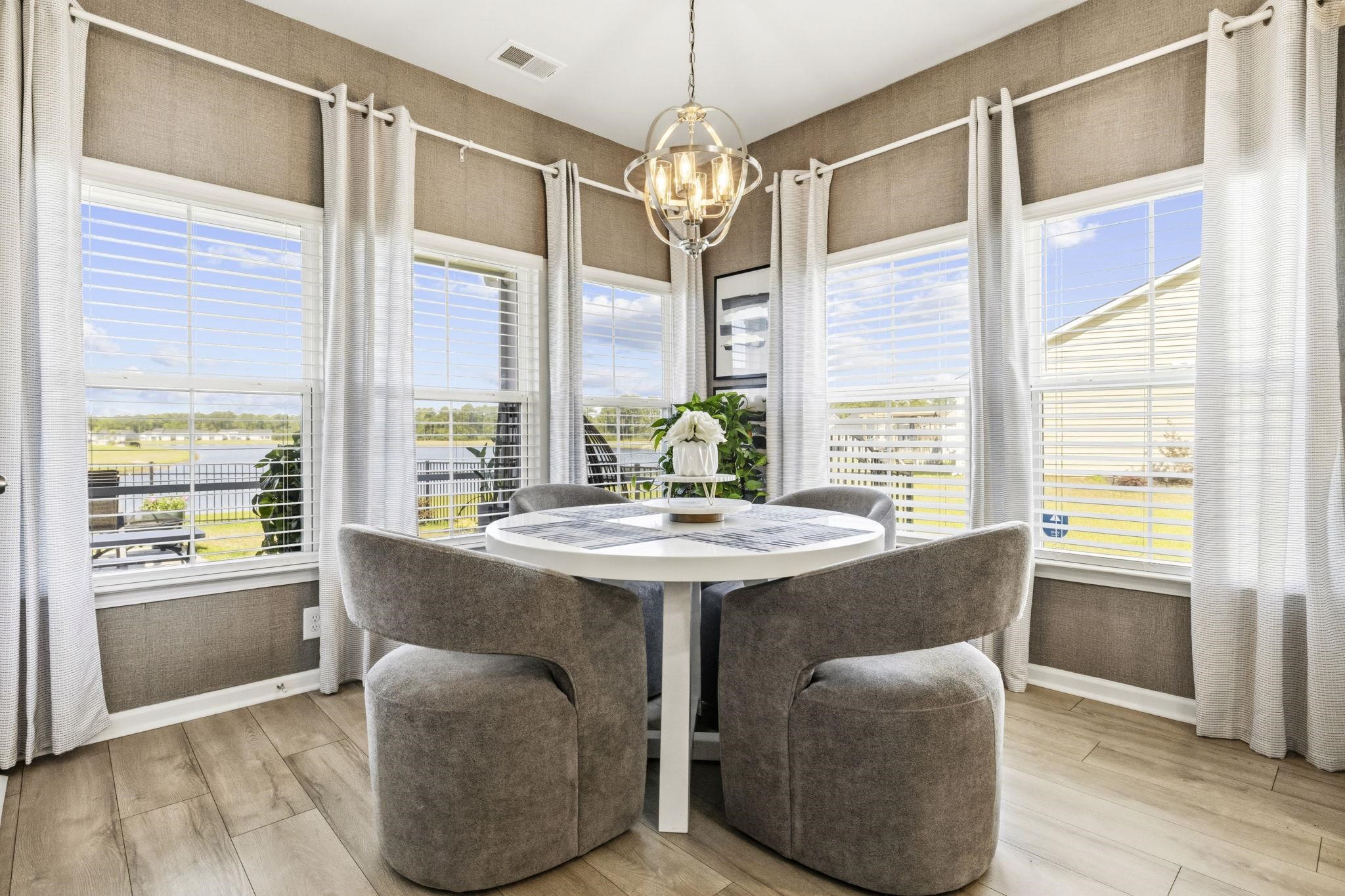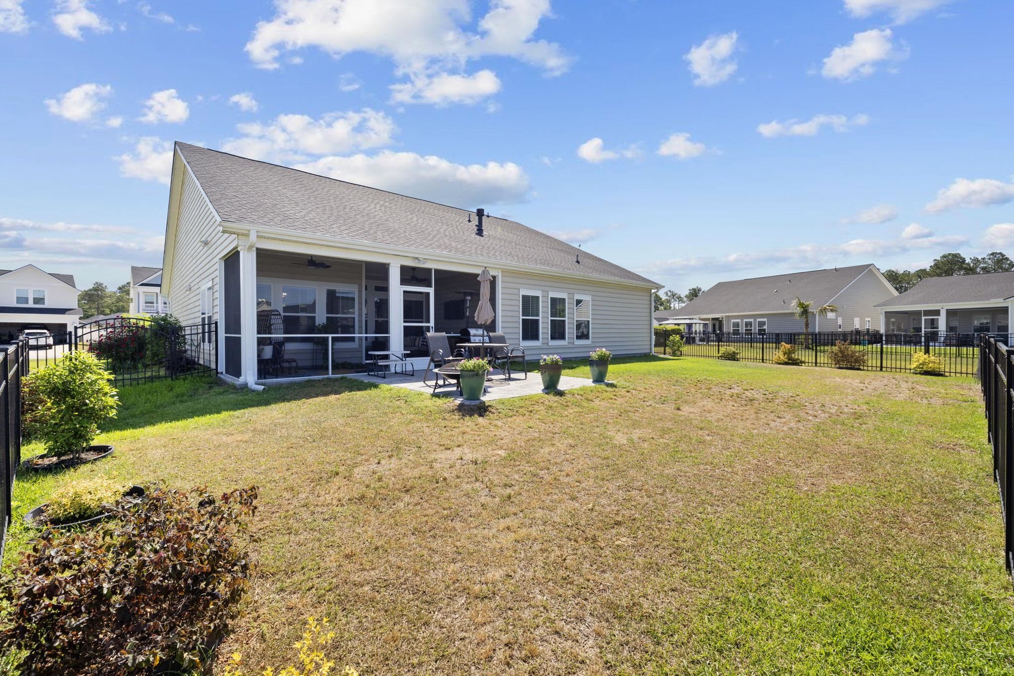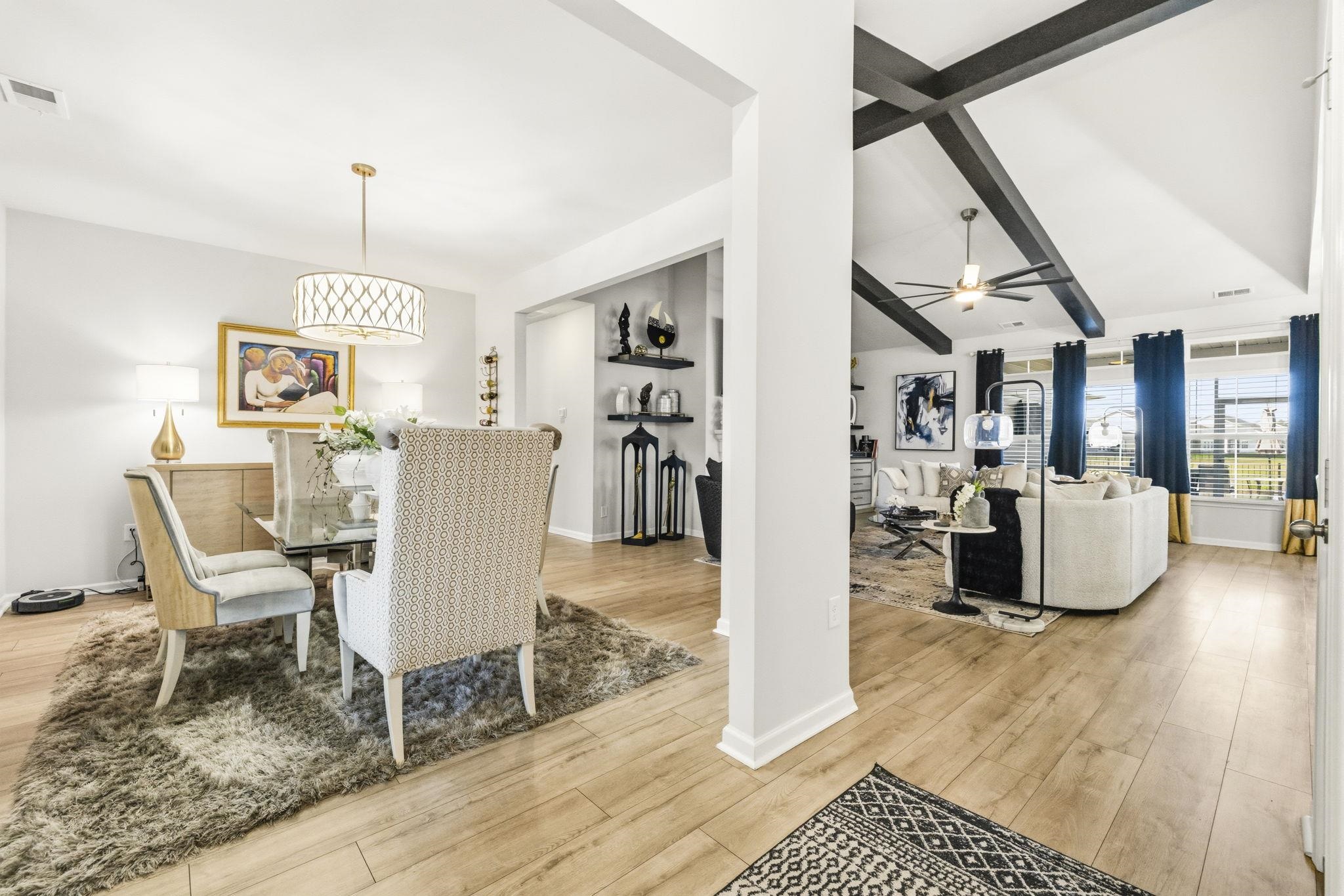 OPEN HOUSE- Saturday and Sunday 12pm-2pm - Welcome home to one of the most coveted lots in the entire neighborhood — with generous space on both sides and breathtaking, unobstructed lake views, this property is a rare find. This beautifully designed single-story home offers 3 bedrooms and 2 bathrooms, and what sets it apart is the care and vision the owner brought to every detail. Be sure to note the Ring Doorbell to convey. Starting with a builder-grade foundation, they transformed this home into something that feels entirely custom and it shows from the moment you arrive. Transom windows at both the front and rear of the home flood the interior with natural light and add an architectural elegance that immediately elevates the space. Every builder-grade light fixture has been replaced with carefully chosen, upscale alternatives, lending a warm and refined ambiance throughout. The living room is a showstopper, featuring custom wood beams overhead and a built-in fireplace that anchors the space with warmth and character. A versatile front room is currently styled as a lounge and flows beautifully, but can easily be converted into a private home office to suit your needs. The gourmet kitchen is a chef's dream, outfitted with a gas cooktop, built-in oven and microwave, a dedicated pantry, and an abundance of storage throughout. A large quartz island takes center stage, complemented by a stylish tile backsplash, pull-out trash and recycling drawers, and luxury vinyl plank flooring that flows seamlessly through all main living areas. A formal dining room provides an elegant space for hosting. The primary suite is a true retreat, boasting two walk-in closets with custom storage solutions and a spa-like en suite bathroom with a double sink vanity. Two additional bedrooms offer flexibility for family, guests, or additional workspace. Outdoor living is where this home truly shines. Enjoy your morning coffee on the covered front porch, relax in the spacious screened-in back porch, or host friends on the elegant paver patio — all within the privacy of a fully fenced backyard with serene lake views as your backdrop. Completing this exceptional home is an attached 3-car garage, providing ample storage and parking for the whole household. And the lifestyle extends beyond your front door, the community offers a pool, playground, and a community garden, making this a wonderful place to put down roots. Homes like this — on a lot this special, with this level of finish — don't come along often. Don't miss your opportunity to make it yours.