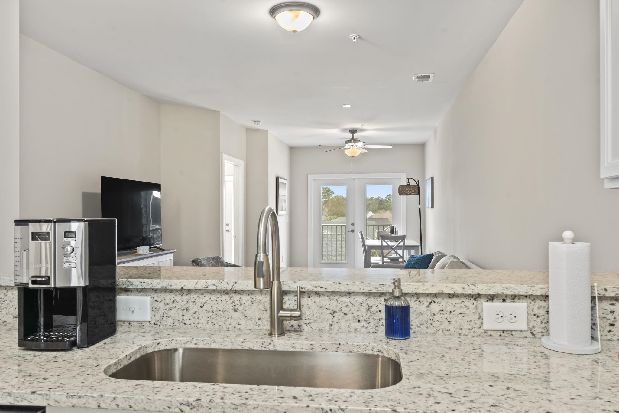 Welcome to The Village at Queens Harbour II! Experience the luxury of this exquisite 'Like NEW' 2 bedroom, 2 bathroom Condominium. This Bright 2024 Built 3rd Floor Condo boasts stunning views of a serene pond. The property features 9-foot ceilings, elegant granite countertops, stainless steel appliances and sophisticated crown molding in the living area. A spacious screened in rear porch spans the full length of the unit, accompanied by a private outdoor storage closet. The building has an elevator for added convenience. Residents can enjoy access to a clubhouse, swimming pool, and grill area. The condominium's prime location offers ideal proximity to beaches, golf, dining, shopping, and entertainment. All information is deemed reliable but not guaranteed. For all HOA questions, please reach out to the HOA directly. All measurements/square footage are approximate and not guaranteed. Buyer and Buyer’s Agent are responsible to verify ALL information.