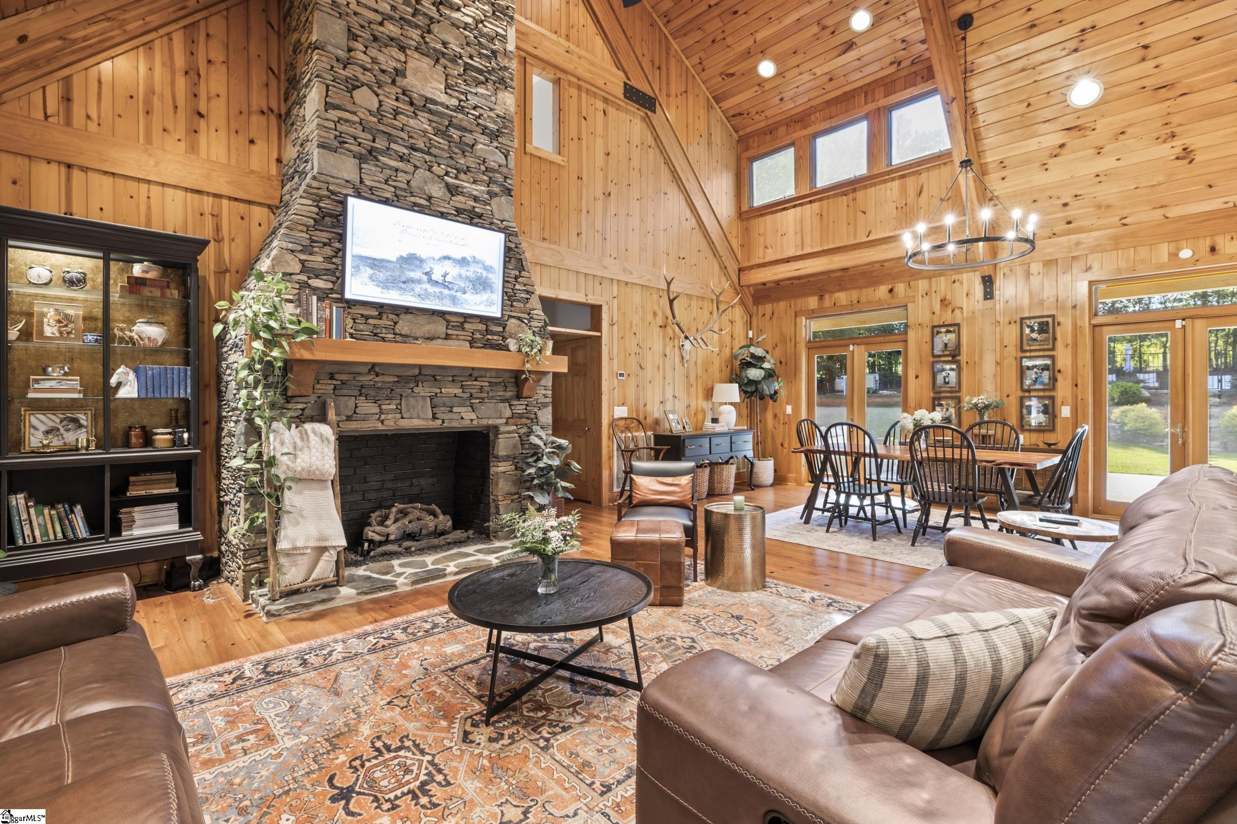 Custom Home on 4+ Private Acres with a Pool, Creek & Unique Interior Charm Tucked away on over 4 acres of peaceful, private land with a creek, this custom-built home offers a rare mix of rustic charm and modern comfort. While the exterior has a more traditional look, the interior features stunning log cabin-style woodwork throughout—creating a cozy, cabin-inspired feel. The open-concept layout is bright and inviting, with a dramatic floor-to-ceiling stone fireplace as the centerpiece of the great room. A spacious loft overlooks the main living area, and each upstairs bedroom—as well as the bonus room—features its own loft, adding both character and versatility. The primary suite is conveniently located on the main floor, offering privacy and ease of access. It includes a custom walk-in closet with built-ins and ample storage space. Also on the main level is an additional bedroom that could easily serve as a home office or guest room. The kitchen is oversized with granite countertops, generous cabinetry, and great flow—ideal for cooking or entertaining. A walk-in laundry room with a sink is just off the kitchen for added convenience. Outdoor features include a saltwater pool (completed July 2022) with all poolside patio furniture included, a detached storage building, an RV or equipment cover, and a treehouse that will stay with the property. The garage is exceptionally designed with even more storage built in. This home is truly one of a kind—private, spacious, and full of thoughtful touches. A perfect retreat with the best of both indoor comfort and outdoor living.