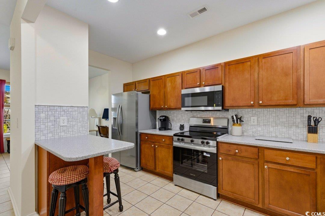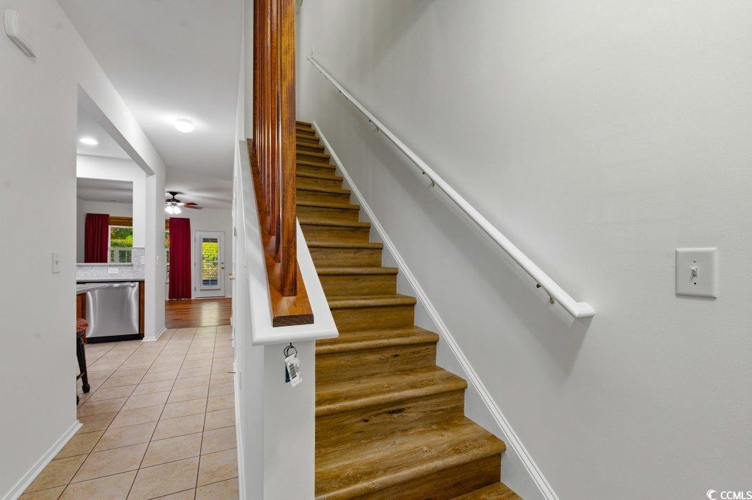 Welcome to Wellington! This move-in ready 2-bedroom, 2.5-bathroom furnished (or unfurnished) townhome is ready to be your next home! Ideally located just a short drive from the beach, restaurants, golf, shopping, and all the exciting amenities the coast has to offer. One of the standout features is the enclosed, screened-in porch with a painted floor and a private view, which you can also enjoy from the custom paver patio outside. Notably, this townhome boasts upgrades rarely found in similar properties, including newer Anderson double-hung windows, whole-home water filtration system, in-line de-scaler, tankless water heater, and whole-home surge protector. The spacious great room, complete with a ceiling fan and light fixture, offers a serene view of the outdoors through a row of windows along the screened porch. The updated kitchen is a chef's dream, featuring Corian countertops, new sink, stylish tile backsplash, brand-new stainless appliances (installed in April 2025), an island, and an added breakfast bar. The dining area is illuminated by a beautiful Tiffany-style light fixture. The first floor, stairwell, and second-floor hallway all have durable LVP flooring. The master suite includes a vaulted ceiling, walk-in closet, and ensuite bath with walk-in shower. The guest bedroom, also with a vaulted ceiling, has its own private bath. For your convenience, the washer and dryer are easily accessible on the same level. Additional updates include a storm door, new evaporator coil for the HVAC system, fresh paint throughout the entire home, and plantation blinds. The HOA takes care of property insurance, water/sewer, lawn maintenance, trash pickup, and pest control, giving you more time to enjoy the beach lifestyle without the stress. It's time to make the move to the beach and leave your worries behind!