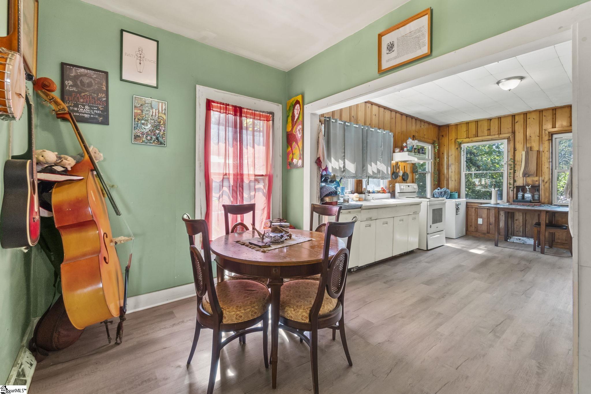 Charming 2-bedroom, 2-bath bungalow located in the heart of Boiling Springs. This home blends classic character with modern updates. The interior offers tall ceilings, hardwood floors, and large windows that fill each room with natural light. The living and dining areas flow seamlessly into the kitchen, which features updated flooring and a practical layout for everyday use. Both bedrooms are spacious and well-lit. Bathrooms have been updated with tile, modern fixtures, and thoughtful finishes. Outdoor living includes a covered front porch and a large back deck overlooking a private yard with mature trees. The lower level provides additional storage and backyard access. Located minutes from local schools, shopping, and major commuter routes. A solid opportunity for those seeking convenience, character, and easy living in Boiling Springs.