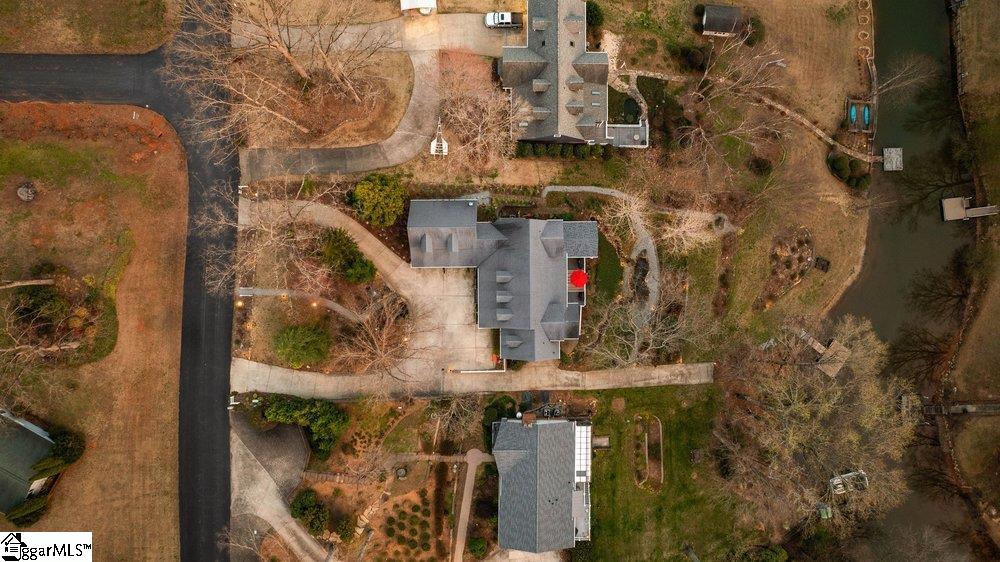 158 Lake Bowen Drive presents a rare opportunity to own a custom built lakefront estate with breathtaking sunset views and private dock access on Lake Bowen. This five bedroom, four and one half bath Cape Cod style home was thoughtfully designed to maximize water views while providing comfortable living across three spacious levels, making it ideal for everyday living, entertaining, or multigenerational living. Enjoy year round lake access from the private dock, recently replaced and built to the largest size permitted on the lake. The dock includes GFI power outlets, seating for eight, and a lighted ramp. Positioned in a quiet cove with minimal boat traffic, the property offers peaceful surroundings, exceptional fishing, and some of the most beautiful sunsets on Lake Bowen. The public boat landing and park are located just minutes away. Inspired by Southern Living’s Crabapple Cottage and enhanced by a local architect, the home was designed to capture lake views and natural light throughout. Construction includes Structurally Insulated Panels for superior energy efficiency, triple pane thermal windows, custom spray coated sheetrock, Superior Walls on the front and side basement walls, and a 50 year Owens Corning mildew resistant architectural shingle roof. Inside, the main living areas feature recently added wide plank hickory hardwood floors. The living room offers two story ceilings and a three sided gas log fireplace shared with the kitchen and breakfast area, creating an inviting central gathering space. The main level primary suite features a tray ceiling with accent lighting and a three sided fireplace. The ensuite bath includes a two person Jacuzzi tub, sit down shower, and dual vanities. The kitchen was designed for both function and entertaining with 88 custom cabinets, granite tile countertops, two full size sinks, a large island, bar seating, glass accent cabinetry, and a built in desk area. Glass block beneath the exterior cabinets allows additional natural light. New white GE Café smart appliances include a double oven smooth top induction range with convection and air fry, a convection wall oven with built in camera, a convection microwave vented outside, and a dishwasher with interior lighting and convection dry. The finished basement offers a large recreation room, bedroom with walk in closet, full bath, mechanical and storage room, and a heated and cooled garage that also functions as a workshop with extensive built in storage. The upper level includes a spacious loft overlooking the living room along with three additional bedrooms. Two bedrooms share a Jack and Jill bath and the third includes a private ensuite bath. A hidden unfinished storage room provides additional space. Outdoor living spaces are designed to fully enjoy the lake setting. Two screened porches overlook the water and connect to a large composite deck. Below the deck, a brick paved patio provides seating for up to fifteen and includes a fire pit area for gathering year round. The landscaped yard features a tranquil pond with three waterfalls and streams, stone pathways, and low maintenance plantings including azaleas, hydrangeas, magnolias, oaks, and Japanese maples. Additional features include a four ton heat pump with zone controlled HVAC, a John Deere 40kw turbo diesel generator capable of powering the home for extended periods, smart lighting, WiFi connected systems, and internet based irrigation. The home also offers handicap accessibility with wide doorways and step free access into the main level and garage. Conveniently located with easy access to Interstate 26, South Carolina Highway 9, and South Carolina Highway 292, this property offers both privacy and convenience. Construction and maintenance records have been carefully maintained. This exceptional lakefront property combines quality construction, thoughtful design, and a peaceful setting to create a truly remarkable Lake Bowen lifestyle.
