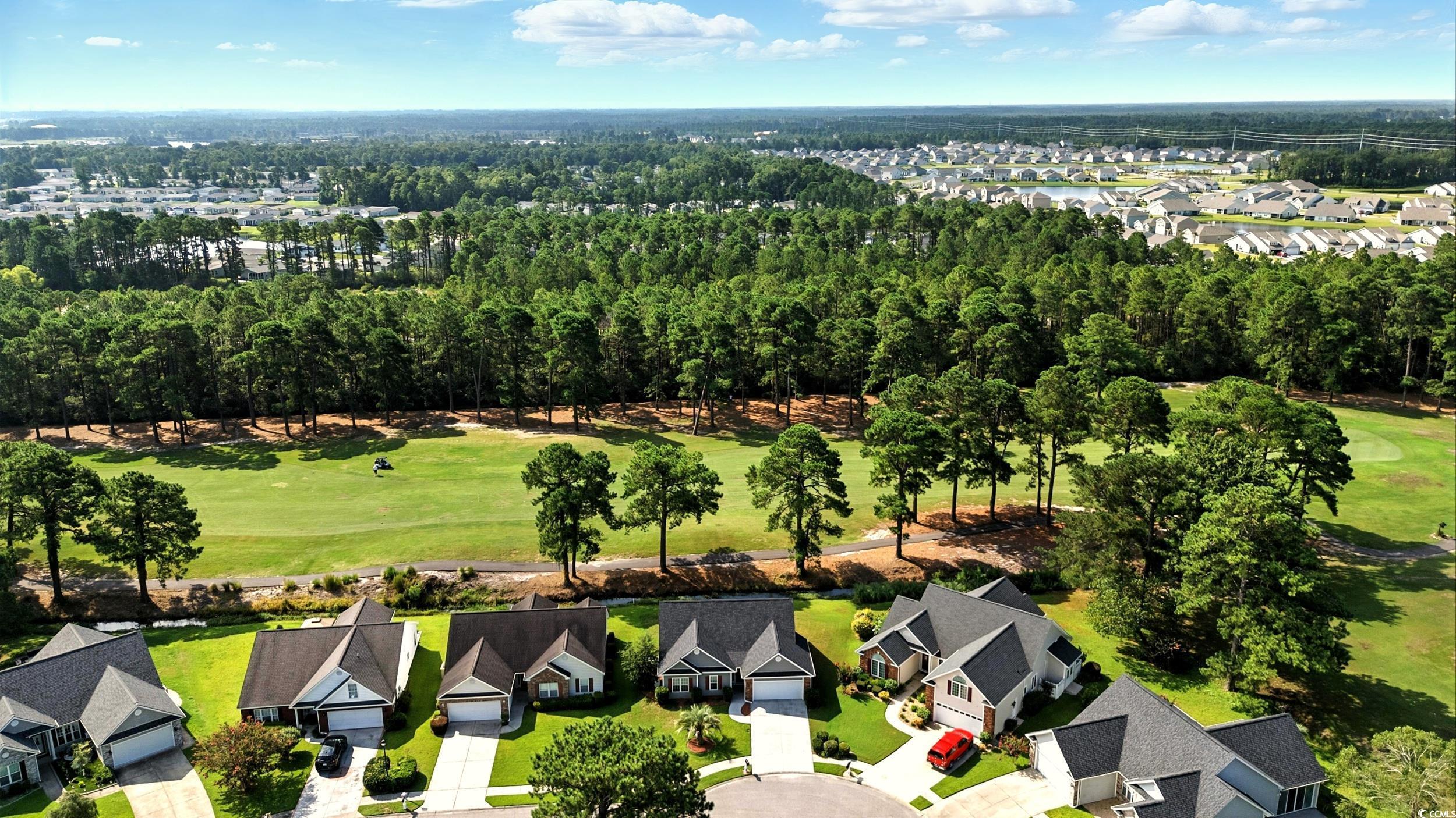 *OPEN HOUSE SATURDAY, NOVEMBER 22nd between 12PM-2PM* Set on a quiet cul de sac in The Commons, this 3 bedroom, 2 bath ranch offers golf course views and functional living space inside and out. The extended driveway leads to a two car garage with attic storage, and a large concrete patio in the backyard provides plenty of room for relaxing or entertaining with the fairway as your backdrop. Inside, vaulted ceilings and sliding glass doors fill the open living area with natural light. The living room includes a fireplace and flows easily into the kitchen and dining spaces. The kitchen is designed with 42 inch white cabinets, quartz countertops, under cabinet lighting, a breakfast bar, pantry, and all major appliances. All bedrooms are located along one side of the home. The primary suite overlooks the golf course and features a walk in closet along with a private bath that includes double sinks, a walk in shower, and whirlpool tub. Two additional bedrooms are positioned near the front of the home and share a full bath. Laminate wood flooring extends through the main living areas, with carpet in the bedrooms. A separate laundry room adds extra storage and convenience. The Commons is minutes from Coastal Carolina University, HGTC, shopping, dining, and the beach.