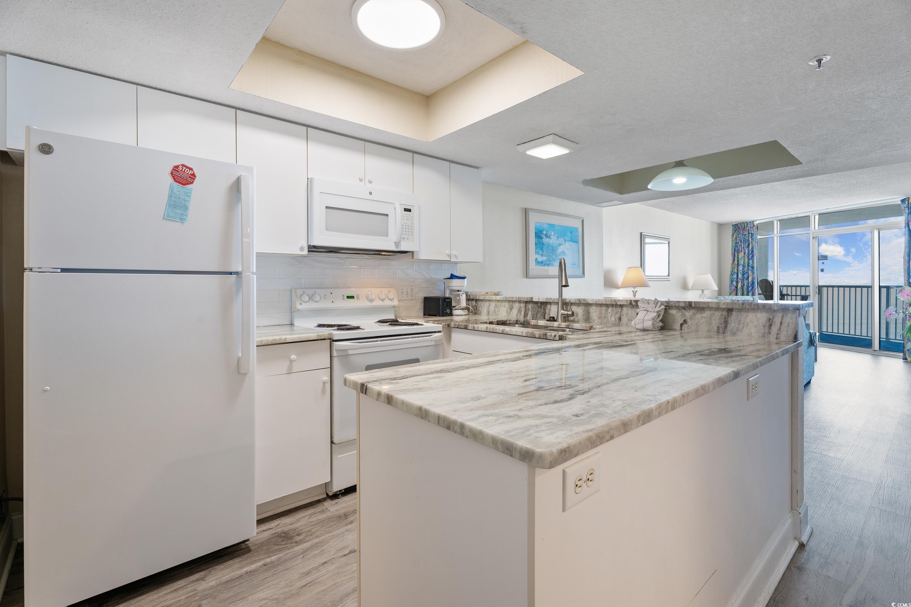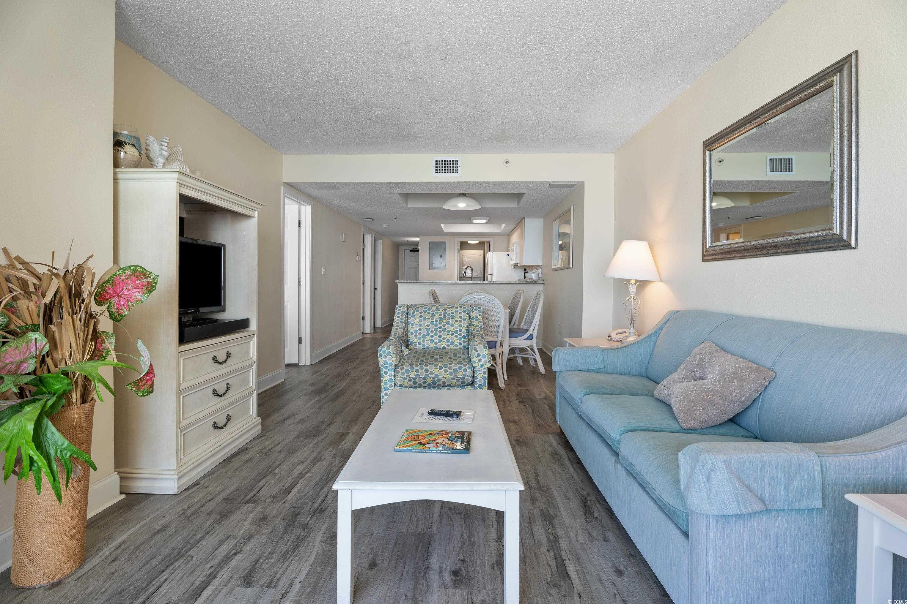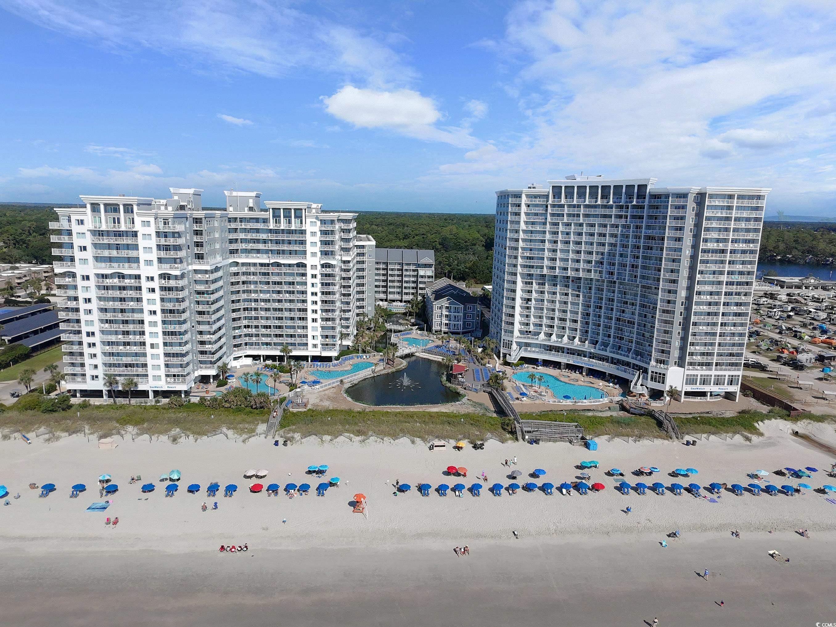 Discover coastal luxury in this beautifully updated two-bedroom, two-bathroom oceanfront condo perched on the 16th floor of SeaWatch Resort. Featuring newly installed LVP flooring throughout, a modern kitchen with granite countertops, and upgraded vanities with granite tops in both bathrooms, this residence is move-in ready. The master bedroom and living room both showcase direct oceanfront views, while a spacious private balcony offers panoramic vistas of the Atlantic Ocean and the Grand Strand shoreline. Offered fully furnished, this turnkey property is ideal as a second home or as a proven rental investment with a strong history. SeaWatch Resort provides unmatched amenities with 19 water features—including seasonally heated pools—plus a 24/7 fitness center, on-site dining, tiki bar, playground, and direct beach access, making it the perfect blend of relaxation and recreation.