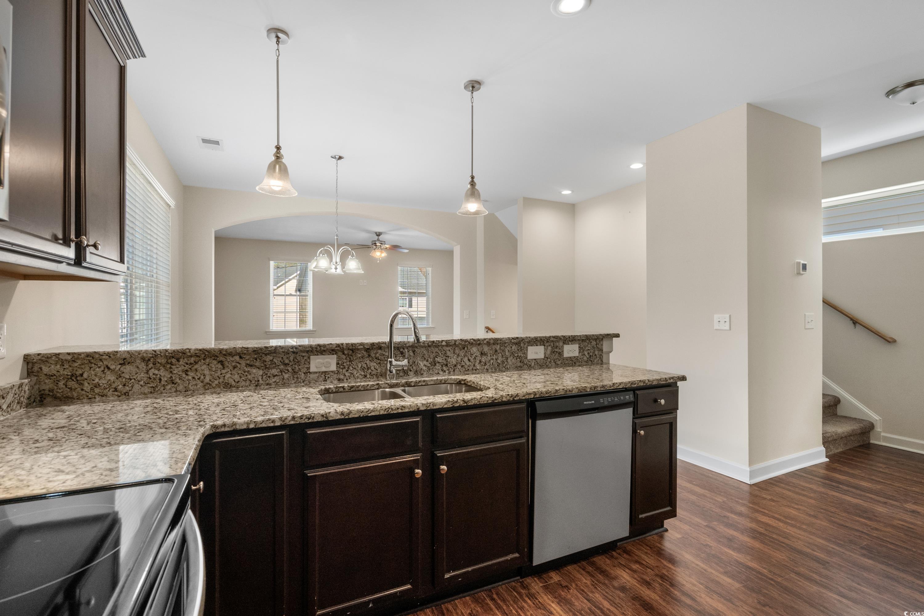 Nestled in the desirable Villas at The Gates community, this stunning three-bedroom, 2.5-bathroom home offers a perfect blend of style, functionality, and location. Situated in one of Myrtle Beach's most sought-after neighborhoods, this property provides quick access to the beach, shopping, dining, and is located in the award-winning Saint James School District, making it an excellent choice for families. As you enter the home, the ground level welcomes you with a versatile bonus room/den, ideal for a home office, media room, playroom or additional living space. The main level boasts an inviting open floor plan, featuring a spacious living and dining area, a beautifully designed kitchen with granite countertops, stainless steel appliances, and dark wood cabinetry, as well as a convenient half-bath for guests. The top floor is dedicated to the private quarters, housing all three bedrooms, two full bathrooms, and a laundry room for ultimate convenience. The primary suite features a spacious layout and an ensuite bath with a walk-in shower and walk-in closet. The additional bedrooms are well-appointed with natural light and ample closet space. Outside, enjoy a low-maintenance yard with a private driveway and attached garage. The Villas at The Gates offers a welcoming atmosphere, with beautifully landscaped streets, sidewalks and a community pool (for an additional fee). Conveniently included in your HOA dues is your trash pick up, basic cable TV package, and basic landscaping (including irrigation). With an HVAC system that’s approximately three years old, this home ensures comfort and efficiency year-round. Whether you’re looking for a primary residence, a second home getaway or perhaps an investment opportunity, this property provides the ideal combination of modern living and coastal charm. Don’t miss your opportunity to own this beautiful home in The Gates—call the listing agent, or your Realtor, to schedule a showing today!