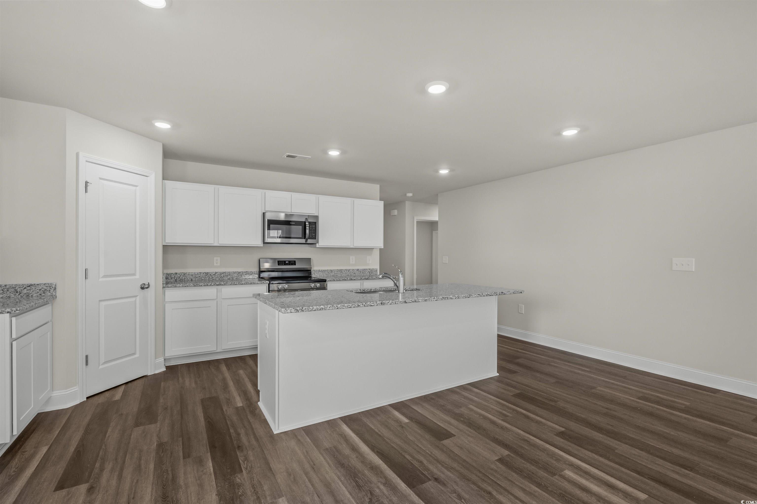 Welcome to Rivertown Landing – Where Comfort, Style & Value Meet! Pictures are for representation Only! Step into your dream home with the Embark Plan, a thoughtfully designed single-story layout perfect for easy living and effortless entertaining. This brand-new construction offers a spacious, open-concept floor plan featuring a modern kitchen with shaker-style cabinets, stainless steel appliances, a large granite island, and abundant counter space. Enjoy relaxing evenings or lively get-togethers in the open living and dining area, which flows seamlessly to a private back patio—perfect for grilling, entertaining, or simply soaking in the South Carolina sunshine. The oversized Owner’s Suite is a true retreat, easily fitting a king bed with room to spare for a sitting area. You'll love the generous walk-in closet and en-suite bath. Two additional bedrooms also offer walk-in closets, ideal for guests or a home office setup. Outside, enjoy a freshly sodded, fully irrigated yard—move-in ready with no extra hassle. Why Rivertown Landing? - Affordable new construction - Low HOA fees - Golf cart-friendly community - Great for biking, walking, and running - Family-friendly and peaceful setting Located in beautiful Conway, SC, Rivertown Landing puts you minutes from the charm of historic downtown—home to unique shops, local dining, and the scenic Riverwalk along the Waccamaw River. Whether you're a first-time buyer, downsizing, or looking for low-maintenance living, this community is your opportunity to own new—without breaking the bank. - Tour Rivertown Landing Today—Your New Home Awaits!