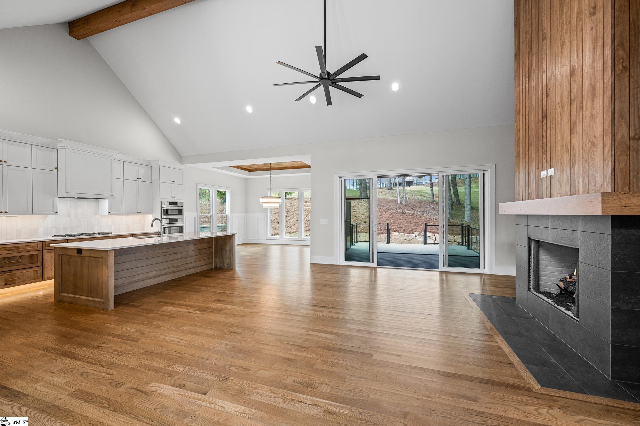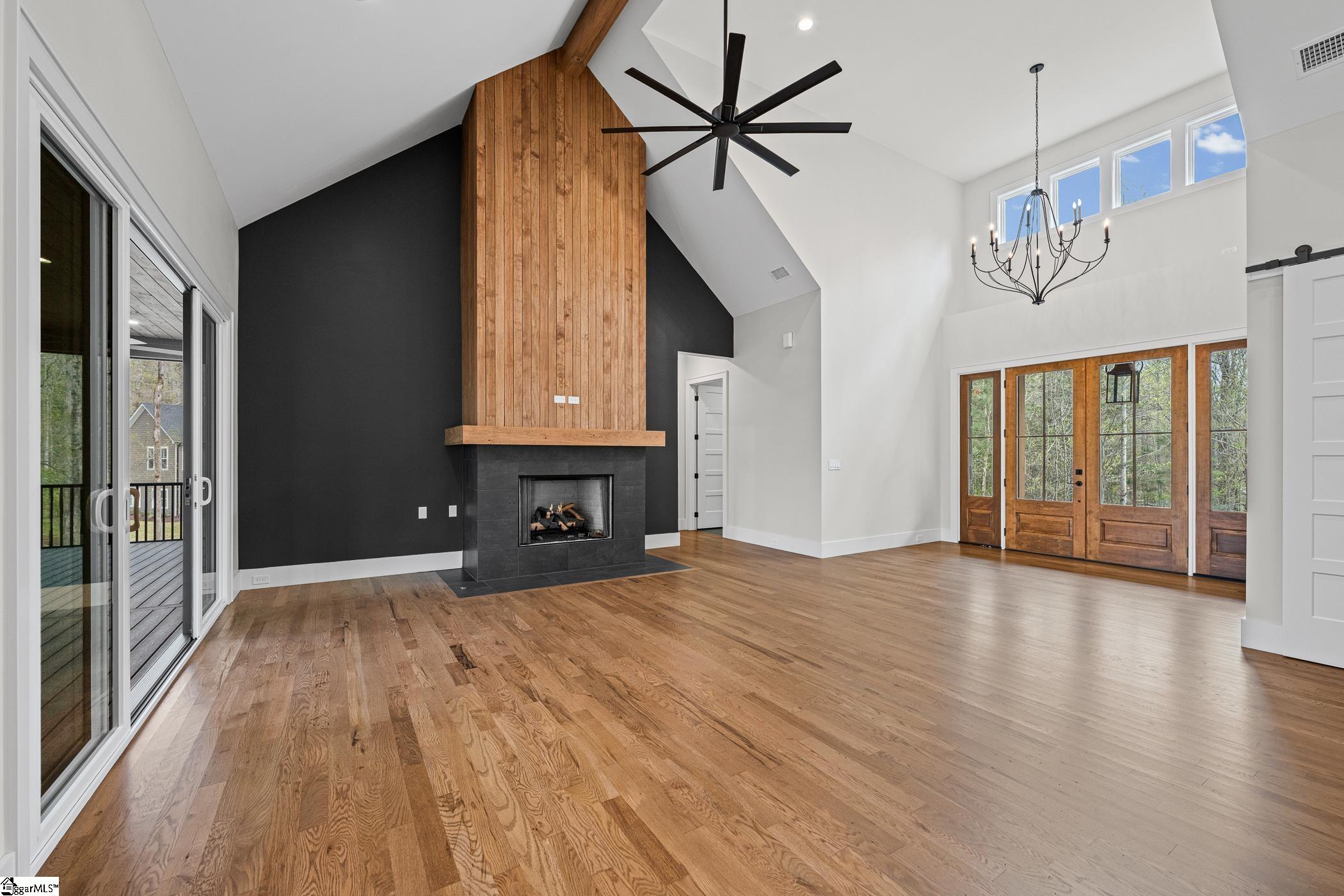 A tailored living experience defined by quiet luxury! Set gracefully along the lush fairways of Cherokee Valley Golf Club, 16 Pinerock Dr is an exceptional single-level residence expertly crafted with timeless materials and modern design! Backing directly to the tranquil 4th green, the home is enveloped by mature landscaping that lends both privacy and stateliness, while the covered front entry offers a warm welcome. Inside, an airy, open interior unfolds beneath a soaring cathedral ceiling, where rich hardwood floors run uninterrupted and contemporary lighting adds a sophisticated glow. At the heart of the living space, a striking masonry fireplace anchors the Family Room with understated grandeur. The Kitchen is as functional as it is beautiful! A center island invites gathering, while solid quartz countertops, a vertical tile backsplash, and premium stainless appliances create a polished aesthetic. The custom walk-in pantry, concealed behind a sliding barn door, is the pièce de résistance for the family chef. Just beyond, the Dining area elevates everyday meals with a wood-accented trey ceiling and tall wainscoting, showcasing architectural depth and character. Thoughtfully designed with a split floorplan, the Owner’s Suite is a private retreat, distinguished by a deep trey ceiling and a spa-inspired Bath. Here, an extended dual vanity, soaking tub, and glass-enclosed tile shower create a serene sanctuary, complemented by an expansive Carolina closet. Across the home, two additional Bedrooms share a Jack-and-Jill Bath, featuring a dual vanity and a distinctive herringbone tile shower. Everyday living is enhanced by a well-equipped Laundry, a stylish Half Bath, and a well-appointed Staging Area, all adorned with built-ins and tasteful accents of color. Outdoor living is equally compelling, with a generous Screened Porch and adjoining open Deck offering panoramic views of the course and creating an ideal place for quiet mornings or dining al fresco. This exceptional craftsmanship is further protected by a Builder’s 2-10 Warranty and a 1-year warranty on workmanship. An elevated lifestyle is possible with a club membership which unlocks prime amenities including championship golf, a resort-style pool, and fine cuisine. The location offers both tranquility and convenience, with proximity to North Greenville University and the charming boutiques and cafes of Travelers Rest, along with abundant opportunities for outdoor recreation. Here is the opportunity you have been longing for… to settle into your forever home!