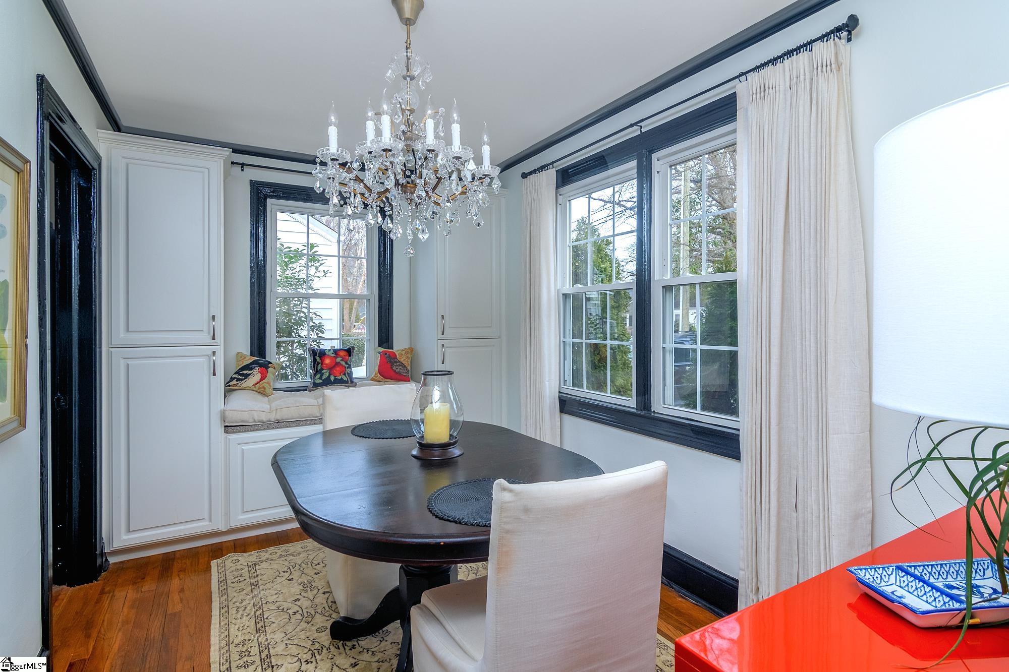 Nestled in the highly desirable North Main area of Greenville, this cozy 4- bedroom 2-bath home is located 5 minutes from vibrant downtown Greenville and offers the perfect blend of charm, privacy and convenience. Located in a quiet cul de sac and walkable to award winning Summit Elementary School, you will appreciate this home’s convenience to beautiful tree-lined streets with sidewalks and bike paths. This home with newly sodded zoysia features a brick walkway that welcomes you to an inviting front porch. Upon entering this home, you will notice beautiful original hardwood floors throughout the entire first floor, a brick fireplace with mantle and crown molding. The dining room has custom built-in cabinetry with a cozy bench seat nestled in between. A gorgeous new Restoration Hardware chandelier has been recently hung and is the highlight of the dining room. Beautiful natural lighting flows through all the windows. The kitchen has quartz countertops and nearby is a smart, convenient coffee/wine bar with beautiful glass-front cabinetry to showcase collectibles or artsy barware. All of the kitchen appliances convey with the house including a new KitchenAid refrigerator. Entertaining in this house will be a treat. The main level also offers a full bath with a newly restored original cast iron tub/shower and 2 bedrooms. A mudroom offers a utility sink and storage with an entry door that offers easy access to the fully fenced back yard. As you walk upstairs, you will notice a beautiful new stair runner that leads you to an inviting open loft sitting area with lots of natural light. French doors lead to an upper- level deck, perfect for enjoying evenings outside. The entire second floor has newly added updated LVP flooring that flows throughout. Upstairs are 2 bedrooms including a large primary suite with French doors leading to the deck and a secondary bedroom with a walk-in closet. The spacious primary bathroom has a double vanity and a walk-in closet. There is a laundry closet in the upstairs hallway as well. The attic is floored providing additional storage. Other additional upgrades added by the seller include new Lighting throughout the home; new ceiling fans throughout; and freshly painted interior. All recently added window treatments convey with the home. With easy access to downtown Greenville, this is a must-see home with many local attractions nearby. The Swamp Rabbit Trail is accessible, and a new extension is planned for the North Main area. (Orange line extension) The Bon Secours Arena (The Well) has exciting new amenities planned, including an outdoor amphitheater that will seat 6,500 individuals. Downtown Greenville offers over 200 restaurants many of which are award-winning. Enjoy the true Greenville lifestyle today! You don’t want to miss this one!