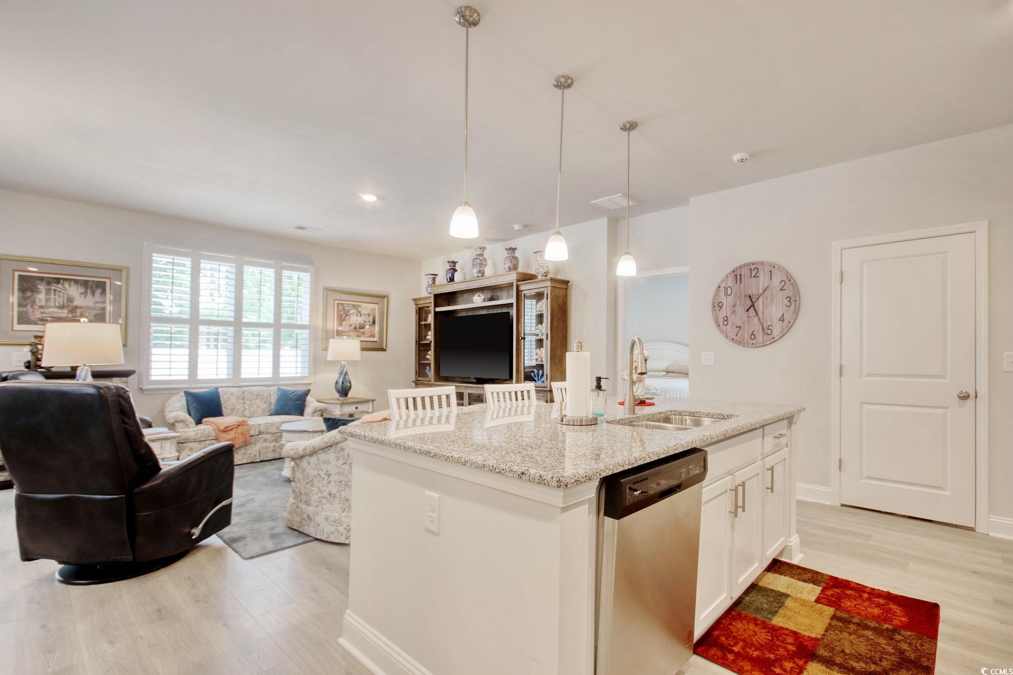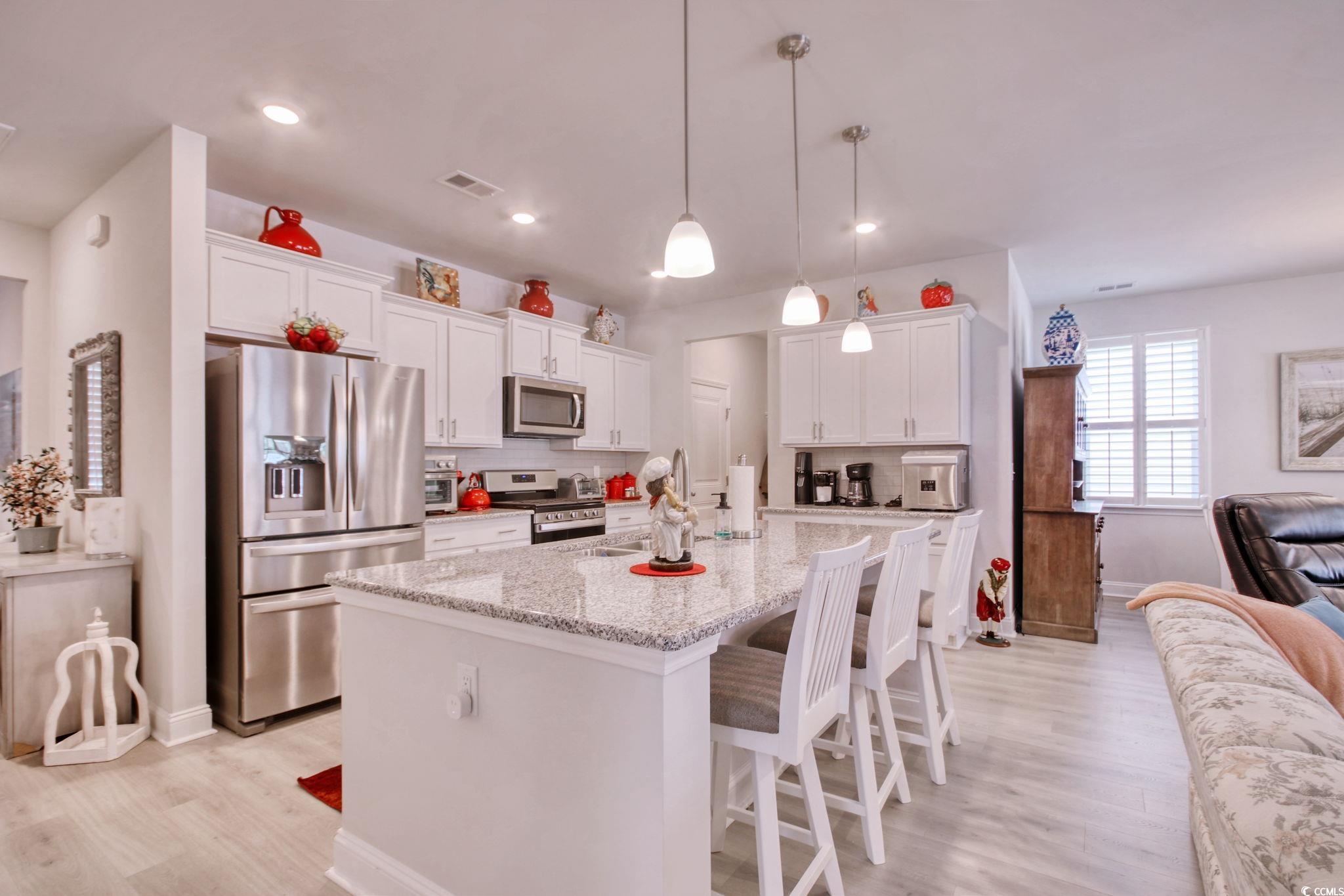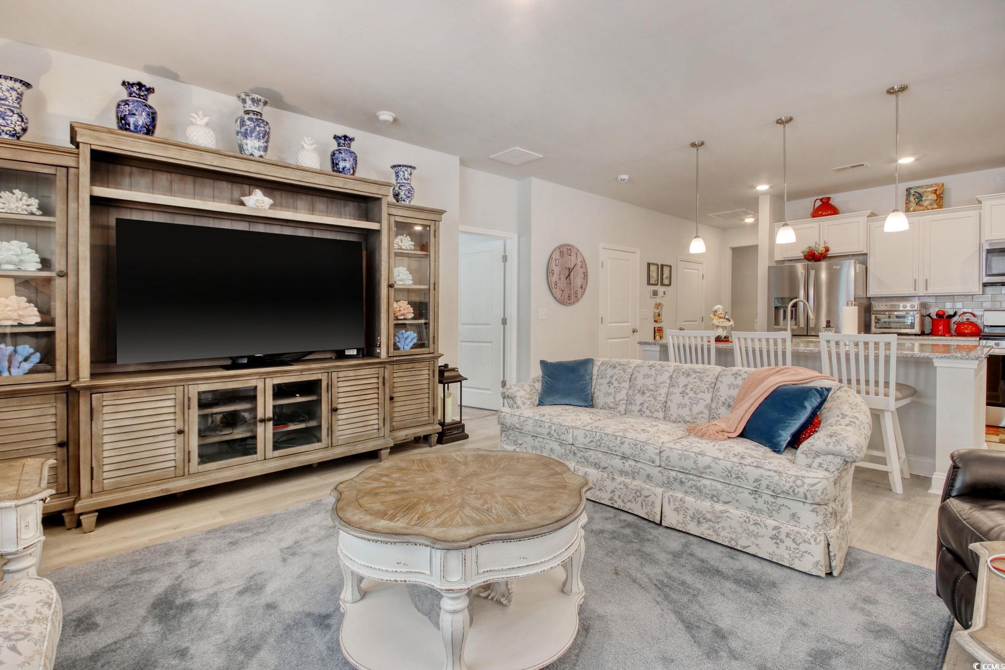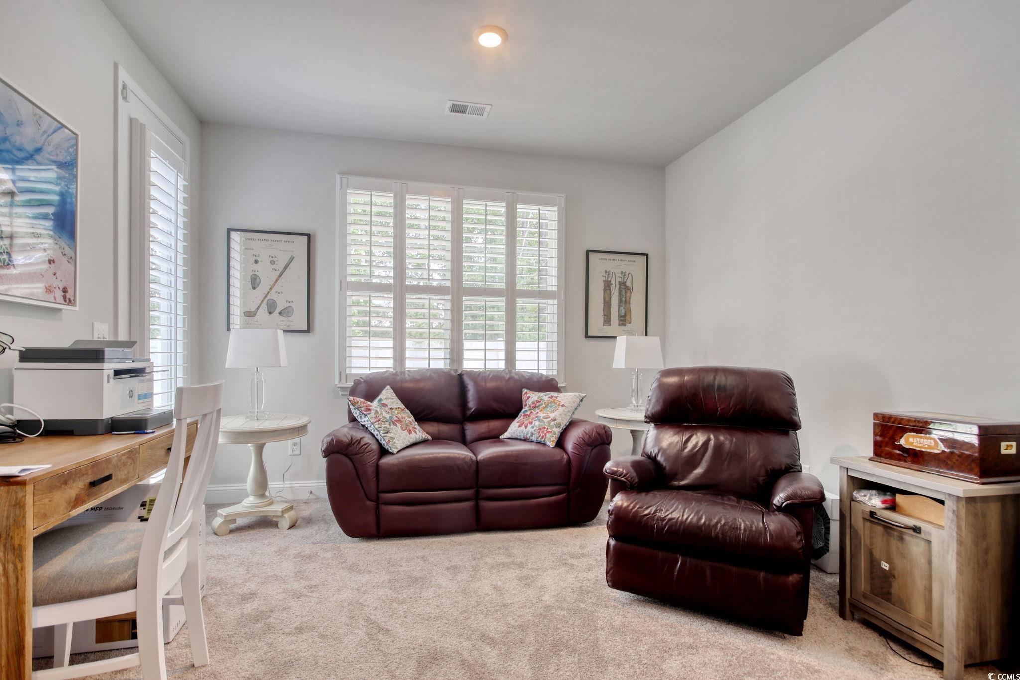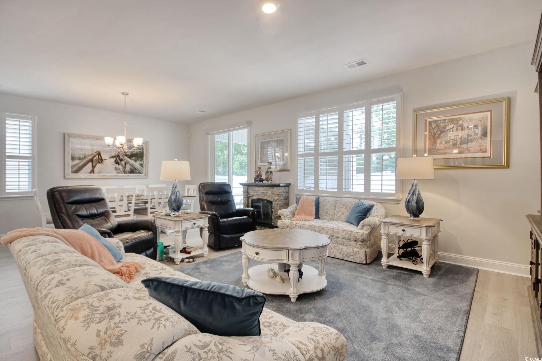 Welcome to this beautifully maintained 4-bedroom, 2.5-bath traditional-style home located in the peaceful and scenic community of Hidden Brooke in Little River, SC—just minutes from the beach and local fishing waterfronts! Complete with community pool, there is also a clubhouse with fitness center and fire pit for owner use. Built only four years ago, this spacious two-story residence offers a highly desirable layout with the primary suite on the main floor, complete with a cozy sitting room and patio access-your private retreat after a long day. Natural gas community, this home offers a gas tankless water heater, along with gas range for cooking ease.The heart of the home features an open-concept living and dining area, flowing seamlessly into a well-equipped kitchen and out to a large screened porch and expanded patio, perfect for outdoor dining or morning coffee in the Carolina breeze, with completely fenced yard, with irrigation system. New gutters and downspouts were added as well. Inside, enjoy features such as a drop zone, custom plantation shutters, luxury vinyl plank flooring, designer backsplash in kitchen, plus much more that needs to be seen to appreciate! Upstairs, you'll find three generous bedrooms and a full bath—ideal for guests, kids, or a home office setup, and a loft for additional living space. Set in a quiet neighborhood yet close to everything, including schools, you’ll enjoy quick access to fishing spots, waterfront dining, and the sandy shores of North Myrtle Beach, just a short drive away. Hidden Brooke allows owners to have motorcycles, golf carts, and long term rentals. Close access to Hwy 31 allows trips to the south strand for further family activities, and entertainment galore. Don't wait to see this beauty at the beach, just waiting for you! Measurements are estimated, and the responsibility of the buyer to confirm.