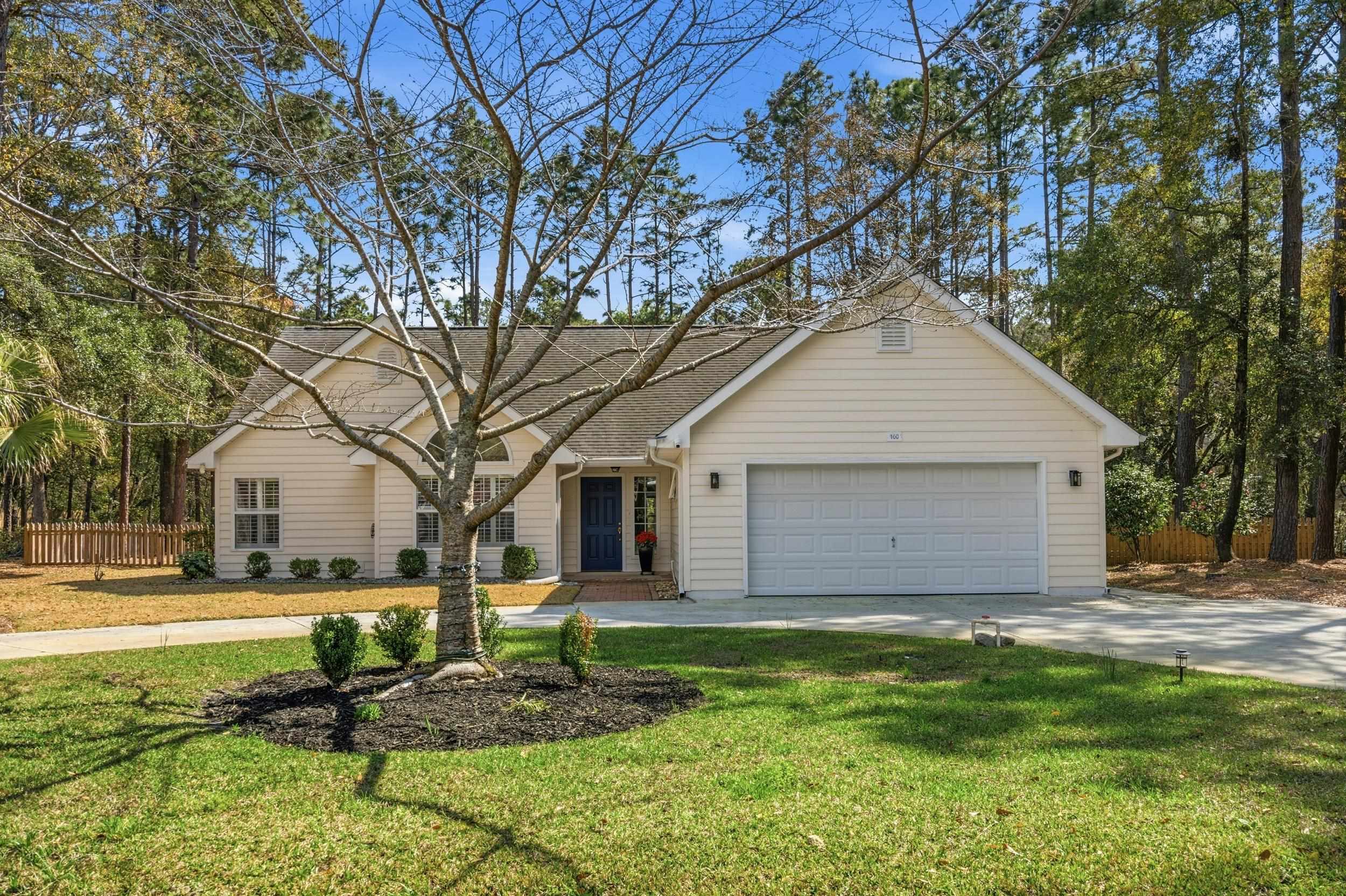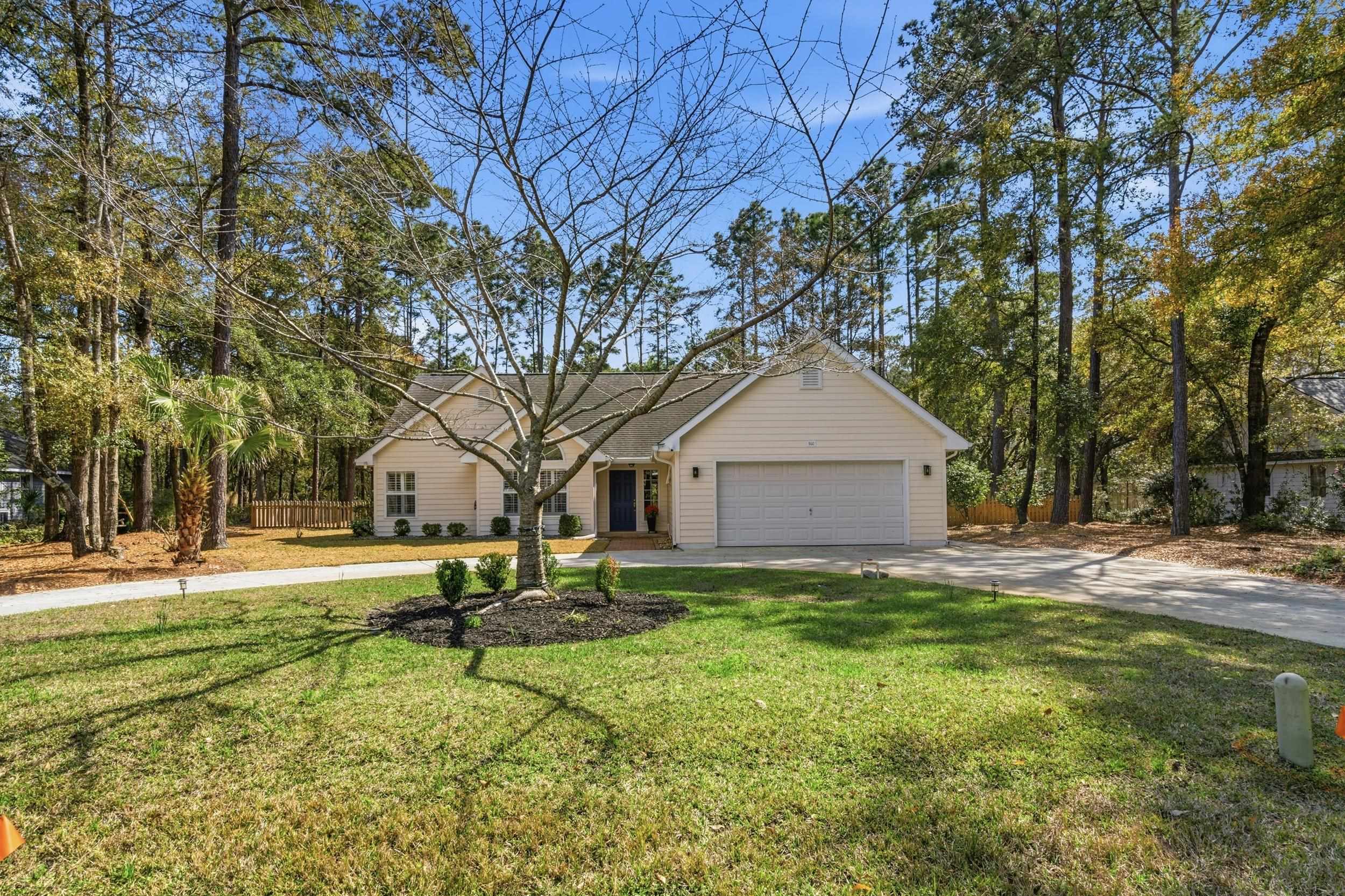 Looking for a slice of Pawleys Island tranquility? This beautifully renovated 3-bedroom, 2-bath home sits on a spacious half-acre lot and offers peaceful coastal living just minutes from the beach and the area’s award-winning restaurants. Inside, the home features an easy, open floor plan ideal for entertaining. The newly renovated kitchen is perfect for cooking and gathering, while the bright four-season Carolina room provides a relaxing space to unwind year-round. Step outside to a large, fenced backyard with endless possibilities—perfect for gardening, pets, outdoor entertaining, additional storage, or even adding a pool. A circular driveway framed by mature trees and thoughtful landscaping welcomes you home to your own quiet oasis after a day of golf, beach time, shopping, or dining with friends. Additional features include a two-car garage, vaulted ceilings, and custom shiplap and wainscoting that add charm and an elevated coastal feel throughout. This home has been exceptionally well maintained and thoughtfully cared for.