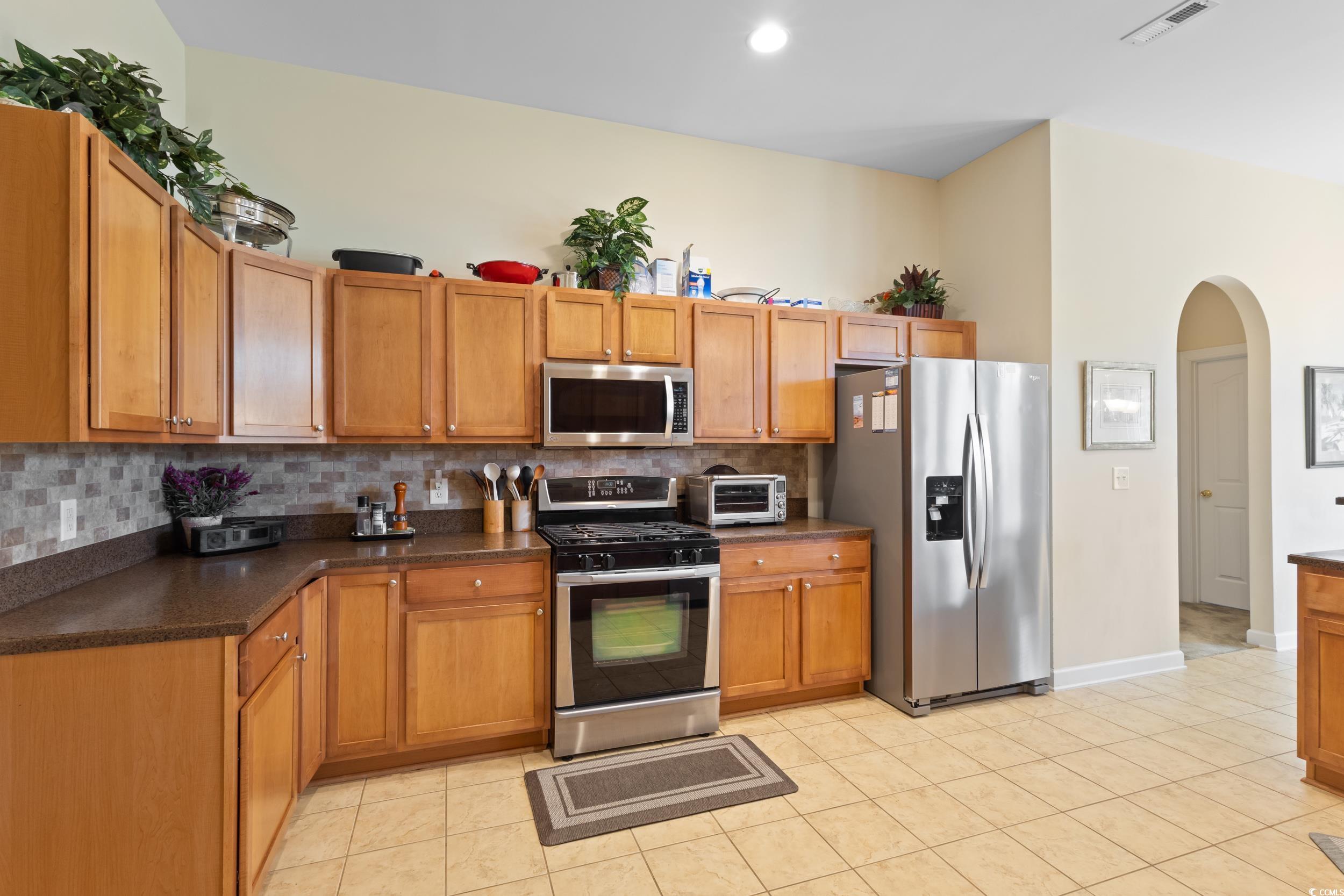 Welcome Home. Pride of ownership shows throughout this spacious 4 bedroom, 2.5 bath one owner Canterbury floor plan home. Inviting extended front porch with decorative concrete stamping welcomes you home. The open floor plan is wonderful for entertaining family and guests. Home offers split bedrooms, formal dining area and a nook area off the kitchen, Recessed lights in kitchen and living room. Stainless steel appliances, Full yard irrigation system, 4 foot extended garage, designer frosted bedroom window, YRT 2 security system, upgraded carpet, engineered hardwood floors and tile, 60 foot driveway, curb scape on all garden beds, decorated stones in all beds, west side of property has a retaining wall with an area aside of the home perfect for planting flowers, grass or a garden. New roof in 2025, new dishwasher in 2023. This is a gas community, home has a Gas fireplace, gas hot water heater, gas stove, dryer, gas heat/air, gas line for a BBQ grill. Pull down stairs with attic storage in garage, also slat wall with hooks included and sealed garage floor , When built for 4 foot extended garage, walk up steps to the attic are that has a 21 x 10 storage area. All house Generac system. Hunter Douglas window dressing throughout. 500 MPS internet available. Many other upgrades in this home. . Community pool and club house. Home is located 1/3 of mile off of Hwy 90 with minimal traffic noise and easy access to the beach, shopping, restaurants, Conway Marina, Waccamaw River. You are going to love it here.