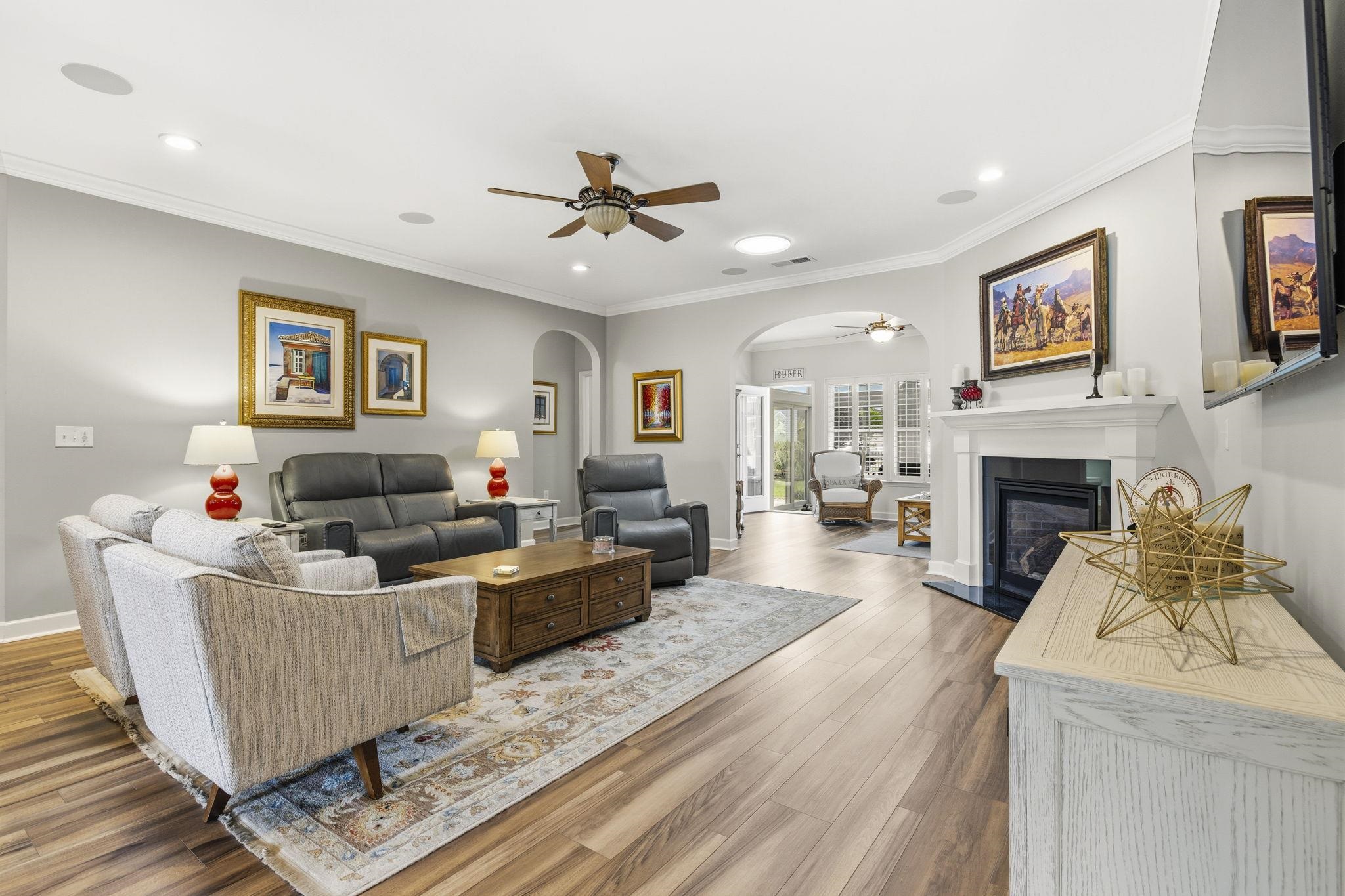 1601 Belle Ridge Court stands out as a home where the work has already been done. Located in the Ridge Pointe community, this property is truly better than new, with extensive upgrades throughout that elevate both the style and functionality of the home. Inside, the attention to detail is immediately noticeable with luxury plank flooring throughout, crown molding, plantation shutters, upgraded lighting, beadboard accents, and custom wood detailing that add warmth and character. The kitchen has been thoughtfully enhanced with backsplash, quartz upgrades, island modifications, added drawers and cabinetry, microwave drawer, KitchenAid lift, raised desk area, pantry improvements, and updated hardware, creating a space that is both beautiful and highly functional. The home continues to impress with upgrades designed for comfort and convenience, including a whole house generator, dual-zone HVAC, split system heat and air, whole-house surge protection, hurricane-rated garage door, hurricane shutters, attic fans, added insulation, and a rebuilt bath with additional countertop and sink updates. The all-season room with shades, high-impact glass on the back porch, fireplace upgrade with blower and remote, and Murphy bed office renovation make the home as practical as it is attractive. Outside, the enhancements continue with landscaping, fencing, gutters, awning, shed, patio and driveway overlay, garage overlay, irrigation system, trash enclosure, electrical upgrades, cameras, Ring doorbell and floodlight, all adding to the value and move-in ready appeal. From top to bottom, this is a property that offers a level of finish and thoughtful improvement rarely found in the resale market. For buyers looking for a home in Conway that offers style, substance, and extensive upgrades already in place, this one deserves a closer look.