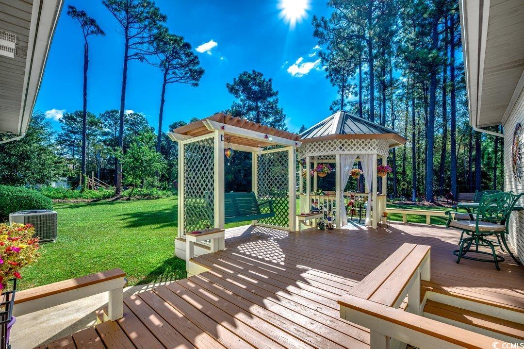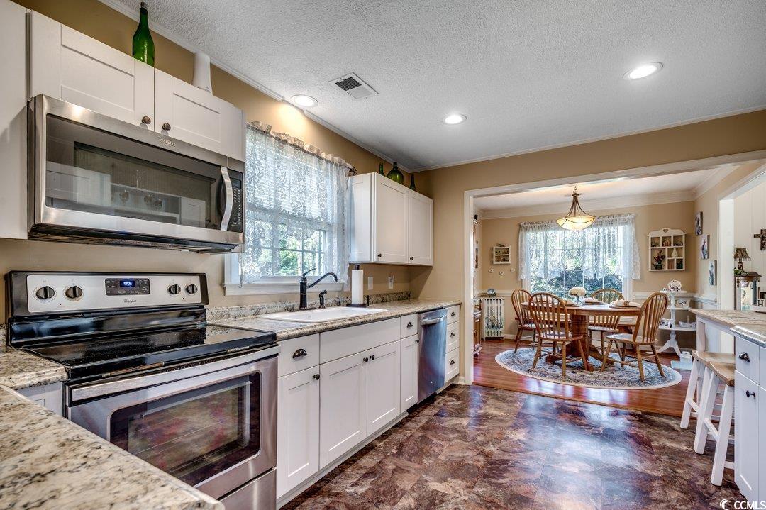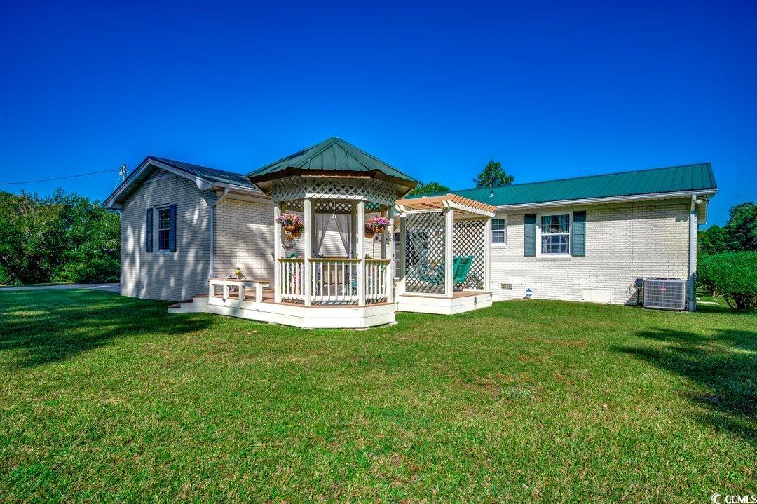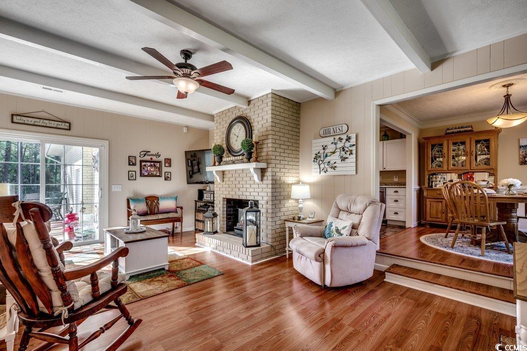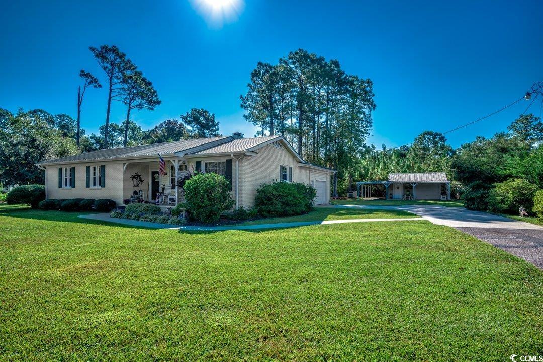 Modern charm with country living! Sitting on almost an acre with no HOA, this beautifully renovated 3-bedroom, 2-bath brick home was built in 1972 and fully updated by the current owners with care and attention to every detail. Enjoy the privacy and peaceful feel of the Loris countryside, all while being just minutes to downtown Loris and a short drive to the beaches of the Grand Strand. Inside, you’ll find a warm and inviting living area with exposed beams, a cozy fireplace, and natural light. The kitchen features white cabinetry, stainless appliances, and ample storage, while the dining room and bedrooms are highlighted by 6-inch crown molding. The owner’s suite includes a beautifully updated bath finished with marble porcelain tile. Step outside to a rocking-chair front porch, a custom back deck with gazebo, and a 24x24 detached garage/workshop that has a 10 ft garage door, shelving, storage, 200 amp wiring, and a wraparound covered open area that is perfect for projects, hobbies, or gatherings. The property also offers underground drainage for added peace of mind. With almost an acre of land, no HOA restrictions, and renovations thoughtfully completed inside and out, this move-in ready home truly blends modern charm with country living.