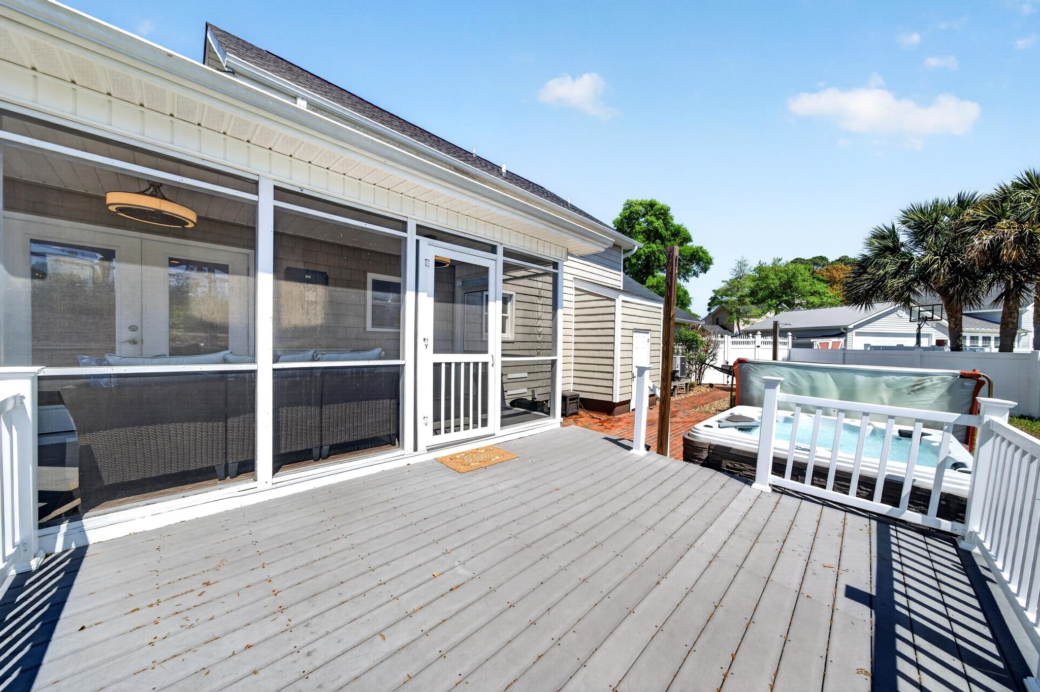 OPEN HOUSE SATURDAY April 25th 11am-1pm Coastal Living at Its Finest in Palmetto Shores! Welcome to this beautifully updated home located in the highly desirable, family-friendly community of Palmetto Shores. Perfectly positioned east of U.S. Route 17, you’re just a short golf cart ride away from the pristine shores of Cherry Grove Beach—offering the ultimate coastal lifestyle. Situated on an expansive 0.49-acre lot with no HOA, this property provides both freedom and space rarely found this close to the beach. Inside, the home has been thoughtfully upgraded to deliver a modern, open-concept design ideal for everyday living and entertaining. The heart of the home features a stylish kitchen with a large island and seating, seamlessly flowing into the dining area—perfect for hosting family and friends. The primary suite serves as a private retreat, complete with a spacious ensuite bathroom featuring dual vanities, a separate jetted tub and shower, and a generous walk-in closet. Upstairs, both guest bedrooms offer ample space and large closets, ensuring comfort for family or visitors. A spacious laundry room with abundant storage adds to the home’s functionality. Outdoor living truly shines here. Both front and back decks have been upgraded with durable Trex decking. The backyard is designed for entertaining and relaxation, featuring multiple gathering spaces, a large deck with French doors leading to a screened-in area, and a fully fenced yard. Unwind in your private hot tub while enjoying the peaceful surroundings. Additional highlights include a new roof, water heater (2022) and irrigation run off well water, offering peace of mind for years to come. This move-in-ready home perfectly blends location, upgrades, and lifestyle—making it an exceptional opportunity for a primary residence, vacation home, or investment property.