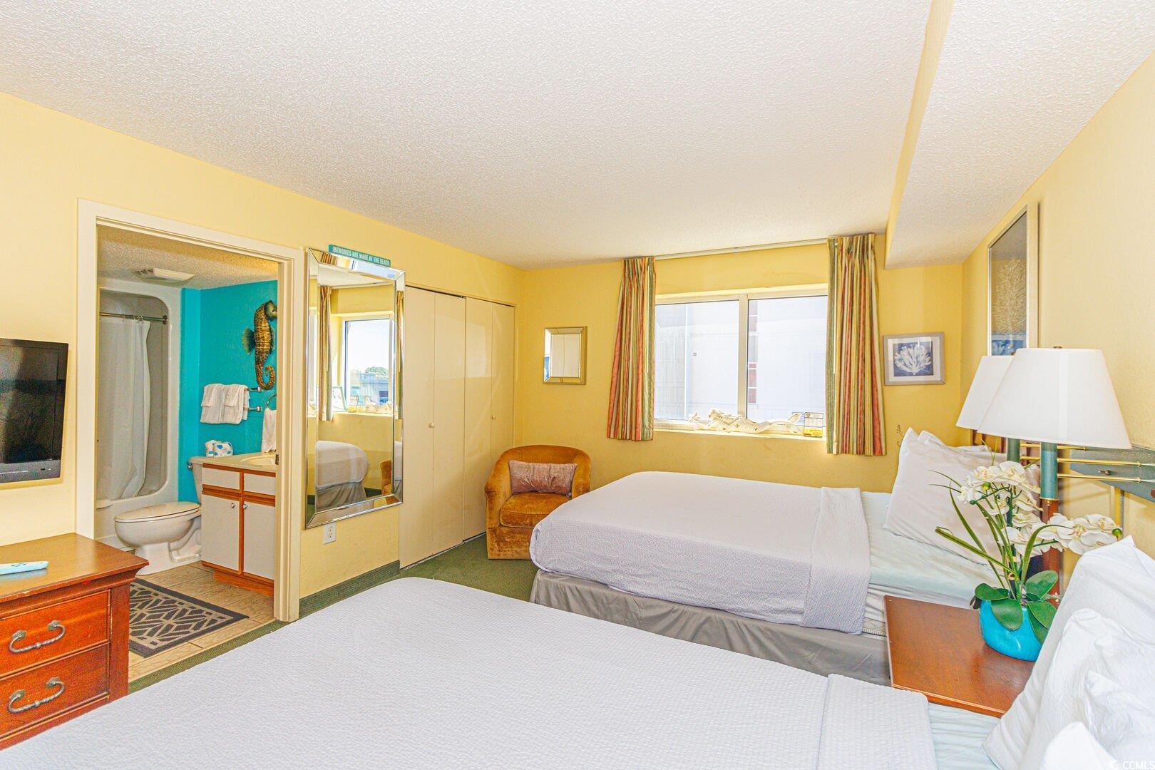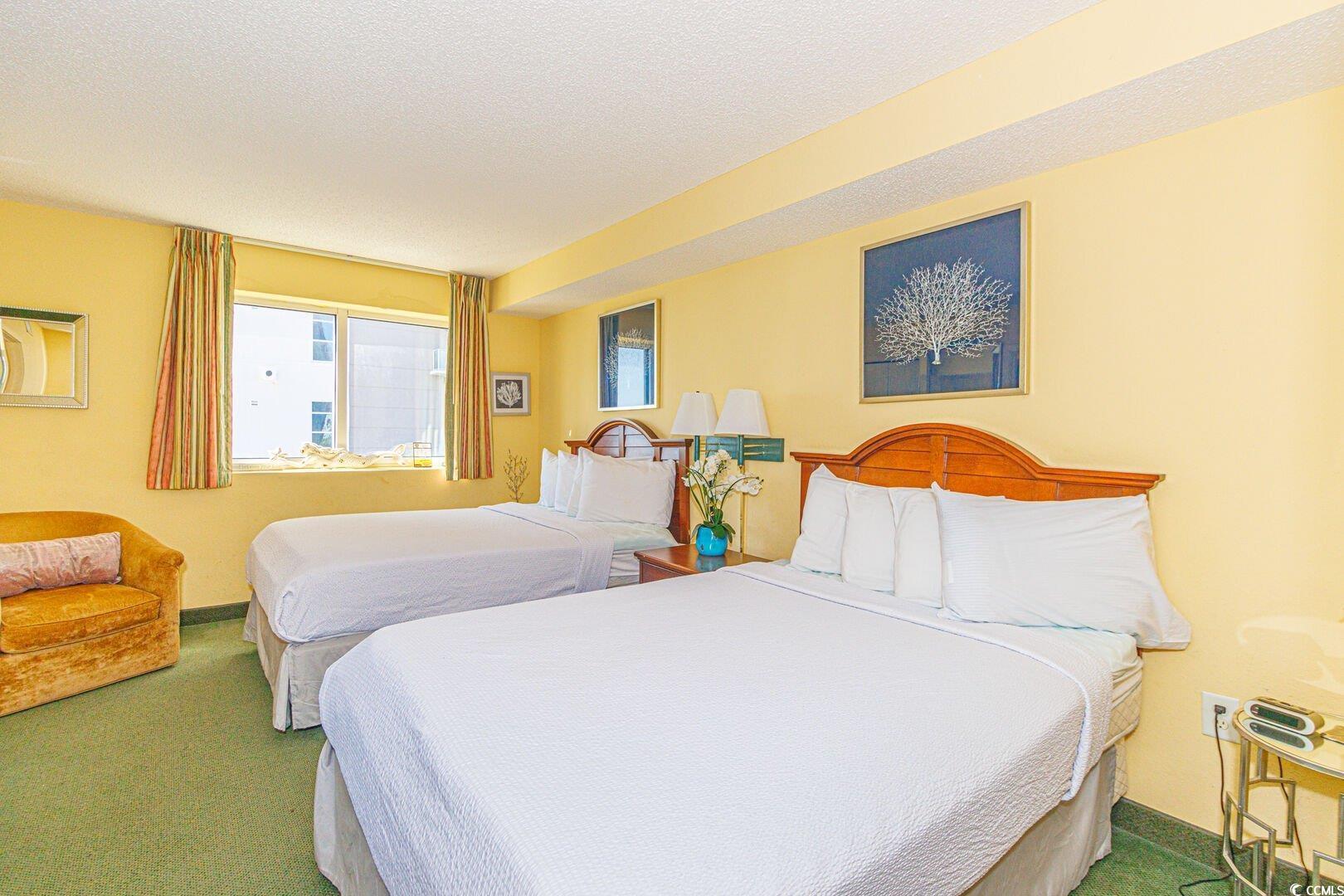 Welcome to this 4th-floor, direct oceanfront condo at the highly desirable Roxanne Towers Resort in Myrtle Beach, SC. This spacious 2-bedroom, 2-bathroom condo offers an exceptional layout with an open floor plan and breathtaking views of the Atlantic Ocean from both the living area and the master suite. The condo features a bright and oversized living space with access to a private balcony, perfect for enjoying sunrises and ocean breezes. The centrally located kitchen is equipped with full-size appliances, abundant cabinet space, and room for preparing meals with ease. The master suite boasts a king bed, private balcony access, and a full ensuite bath. The guest bedroom includes two full-size beds and its own ensuite bath, making it ideal for family or guests. Additional sleeping accommodations are available with a full-size sleeper sofa in the living room, allowing this unit to comfortably accommodate larger groups. Resort amenities include an oceanfront pool deck with indoor and outdoor pools, a lazy river, and hot tubs that can be enjoyed year-round. Owners and guests also benefit from free on-site parking, resort Wi-Fi, and cable. Whether you’re searching for a vacation retreat, an excellent income-producing rental property, or a combination of both, this condo at Roxanne Towers is an excellent opportunity to own a direct oceanfront residence in the heart of Myrtle Beach.