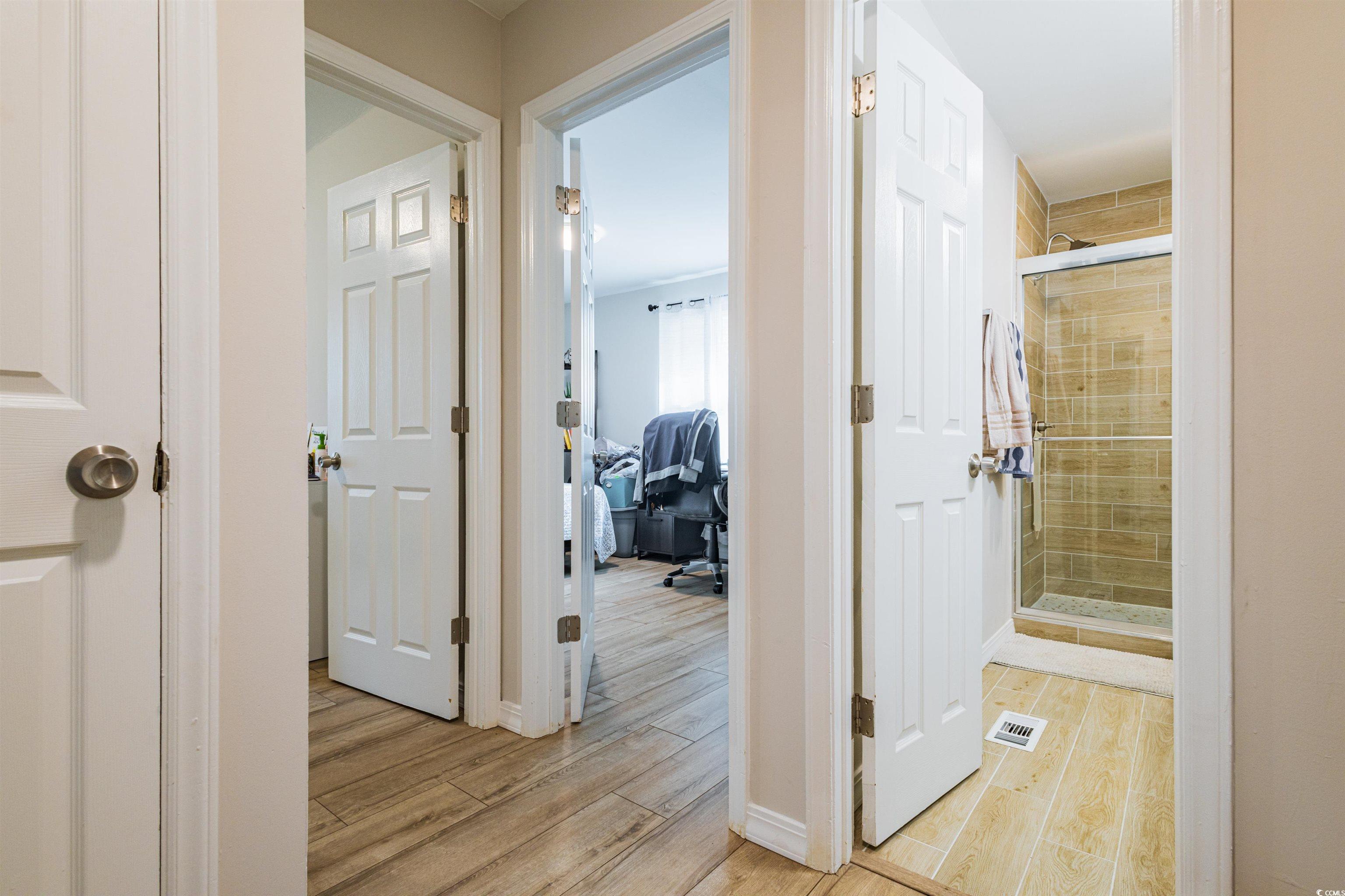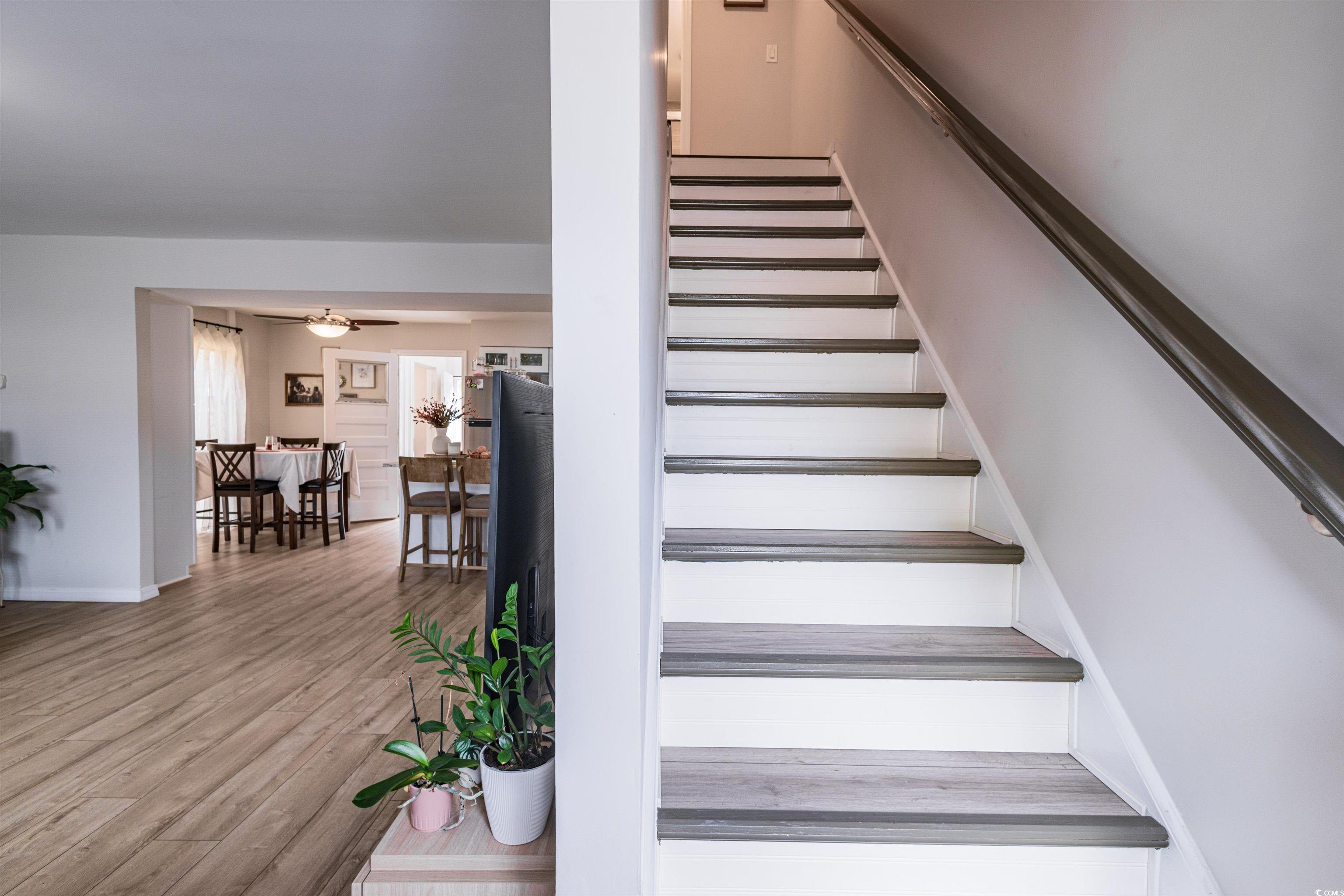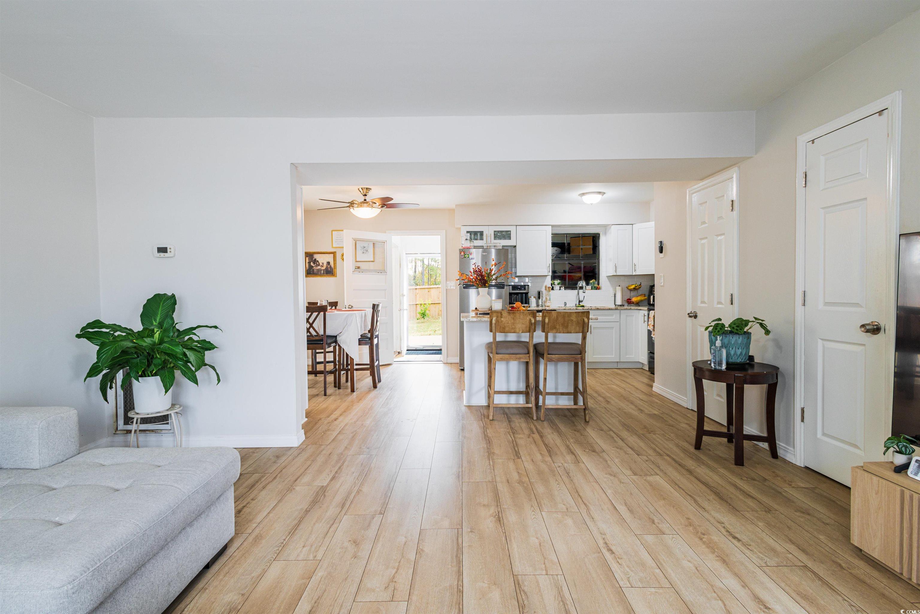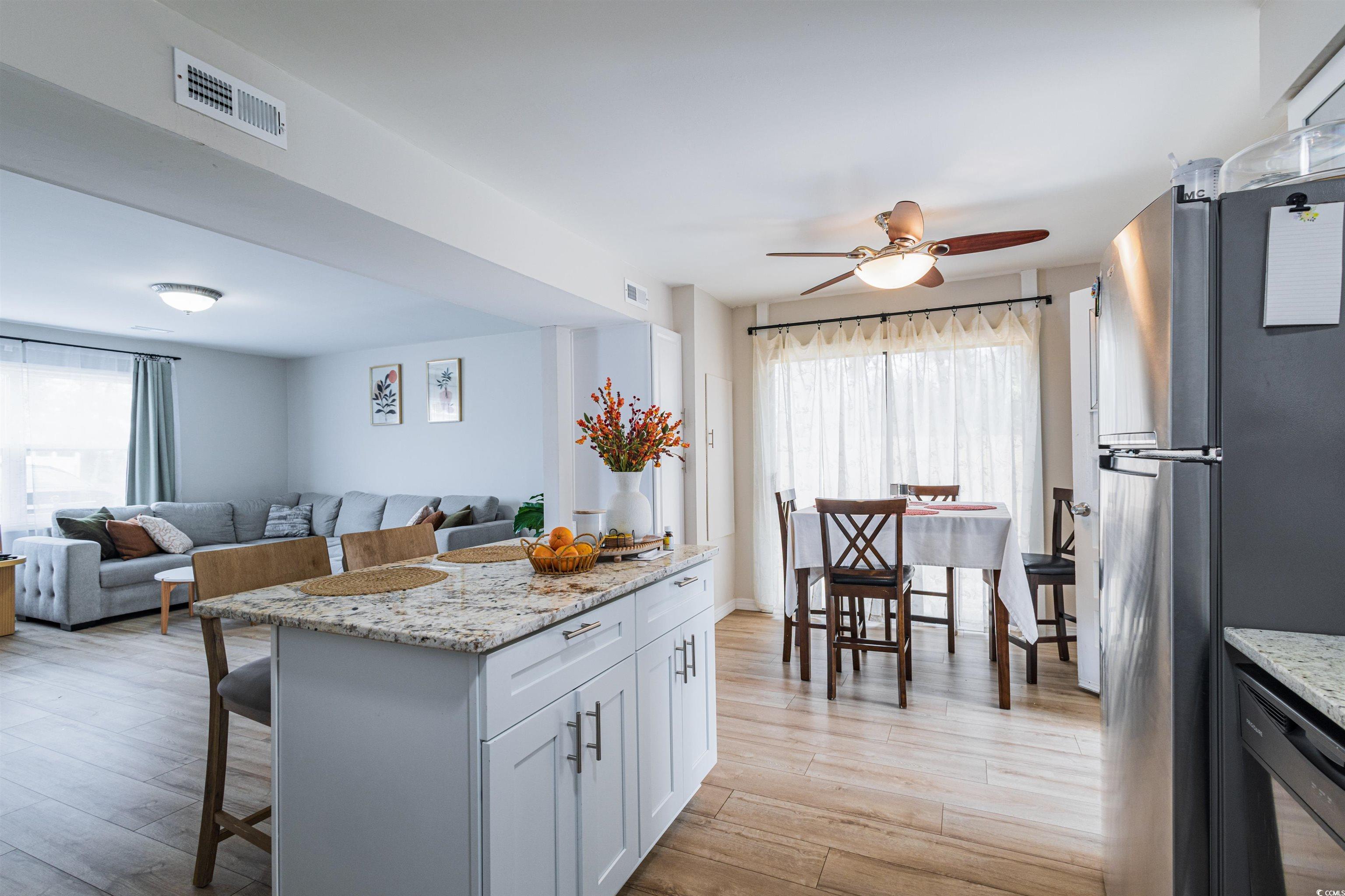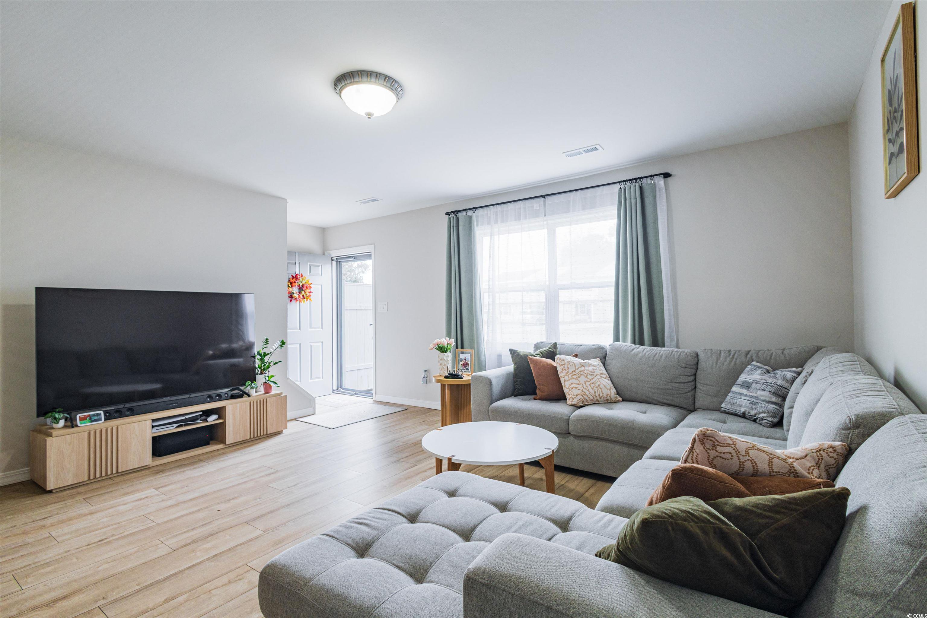 Beautifully Updated 3-bedroom 1.5 bath END UNIT Townhome! A stylishly updated home offering modern finishes, open concept living, and unbeatable convenience. Renovated in 2024, this townhome is truly move-in ready with upgrades throughout. Step inside to find fresh paint, updated lighting, and a bright open kitchen/living room layout perfect for relaxing or entertaining. The kitchen shines with granite countertops, stainless steel and dark colored appliances, new white cabinetry, and a brand-new island for added prep and seating space. Both bathrooms have been refreshed as well—featuring a new vanity in the guest half bath and a modern new vanity in the full bath, complete with a tile shower and sliding glass door for a spa-like feel. Laminate and tile floors, NO CARPET. The convenient in-unit laundry area includes a large storage space, providing plenty of room to stay organized. Outside, enjoy the benefits of the large end-unit lot, complemented by storage shed and a newly installed wood privacy fence—perfect for pets, grilling, gardening, or simply relaxing in your own outdoor oasis. Did we mention NO HOA? All of this located just minutes from Garden City Pier, dining, shopping, and the beach! This beautifully updated unit offers comfort, style, and coastal living at its best. Don’t miss it!