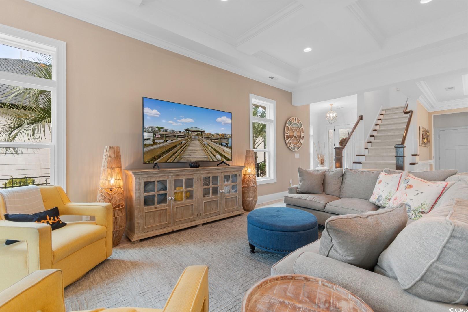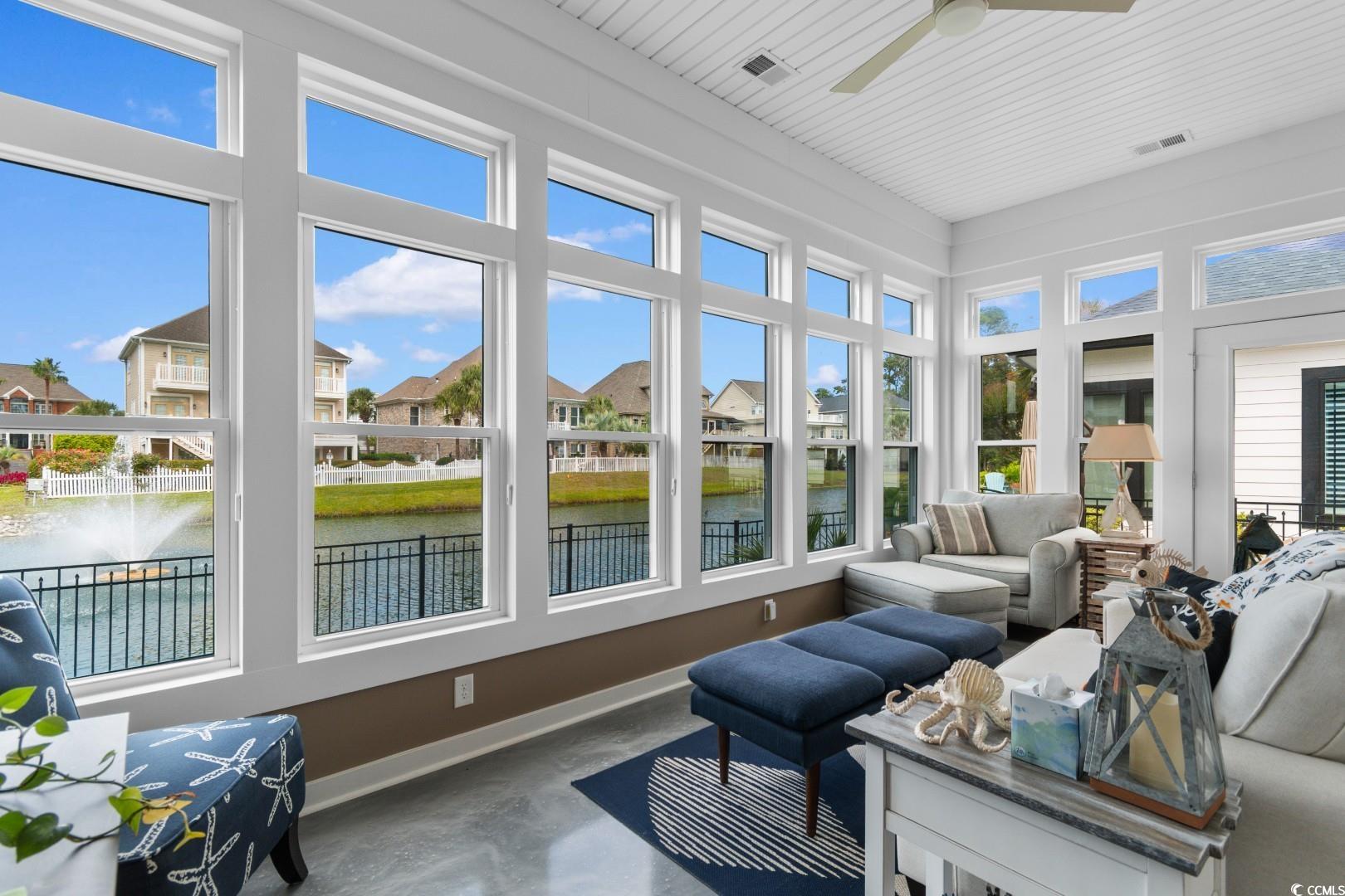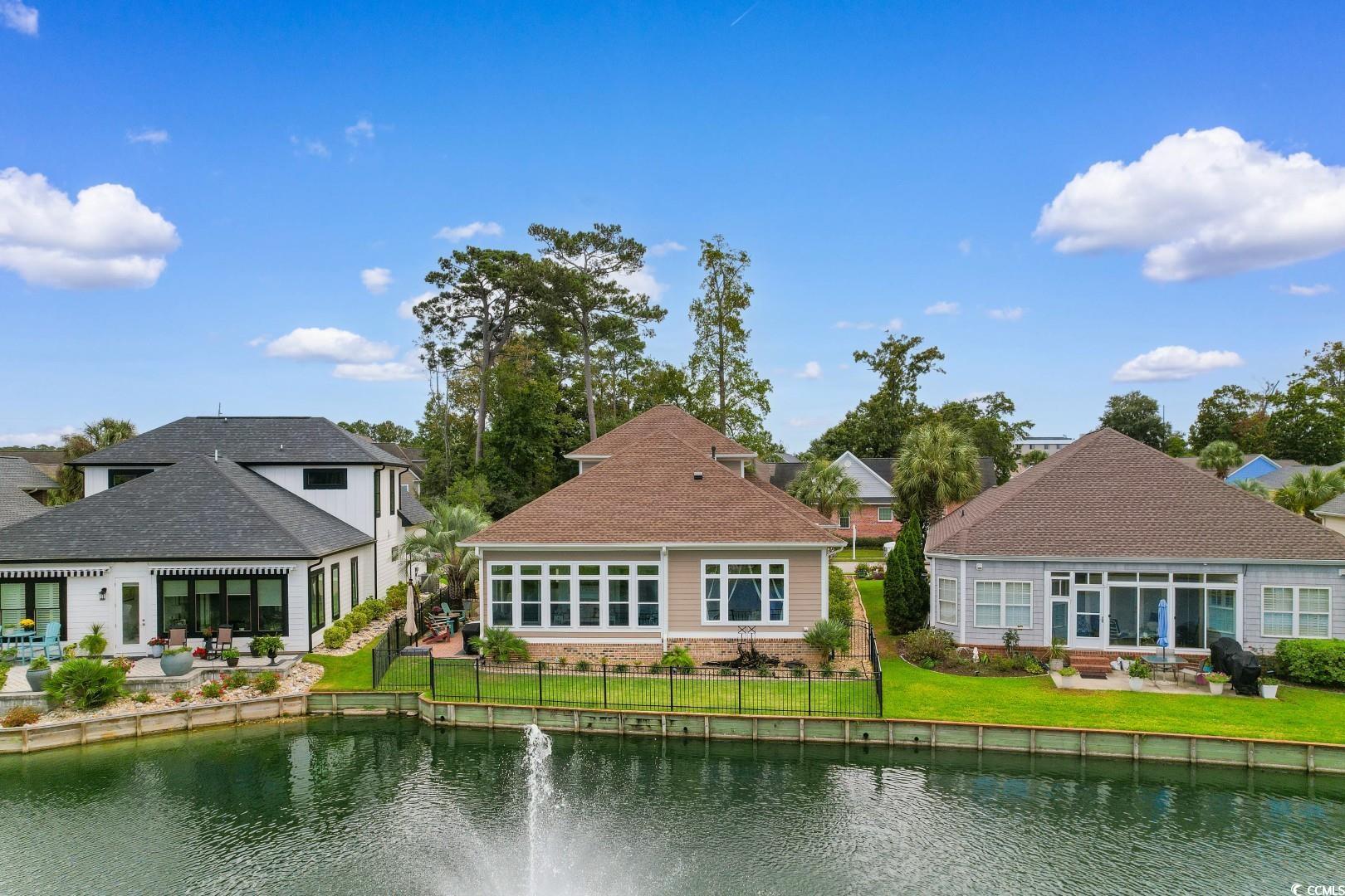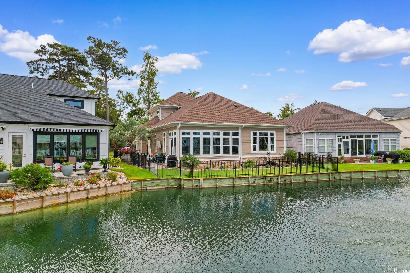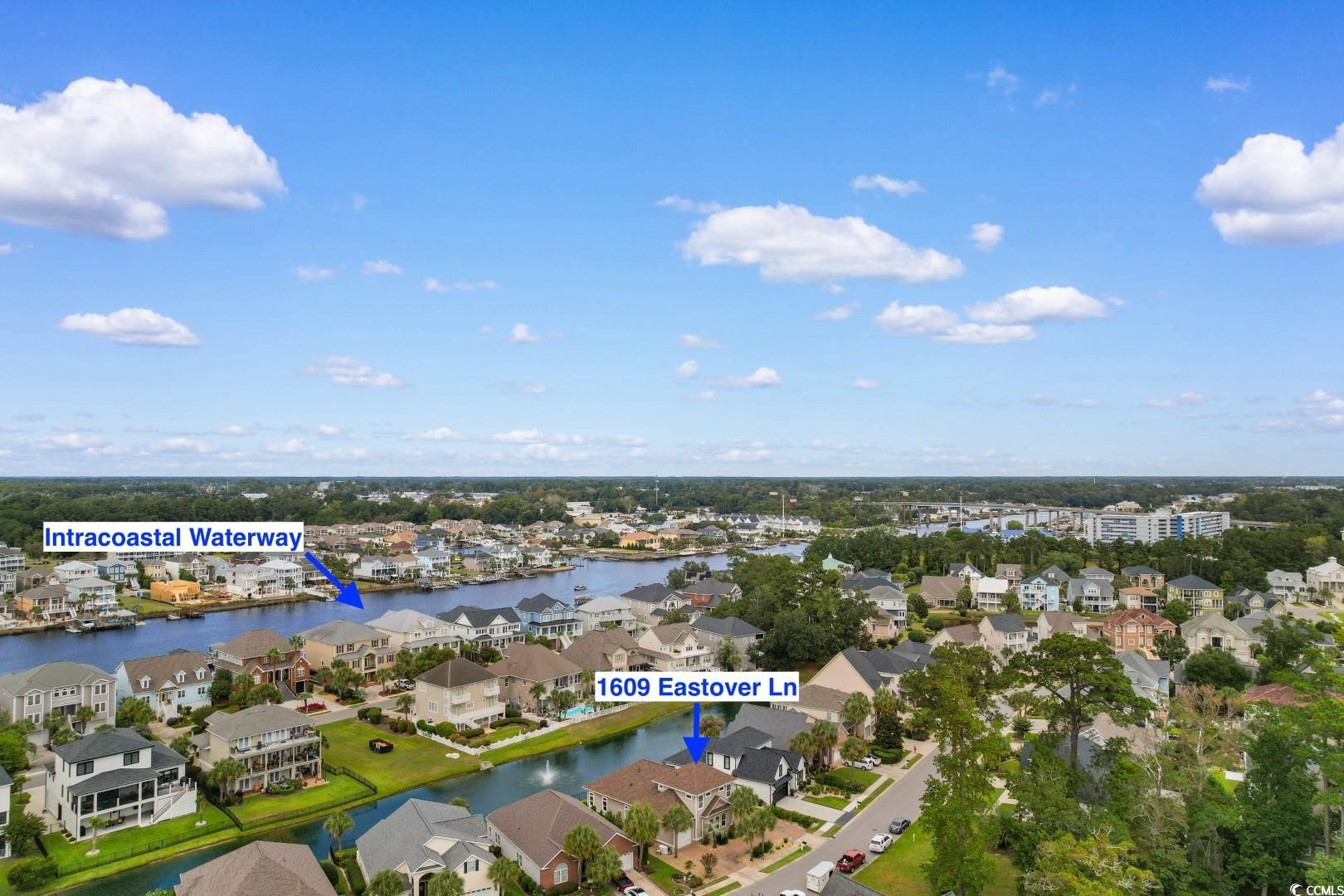 Experience the very definition of prestige at 1609 Eastover Ln, a custom three-bedroom show-stopping residence completed in 2015 within the exclusive Sunset Harbour community. This architectural marvel offers breathtaking, panoramic lake views from virtually every room. Upon entering the grand foyer, your eyes are drawn across the expansive, open layout and toward the water. Designed for grand entertaining, the estate seamlessly blends the Great Room, Formal Dining Area, and the incomparable Gourmet Chef's Kitchen. Architectural details, including soaring 11-foot coffered ceilings and 10-foot double-tray ceilings, deliver immediate volume and dramatic elegance. The kitchen is a true culinary masterpiece, appointed with a complete, integrated suite of THERMADOR professional-grade stainless-steel appliances, complemented by custom cabinetry and pristine white quartz countertops. Bespoke finishes like porcelain "wood plank" tile flooring, a natural gas fireplace, and designer lighting flow throughout, with double-sliding glass doors leading to the oversized sunporch, an idyllic extension of your entertaining space. The main-level Lakeside Master Suite is a private sanctuary defined by a 12-foot double-tray ceiling and captivating water vistas. Its opulent en-suite bath features double sinks with a make-up vanity and an exquisite, custom-tiled walk-in shower. The sprawling custom walk-in closet offers the ultimate convenience with direct, seamless access to the spacious laundry room. The second floor accommodates guests with two large guest bedrooms, a full bath, and a dedicated executive office suite, alongside massive attic storage capacity. This residence is built to the highest specifications, featuring robust 2x6 exterior walls, a 4-Zone HVAC system, Generac Generator and a Natural Gas Tankless Water Heater. The meticulously maintained grounds feature premium James Hardie Color Plus Siding, a paver driveway and patio, and a lawn irrigation system. Beyond the home itself, Sunset Harbour elevates coastal living with a private boat ramp to the Intracoastal Waterway, boat and RV storage, and a community pool with clubhouse. Residents also enjoy the ease of being just a short golf cart ride to the beach, shopping, dining, and all that North Myrtle Beach has to offer.