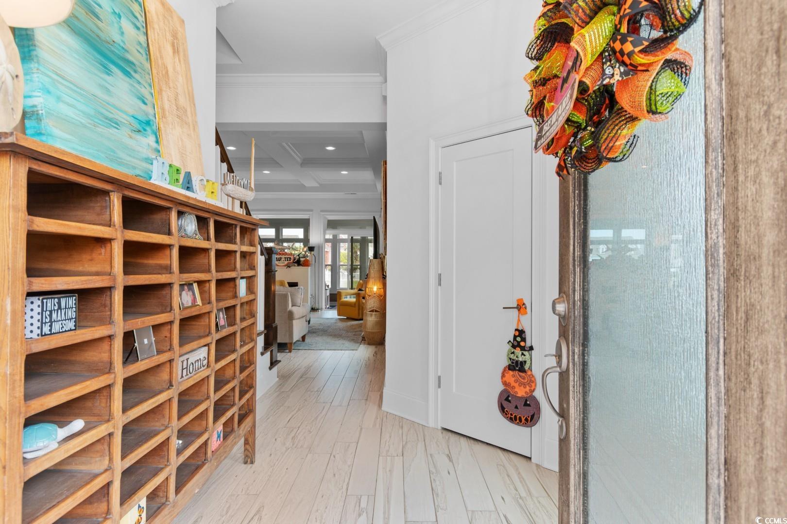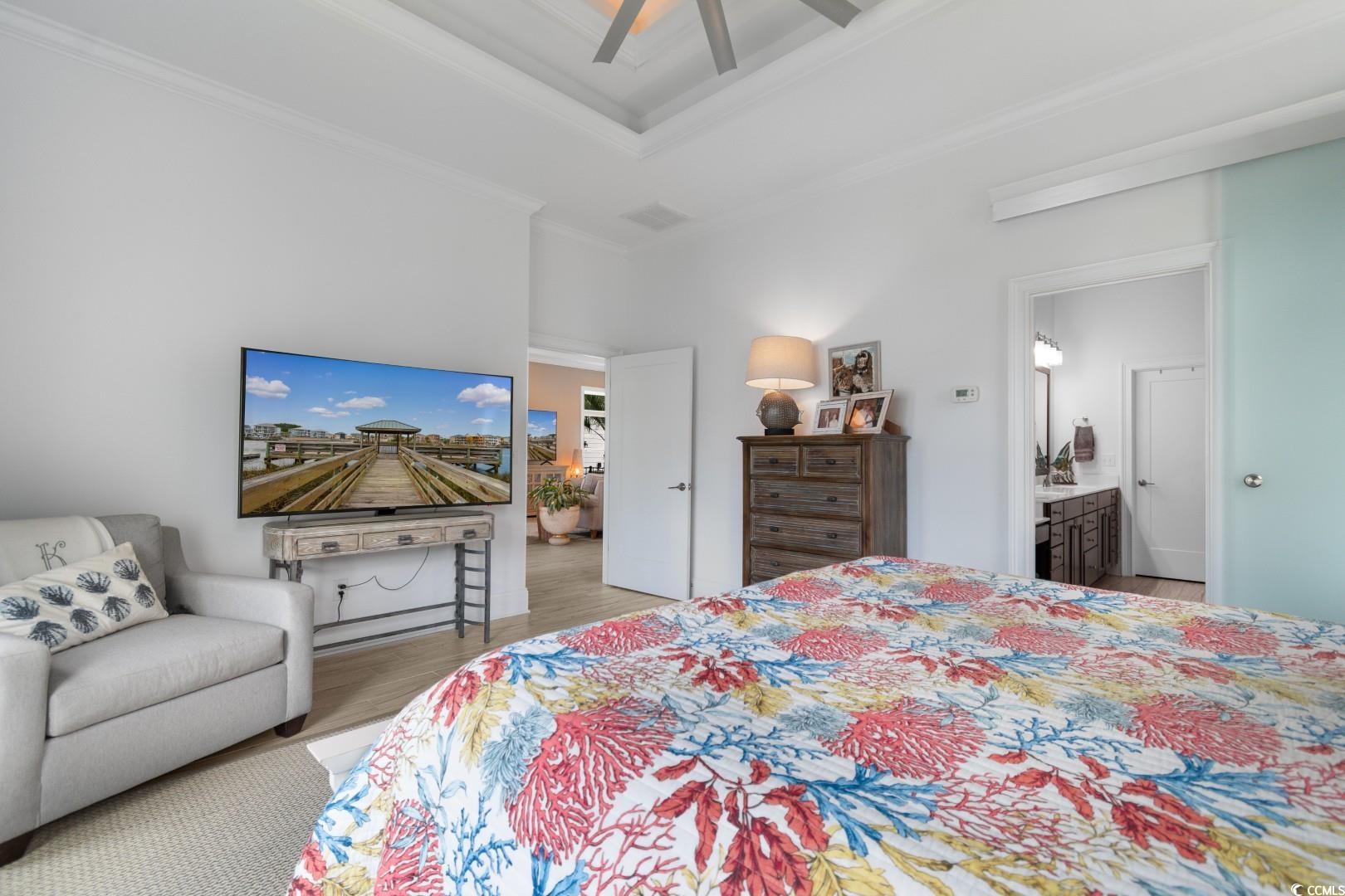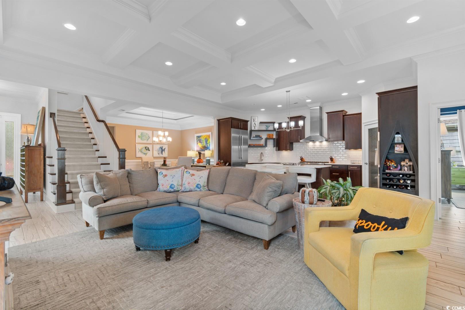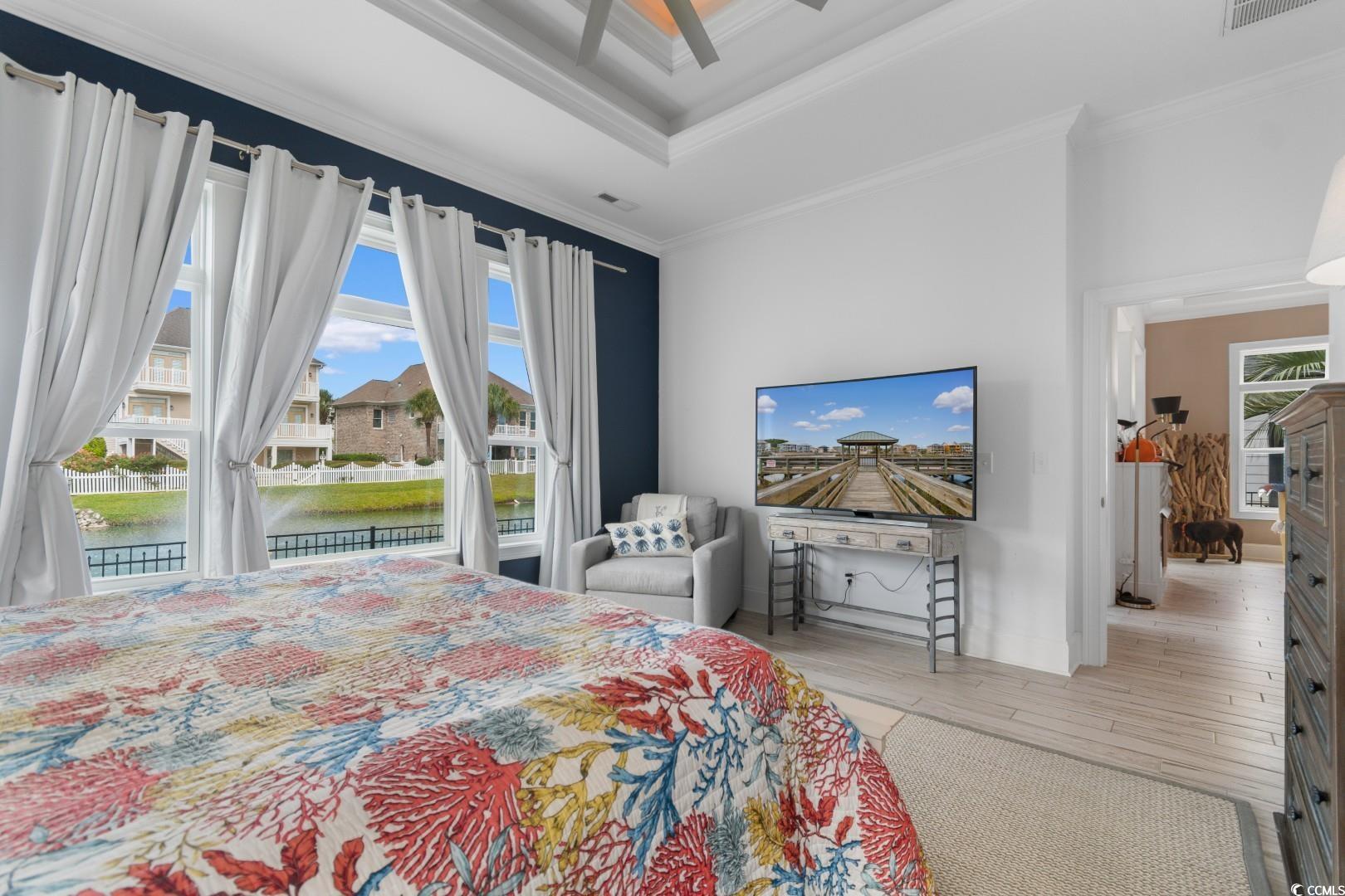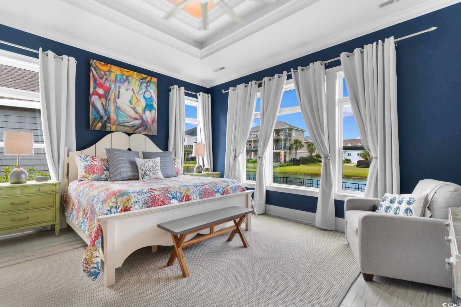 Experience the very definition of prestige at 1609 Eastover Ln, a custom three-bedroom show-stopping residence completed in 2015 within the exclusive Sunset Harbour community. This architectural marvel offers breathtaking, panoramic lake views from virtually every room. Upon entering the grand foyer, your eyes are drawn across the expansive, open layout and toward the water. Designed for grand entertaining, the estate seamlessly blends the Great Room, Formal Dining Area, and the incomparable Gourmet Chef's Kitchen. Architectural details, including soaring 11-foot coffered ceilings and 10-foot double-tray ceilings, deliver immediate volume and dramatic elegance. The kitchen is a true culinary masterpiece, appointed with a complete, integrated suite of THERMADOR professional-grade stainless-steel appliances, complemented by custom cabinetry and pristine white quartz countertops. Bespoke finishes like porcelain "wood plank" tile flooring, a natural gas fireplace, and designer lighting flow throughout, with double-sliding glass doors leading to the oversized sunporch, an idyllic extension of your entertaining space. The main-level Lakeside Master Suite is a private sanctuary defined by a 12-foot double-tray ceiling and captivating water vistas. Its opulent en-suite bath features double sinks with a make-up vanity and an exquisite, custom-tiled walk-in shower. The sprawling custom walk-in closet offers the ultimate convenience with direct, seamless access to the spacious laundry room. The second floor accommodates guests with two large guest bedrooms, a full bath, and a dedicated executive office suite, alongside massive attic storage capacity. This residence is built to the highest specifications, featuring robust 2x6 exterior walls, a 4-Zone HVAC system, Generac Generator and a Natural Gas Tankless Water Heater. The meticulously maintained grounds feature premium James Hardie Color Plus Siding, a paver driveway and patio, and a lawn irrigation system. Beyond the home itself, Sunset Harbour elevates coastal living with a private boat ramp to the Intracoastal Waterway, boat and RV storage, and a community pool with clubhouse. Residents also enjoy the ease of being just a short golf cart ride to the beach, shopping, dining, and all that North Myrtle Beach has to offer.