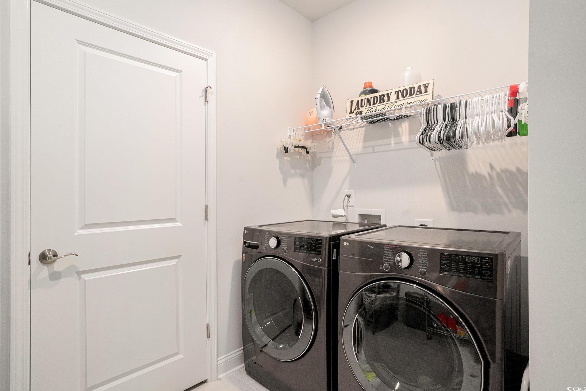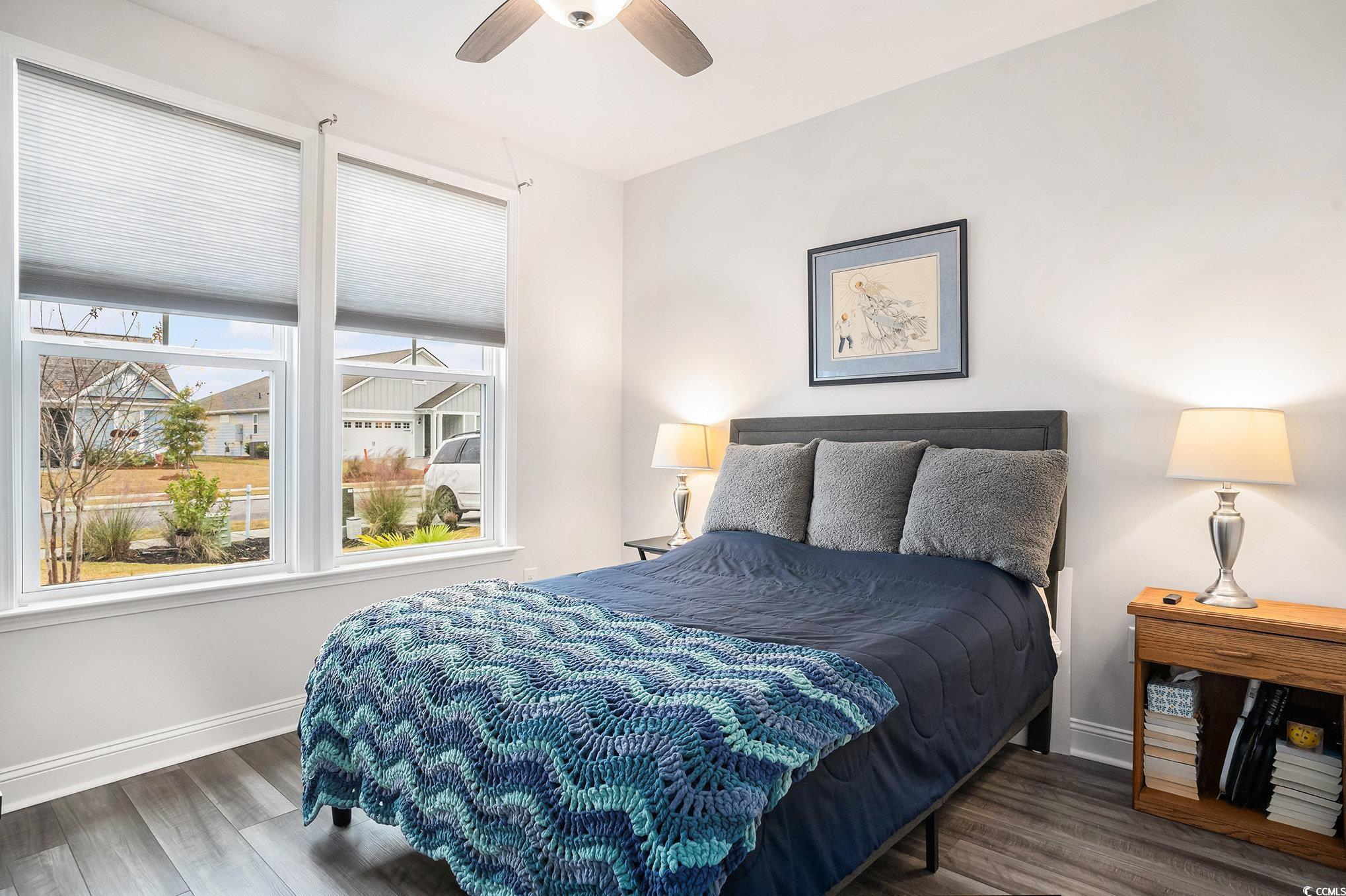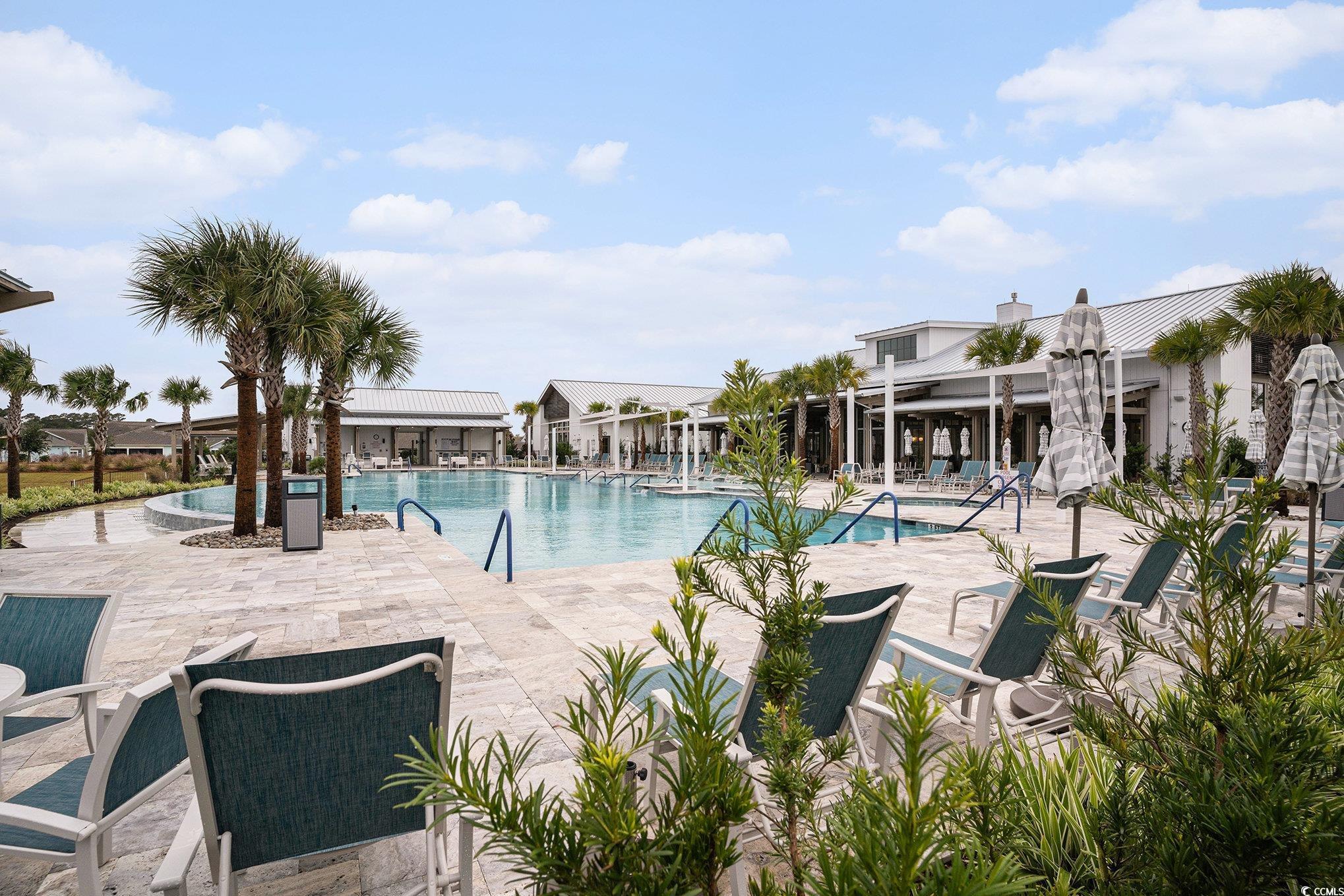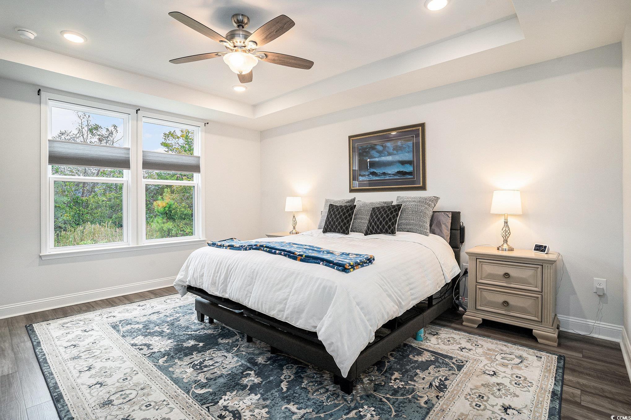 This beautifully maintained home is situated on a private, wooded homesite and offers a spacious open floorplan designed for comfortable coastal living. The extended gathering room flows seamlessly into a gourmet kitchen featuring built-in stainless Whirlpool appliances, a stainless vent hood over the gas cooktop, white and gray cabinetry, quartz countertops, and a desert gray tile backsplash with under-cabinet lighting. The home includes luxury vinyl plank flooring throughout, a large screened lanai with a gas stub-out for a future grill or outdoor kitchen, and a 2-car garage with additional tandem storage or golf cart space. Elegant tray ceilings accent the gathering room, flex/bonus room, and owner’s suite. The owner’s bathroom showcases a fully tiled spa shower with Carrara-style tile and a spacious walk-in closet. Additional upgrades include a custom trim package, brushed nickel finishes, gutters, and an irrigation system. Located within a vibrant 55+ community in central North Myrtle Beach—just a mile from the ocean—residents enjoy golf cart-friendly streets, pet-friendly policies, and fenced yards. HOA dues include yard maintenance, high-speed internet, cable, and access to planned resort-style amenities such as a clubhouse, indoor lap pool, outdoor saltwater pool and hot tub, pickleball and bocce courts, putting green, and a fitness center. A full-time lifestyle director coordinates community events and activities. Conveniently close to shopping, dining, medical facilities, marinas, golf courses, and public beach access, this property combines relaxed coastal living with an active, social community setting. Don't wait. Schedule your private tour today!