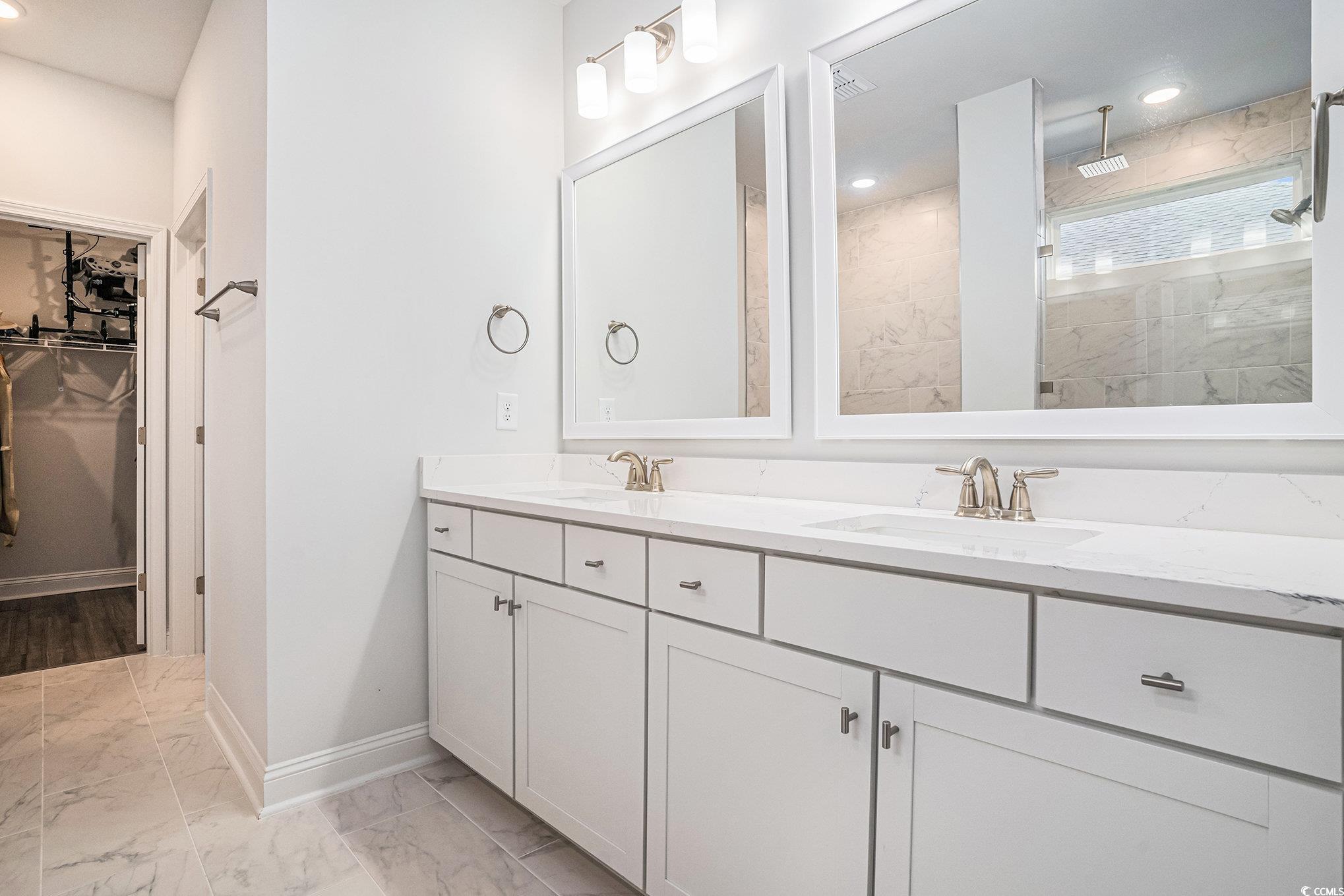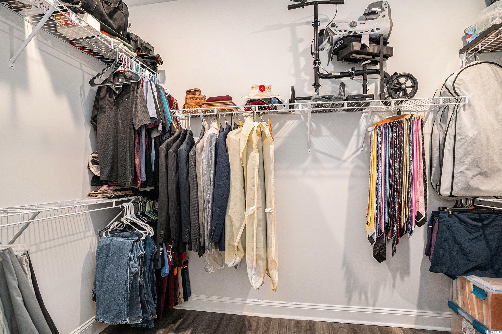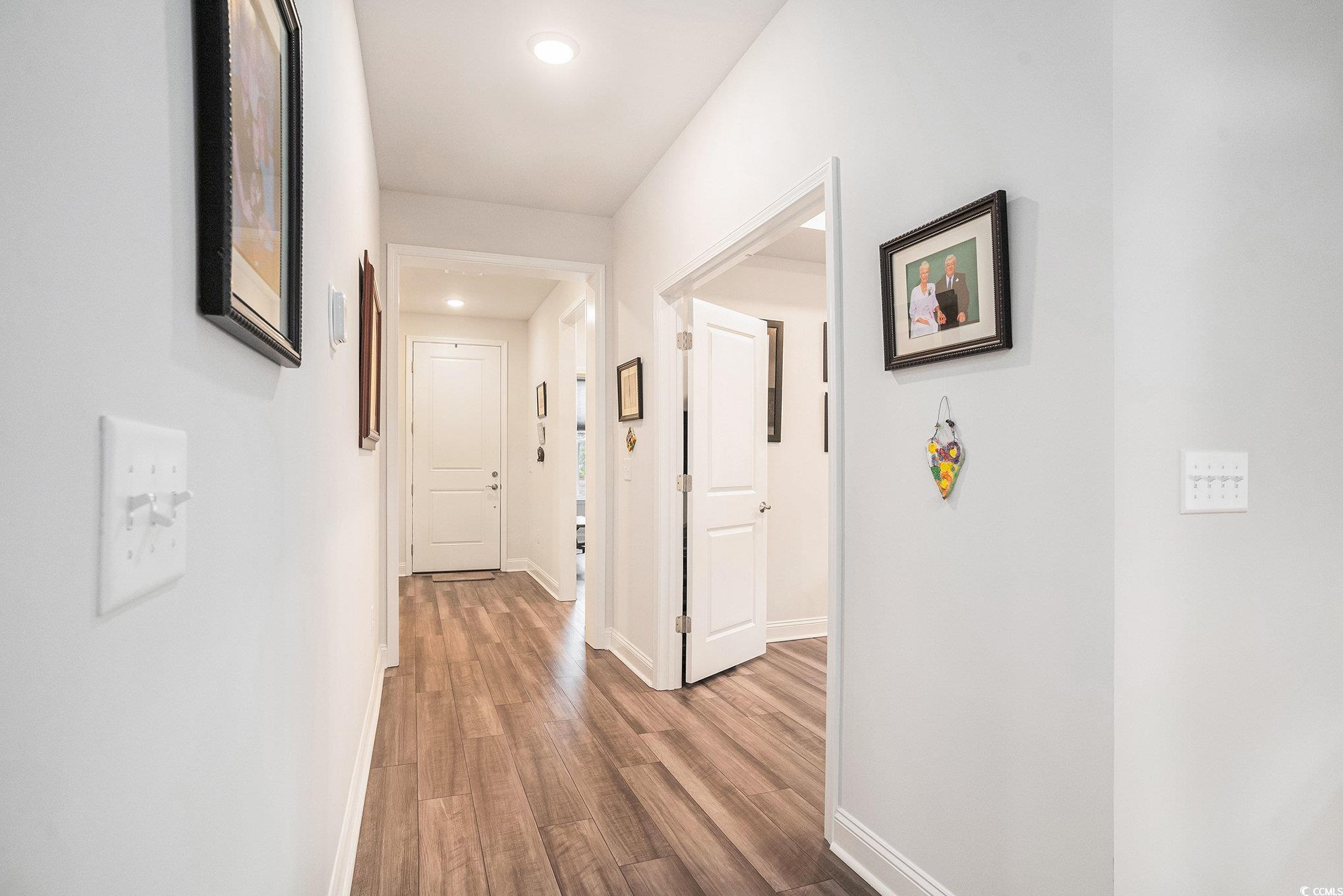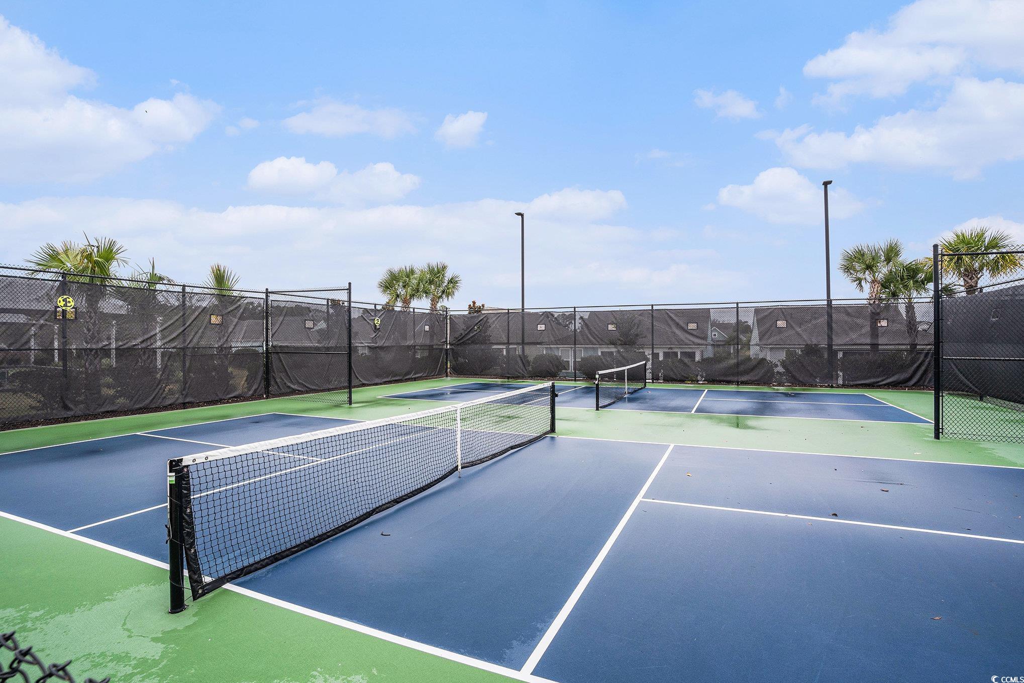 This beautifully maintained home is situated on a private, wooded homesite and offers a spacious open floorplan designed for comfortable coastal living. The extended gathering room flows seamlessly into a gourmet kitchen featuring built-in stainless Whirlpool appliances, a stainless vent hood over the gas cooktop, white and gray cabinetry, quartz countertops, and a desert gray tile backsplash with under-cabinet lighting. The home includes luxury vinyl plank flooring throughout, a large screened lanai with a gas stub-out for a future grill or outdoor kitchen, and a 2-car garage with additional tandem storage or golf cart space. Elegant tray ceilings accent the gathering room, flex/bonus room, and owner’s suite. The owner’s bathroom showcases a fully tiled spa shower with Carrara-style tile and a spacious walk-in closet. Additional upgrades include a custom trim package, brushed nickel finishes, gutters, and an irrigation system. Located within a vibrant 55+ community in central North Myrtle Beach—just a mile from the ocean—residents enjoy golf cart-friendly streets, pet-friendly policies, and fenced yards. HOA dues include yard maintenance, high-speed internet, cable, and access to planned resort-style amenities such as a clubhouse, indoor lap pool, outdoor saltwater pool and hot tub, pickleball and bocce courts, putting green, and a fitness center. A full-time lifestyle director coordinates community events and activities. Conveniently close to shopping, dining, medical facilities, marinas, golf courses, and public beach access, this property combines relaxed coastal living with an active, social community setting. Don't wait. Schedule your private tour today!