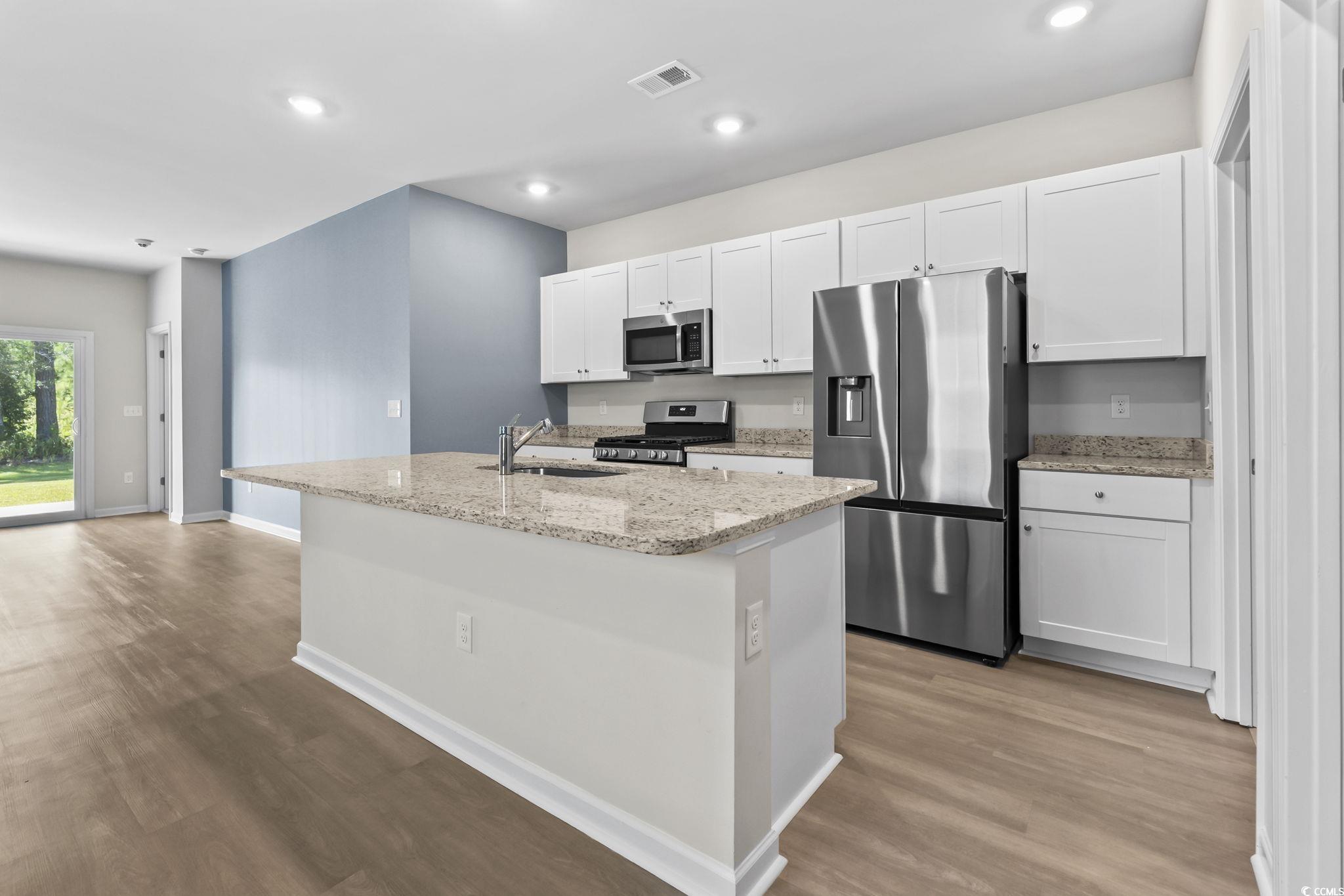 Nestled just outside the city limits of Conway, this better-than-new 5-bedroom, 2.5-bathroom home offers the best of both worlds: peaceful living in a charming neighborhood while being just minutes away from the excitement of Downtown Conway, Myrtle Beach, and the Grand Strand. With easy access to dining, shopping, golf, fishing, sports recreational centers, and, of course, the beach, you'll love the convenience of this prime location. Step inside and you'll immediately appreciate the modern spacious open layout, perfect for relaxation and entertaining family and friends. Five bedrooms provide plenty of room for a growing family, guests, and even a home office, while the 2.5 baths provide additional comfort and functionality. This house features pristine flooring, kitchen granite counters, stainless steel appliances, washer/dryer, security system and fixtures. Its original design has been further improved with a lawn irrigation system, gutters, landscaping, window blinds, a porch fan, and a high-efficiency universal electric vehicle charger, among other things. But life in Saddle Ridge is more than just the home: it's about community. Residents enjoy fantastic, well-maintained amenities, including a sparkling pool, clubhouse, playground, picnic area, and scenic lakes that add natural beauty and tranquility to the neighborhood. It's the perfect setting for weekend cookouts, playdates, or a relaxing evening stroll. If you're looking for a well-maintained home that offers no hassles and strikes a balance between comfort, convenience, and community, this Saddle Ridge gem is a must-see!