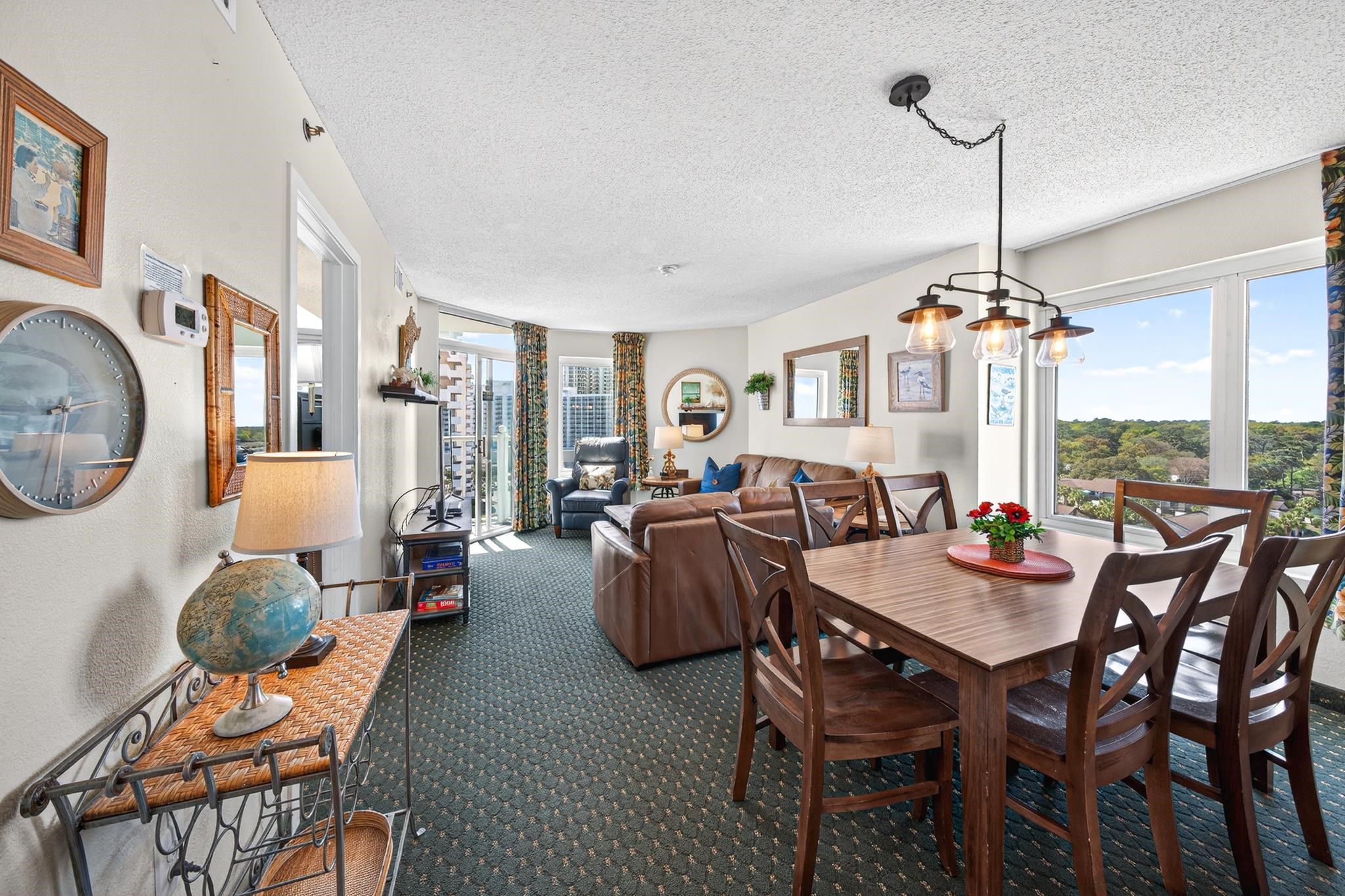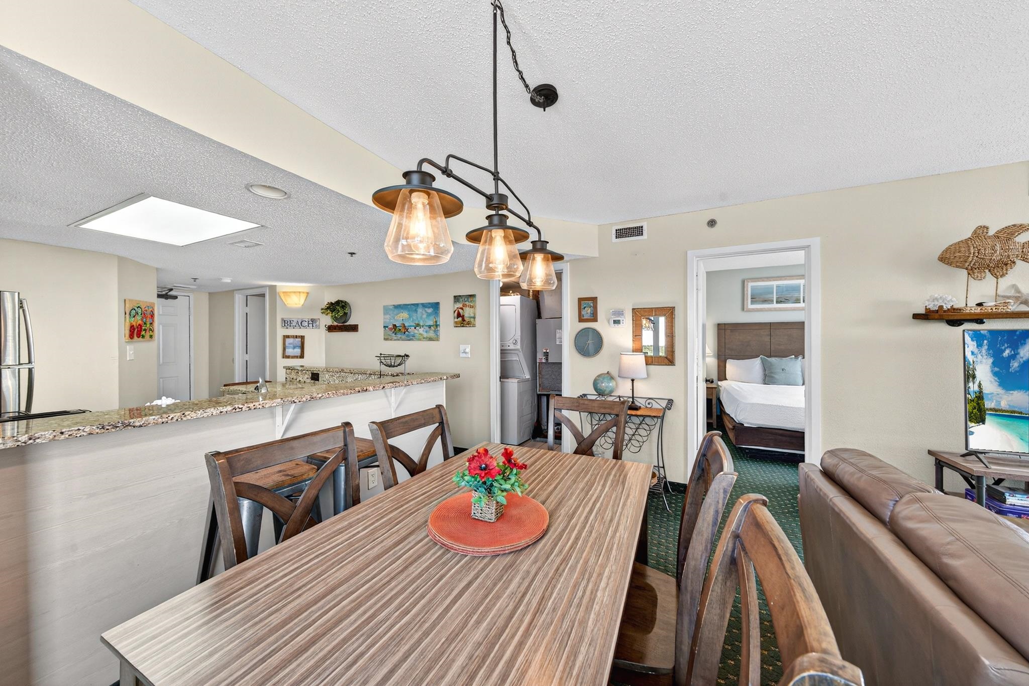 This well-maintained 2 Bedroom 2 Bath end unit is ready for the new owner! Granite counter tops in the kitchen and baths. The extra window in the dinning room brings in plenty of natural light while offering beautiful pond views. Whether you are looking for a vacation home, primary residence or an investment property, this unit is a must-see! The Resort sits on 10 acres and features many amenities: 5 outdoor pools, 2 indoor pools, 12 Jacuzzis, lazy river, an oceanfront restaurant/lounge, fitness room, game room, fire pit, Starbucks cafe, and much more.