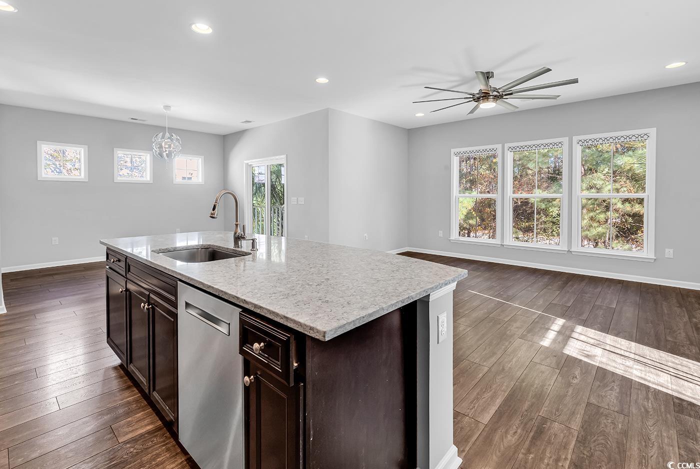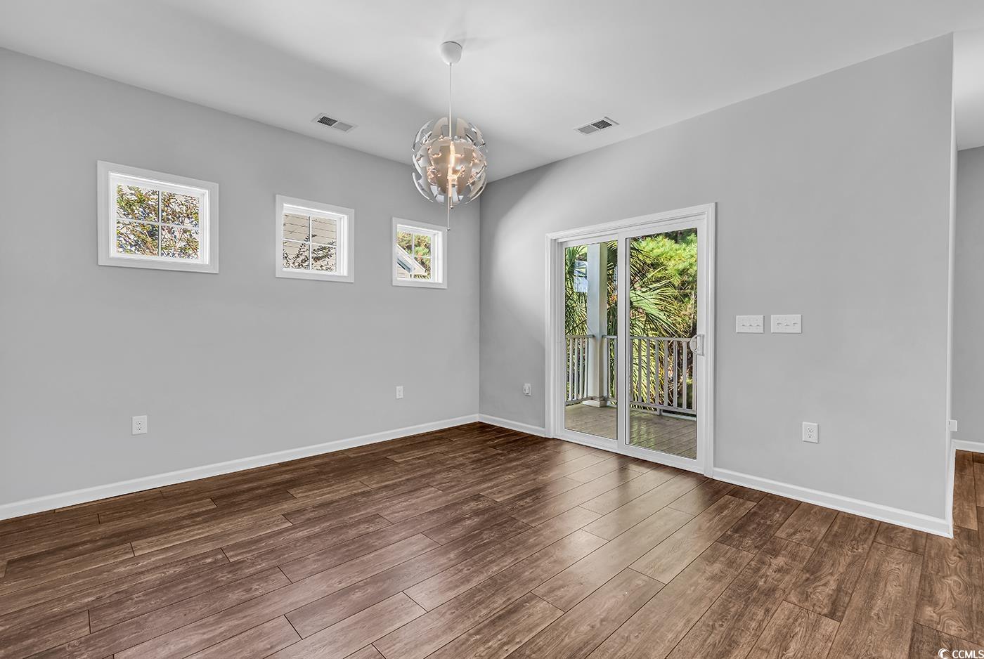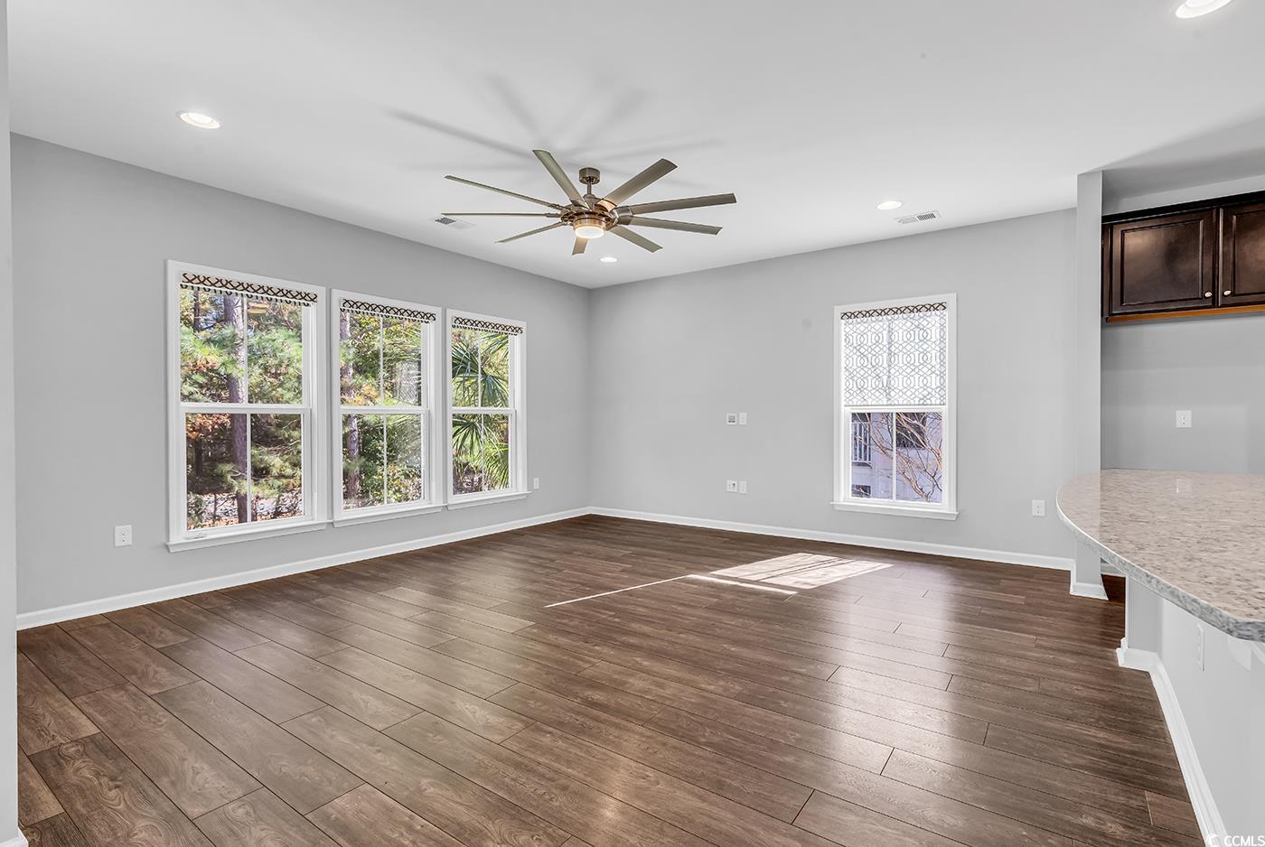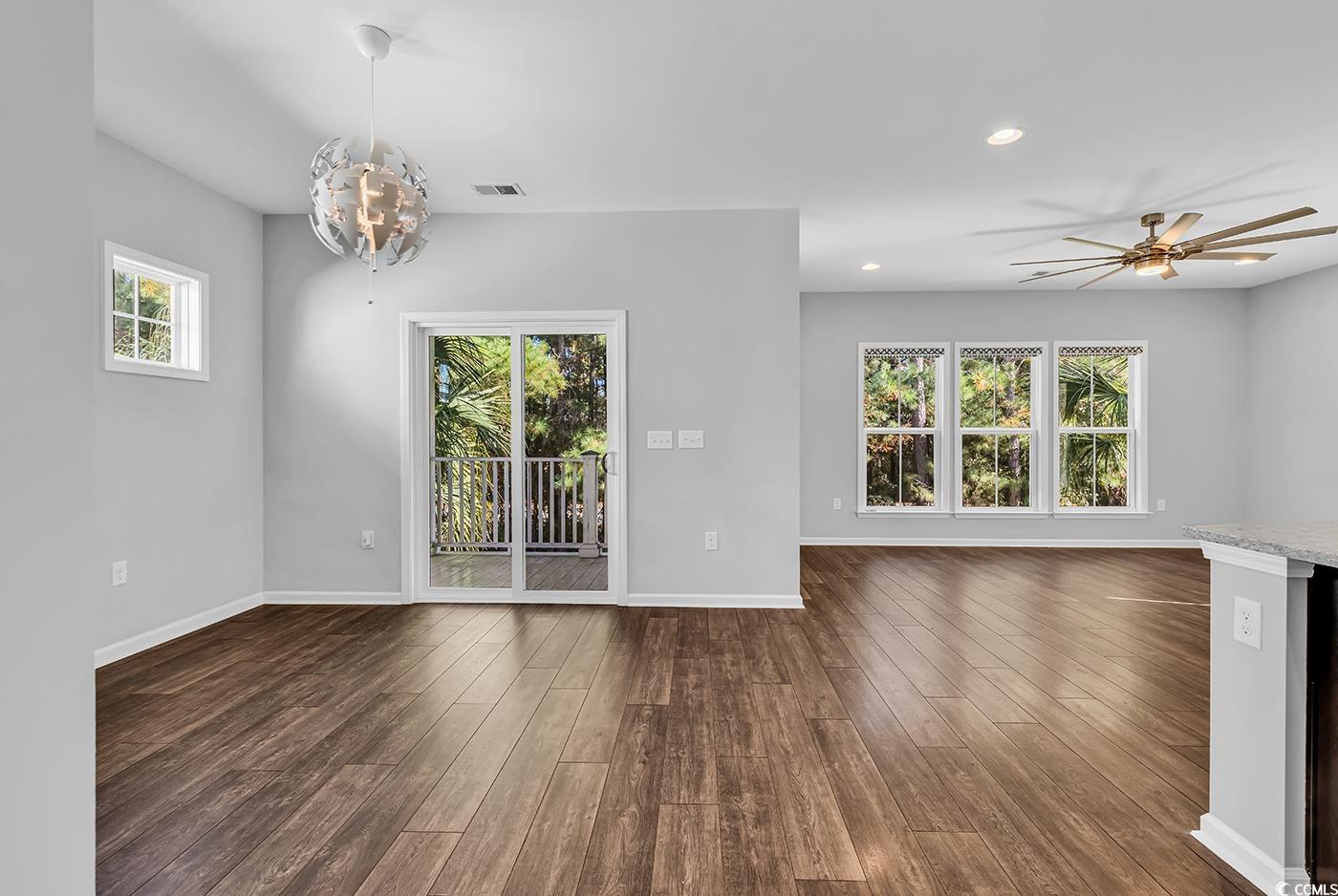 Immaculate raised beach style home in sought after Wilderness Pointe at Prince Creek. Exterior features Hardi-Plank siding, metal roof, and wind resistant windows throughout. There are two living areas! On the top floor you will find the main living area which leads into a very open kitchen/dining area, laundry room, and primary bedroom suite. Kitchen has quartz counter tops, wood cabinets, gas range and work island with sink & breakfast bar. The primary bedroom suite has a stand up shower with glass door, soaking tub, double vanity, generous walk-in closet and private water closet. There are 2 covered porches on the upper level - one off the primary suite and one off the living/dining areas. The secondary living space (2 bedrooms/1 full bath and large flex room) is on the ground floor along with the 2-car garage. Each room on this level has a ceiling fan. This home is ELEVATOR-READY so you could access both levels using the space built into the interior for this purpose...or utilitize the HUGE closet spaces this built-in area affords. The back patio and balcony have a view of the private wooded backdrop and your fully fenced backyard. Wilderness Pointe is a natural gas community and also has access to The Park at Prince Creek West which has an amazing amenities center offering two pools, 6 pickleball courts, tennis courts, bocceball, horseshoes, basketball court, picnic tables, covered fireplace, playground and walking trails. The community is located close to shopping, dining, entertainment, The Marshwalk, Brookgreen Gardens, Huntington Beach State Park, hospitals and is a quick ride to the beach. St. James Schools. Square footage is approximate and not guaranteed. Buyer to verify.