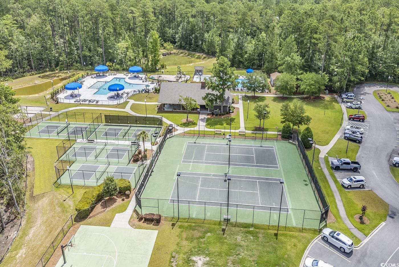 Talk about bang for the buck! This immaculate raised beach style home is located in sought after Wilderness Pointe at Prince Creek. Exterior features Hardi-Plank siding, metal roof, and wind resistant windows throughout. There are two living areas! On the top floor you will find the main living area which leads into a very open kitchen/dining area, laundry room, and primary bedroom suite. Kitchen has quartz counter tops, wood cabinets, gas range and work island with sink & breakfast bar. The primary bedroom suite has a stand up shower with glass door, soaking tub, double vanity, generous walk-in closet and private water closet. There are 2 covered porches on the upper level - one off the primary suite and one off the living/dining areas. The secondary living space (2 bedrooms/1 full bath and large flex room) is on the ground floor along with the 2-car garage. Each room on this level has a ceiling fan. LVP flooring in all living areas. This home is ELEVATOR-READY so you could access both levels using the space built into the interior for this purpose...or utilitize the HUGE closet spaces this built-in area affords. The back patio and balcony have a view of the private wooded backdrop and your fully fenced backyard. Wilderness Pointe is a natural gas community and also has access to The Park at Prince Creek West which has an amazing amenities center offering two pools, 6 pickleball courts, tennis courts, bocceball, horseshoes, basketball court, picnic tables, covered fireplace, playground and walking trails. The community is located close to shopping, dining, entertainment, The Marshwalk, Brookgreen Gardens, Huntington Beach State Park, hospitals and is a quick ride to the beach. St. James Schools. Some photos are virtually staged. Square footage is approximate and not guaranteed. Buyer to verify.