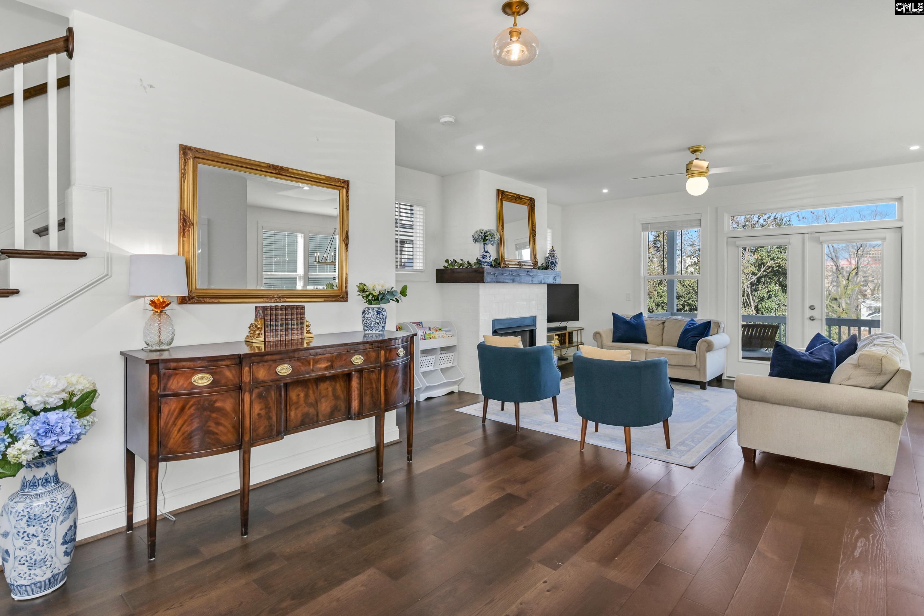 Luxury in-town living at it’s finest with sweeping views of the city skyline and mere blocks from Five Points, USC, AC Moore Elementary, city parks, a public pool, etc in a nearly new home w/classic styling. Easy access to Devine St and Rosewood shopping and dining, and mere minutes to the Statehouse, Main St entertainment, the Vista, Richland Library, Finlay Park, The BullStreet District, museums, Riverbanks Zoo, and easy access to I-77 and I-26. This 4 bedroom / 3 ½ bathroom home features FOUR covered outside areas (a wide front porch, upper porch off the master bedroom, main porch off the living room, and a covered patio at the lower level). Other features include a driveway w/side by side parking (rare in the city); open floor plan; engineered hardwoods on main and upper levels; recessed lighting throughout; cubbies and stash area at entry; large living room w/gas log fireplace and wall of glass facing the back porch / city; open dining; gourmet kitchen w/huge island w/bar, white shaker style cabinets, stainless appliances, marble countertops, tile backsplash, gas range w/convection oven and chimney style vent hood, and pantry; master bedroom w/amazing views from private porch, walk-in closet, private bath w/double vanity and tile shower; bedroom two and three upstairs w/a second full bathroom w/tub/shower; upstairs laundry near bedrooms; lower level flex area with luxury vinyl plank flooring that could be fourth bedroom w/private full bathroom and closet and additional office / living area or a large entertainment area; huge storage room on lower level (184sqft not included in listing total); low maintenance composite decking on porches; and tankless gas water heater. Disclaimer: CMLS has not reviewed and, therefore, does not endorse vendors who may appear in listings.