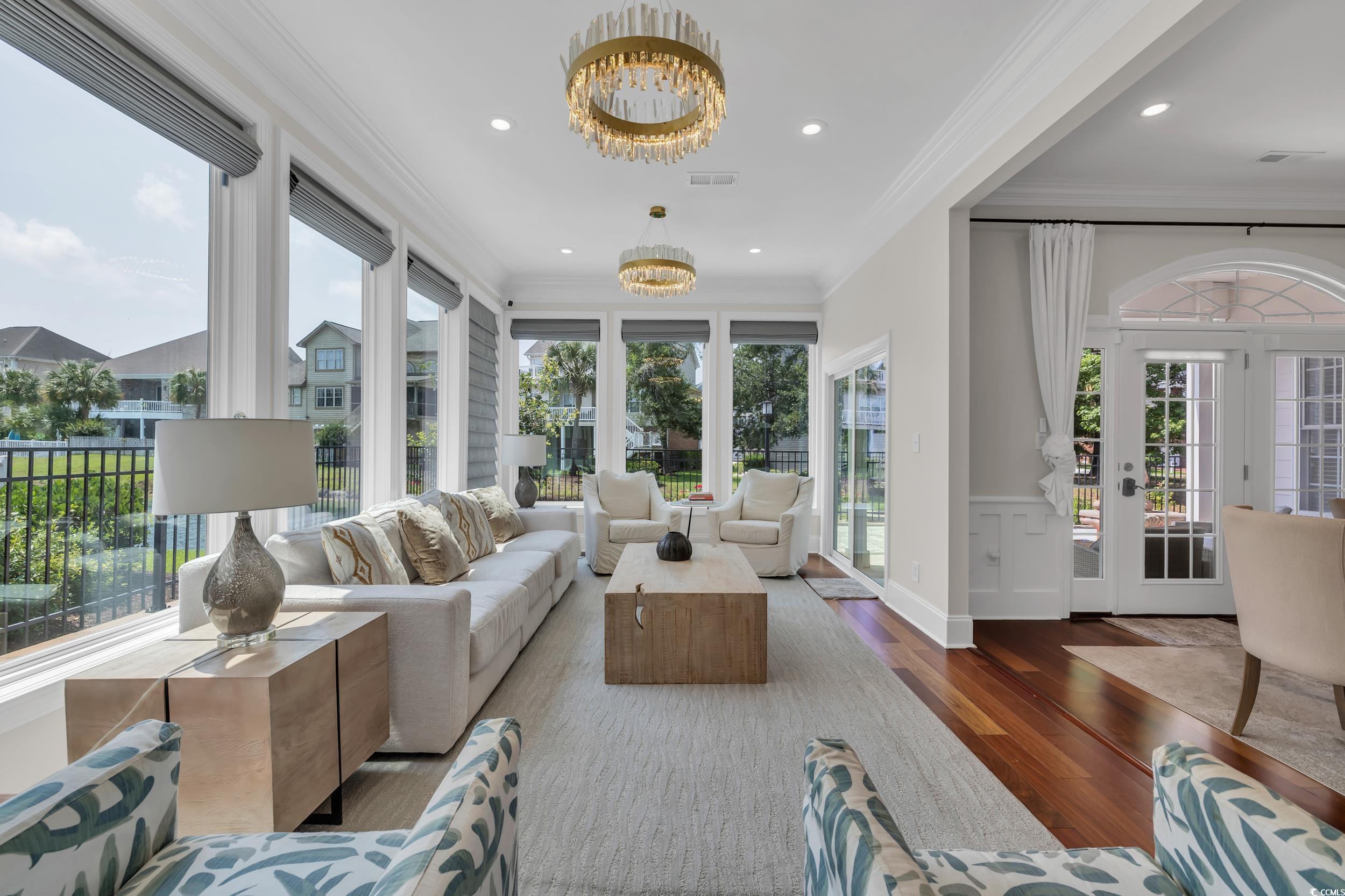 Welcome to your new home in Sunset Harbour, one of the most desirable communities in North Myrtle Beach. Community features a boat ramp for your boats or jet skis to go on the Intracoastal Waterway (ICW). This stunning 5 bedroom, 4.5 bath home features beautiful hardwood flooring, generous vaulted ceilings, ceramic tile in laundry room and bathrooms, and plenty of other thoughtful and tasteful details that make this a dream home. The living room’s breathtaking wall of windows welcomes natural light into the open concept space. The kitchen has two pantries, granite countertops, and stainless steel appliances. The primary bedroom boasts spectacular features including a large sitting area for additional room, a deck with pond views, a fireplace and a huge walk in closet while the primary bath has a large walk-in shower & a jacuzzi tub. The large covered porch in the backyard is perfect for lounging and admiring the pond. One bedroom downstairs and extra space in front of home on first floor that could be used as an office, formal dining area or more! Home is located in the Heart of North Myrtle Beach and all that North Myrtle has to offer. Golf cart ride to the beach, restaurants, golfing, entertainment, Main Street Events, Live Music, golfing and more! Mostly furnished!