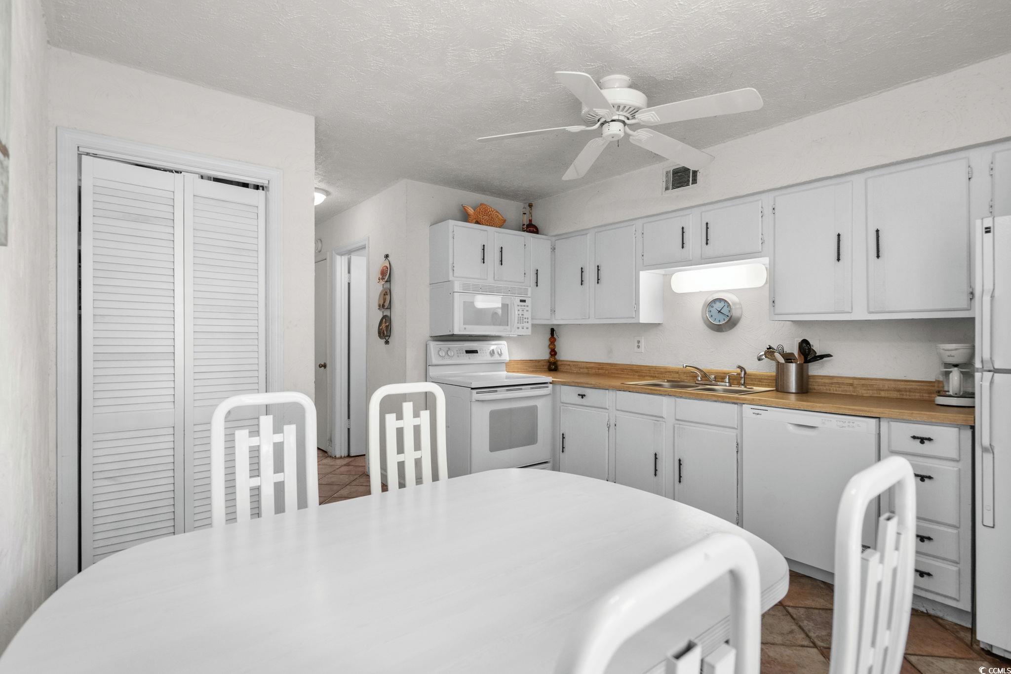 Welcome to Sundowner, an exclusive townhome community in North Myrtle Beach featuring just 14 units, a community pool, and a short walk to the beach. This 2-bedroom, 1.5-bath true townhome centers around a bright kitchen with a cozy eat-in nook. The open living area is filled with natural light, creating a welcoming space to relax or gather. Venture upstairs to discover two generously sized bedrooms, each designed with comfort in mind, including ceiling fans and ample closet space. The outdoor space is equally impressive with cozy patio, perfect for grilling, and overlooks the outdoor pool. Additional highlights include newer vinyl siding, windows and doors, and a roof replacement completed in 2018. Sundowner Townhomes boasts a central location that puts you within easy reach of shopping, dining, entertainment, and the beach. With low HOA fees, this turnkey property offers a hassle-free lifestyle. Enjoy the coastal charm of Crescent Beach—schedule a showing today!