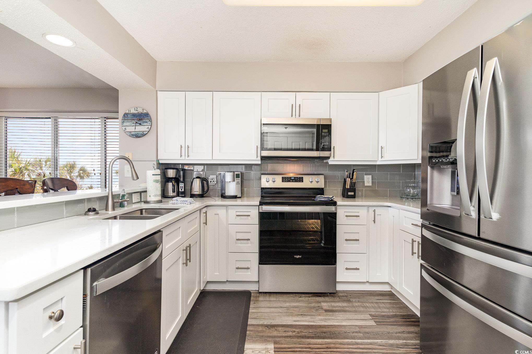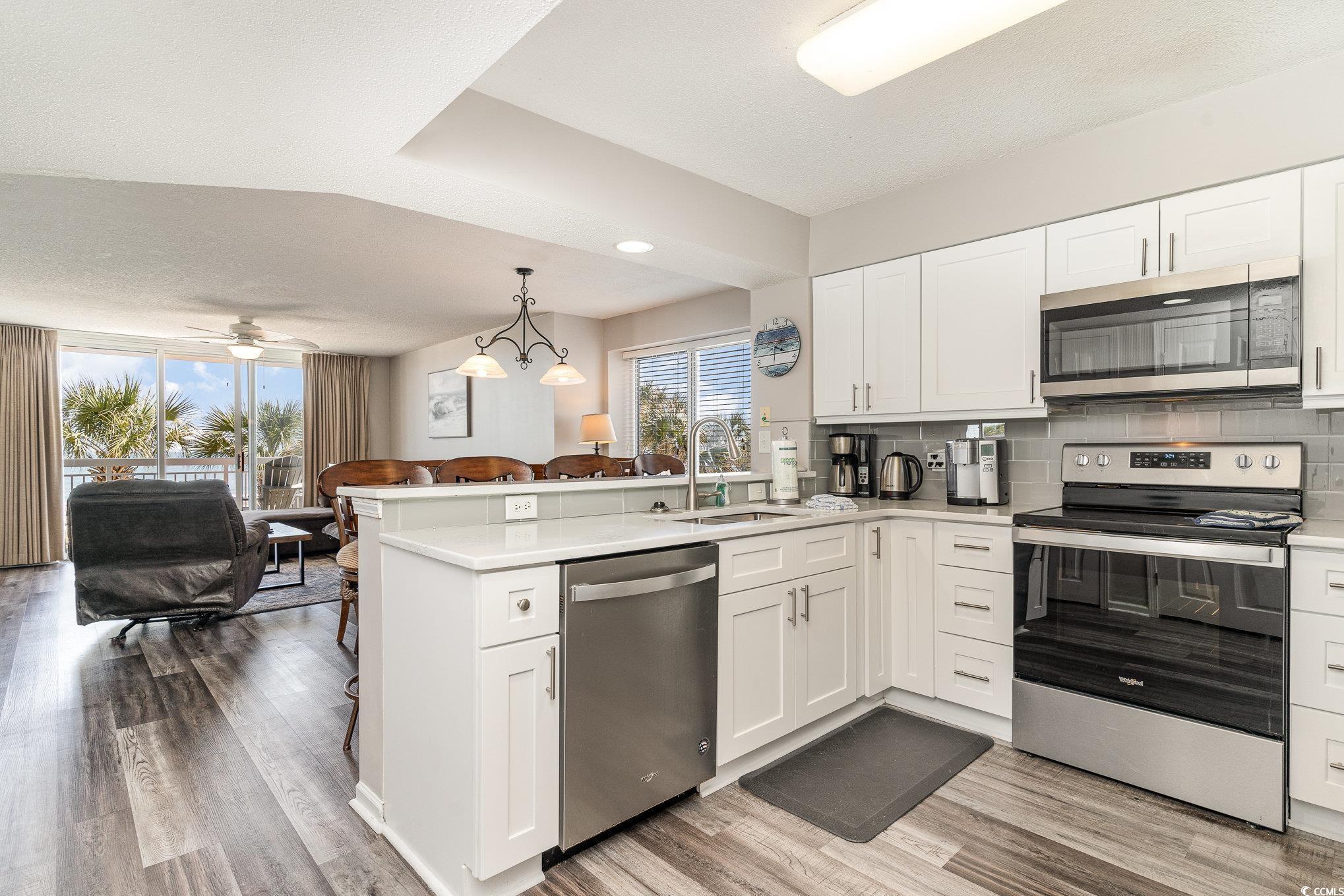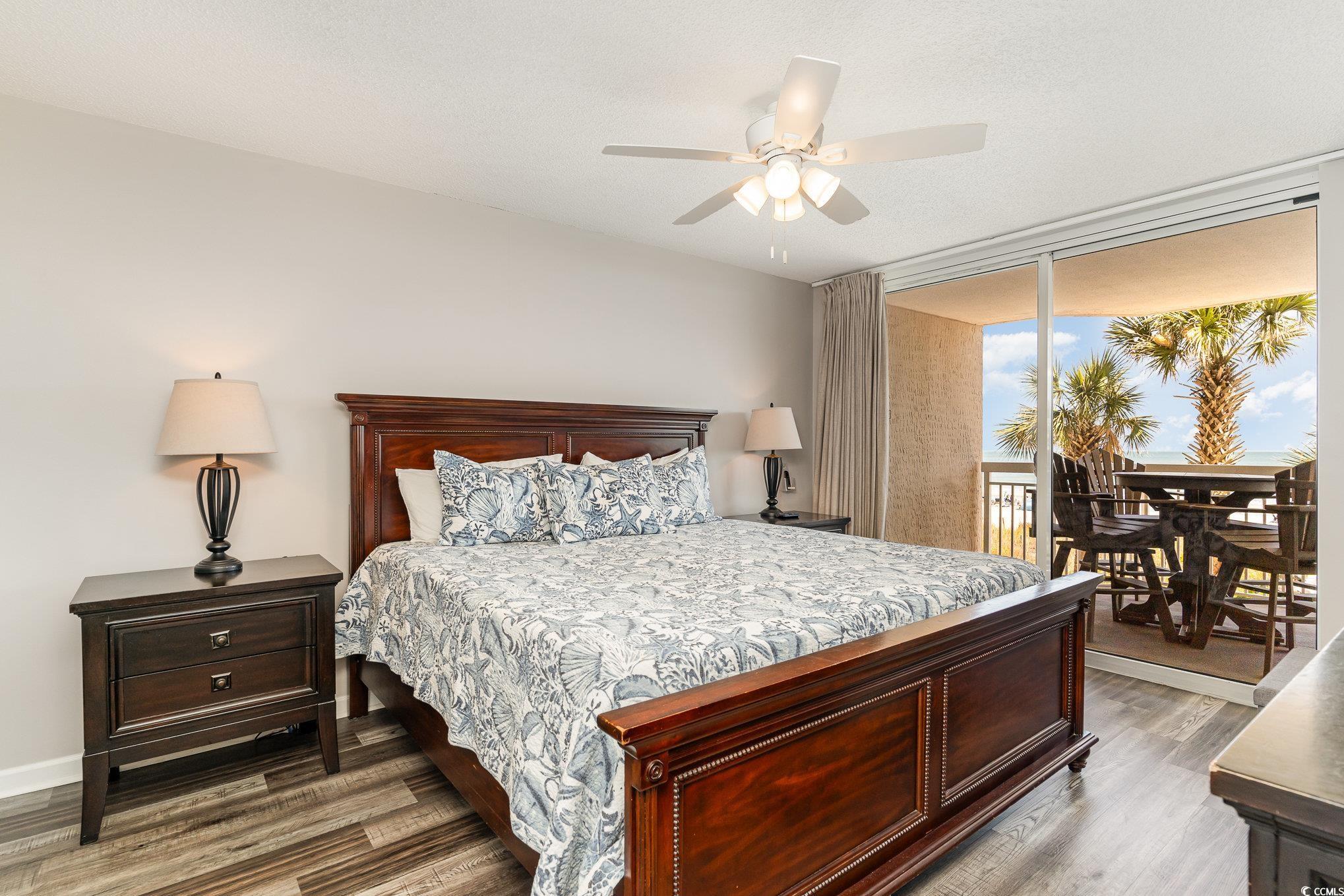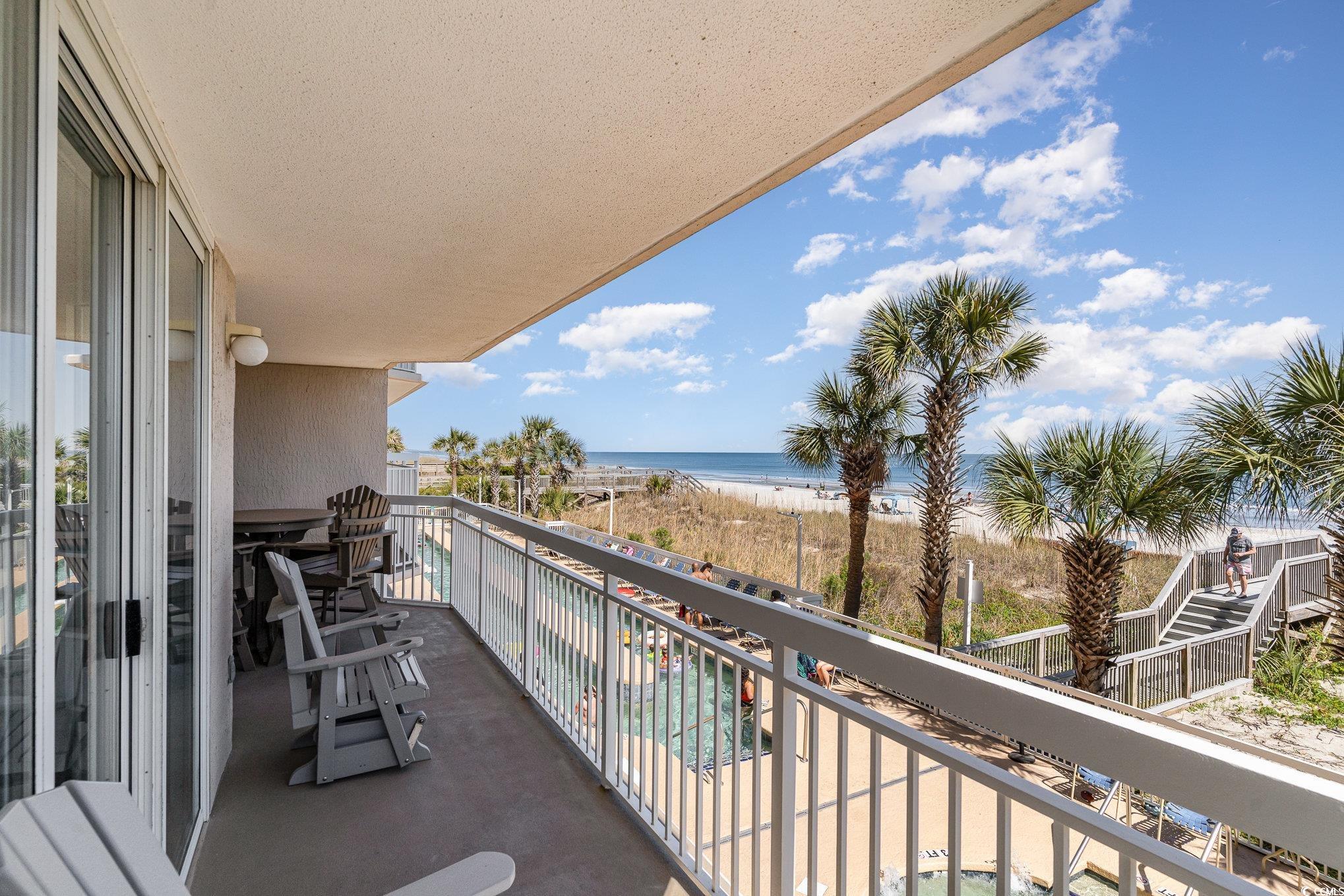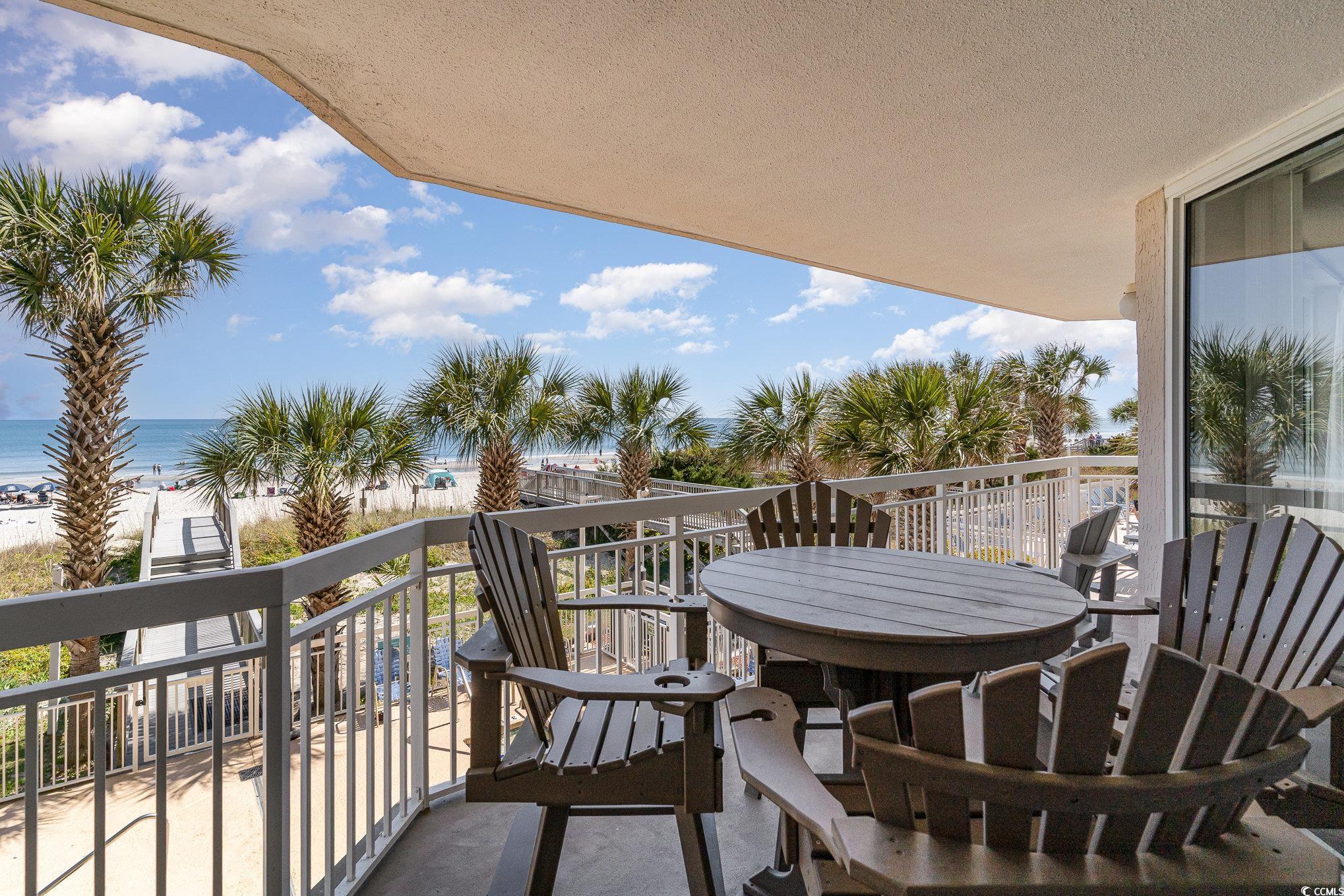 This stunning four-bedroom, three bath direct Ocean front corner unit offers a perfect blend of comfort and style. Recently updated, the unit features beautiful new luxury vinyl plank(LVP) flooring that enhances its modern aesthetic. The kitchen is a highlight, showcasing comtemporary finishes and ample space for culinary endeavors, making it ideal for gatherings with family and friends. From the first-floor balcony, you can enjoy breathtaking ocean views and the soothing sounds of the waves crashing, creating a serene retreat right at your doorstep. The Master bedroom offers Beautiful motorized drapery, a large walk in closet, double sink vanity and an upgraded walkin tiled shower in the bathroom. It also has access to the balcony. Convenience is key, as there is no elevator needed to get to this unit, making it super easily accessible. The location is fantastic, with great shopping and a variety of fine dining restaurants nearby, ensuring you have everything you need within reach. This unit is perfect for those looking to enjoy the coastal lifestyle with all the comforts of home. the Master bedroom offers motorized drapery, a large walk in closet, double sink vanity and upgraded shower in the bathroom and access to the balcony. You can also relax and enjoy your morning coffee or evening cocktail on your very large 26 foot balcony.