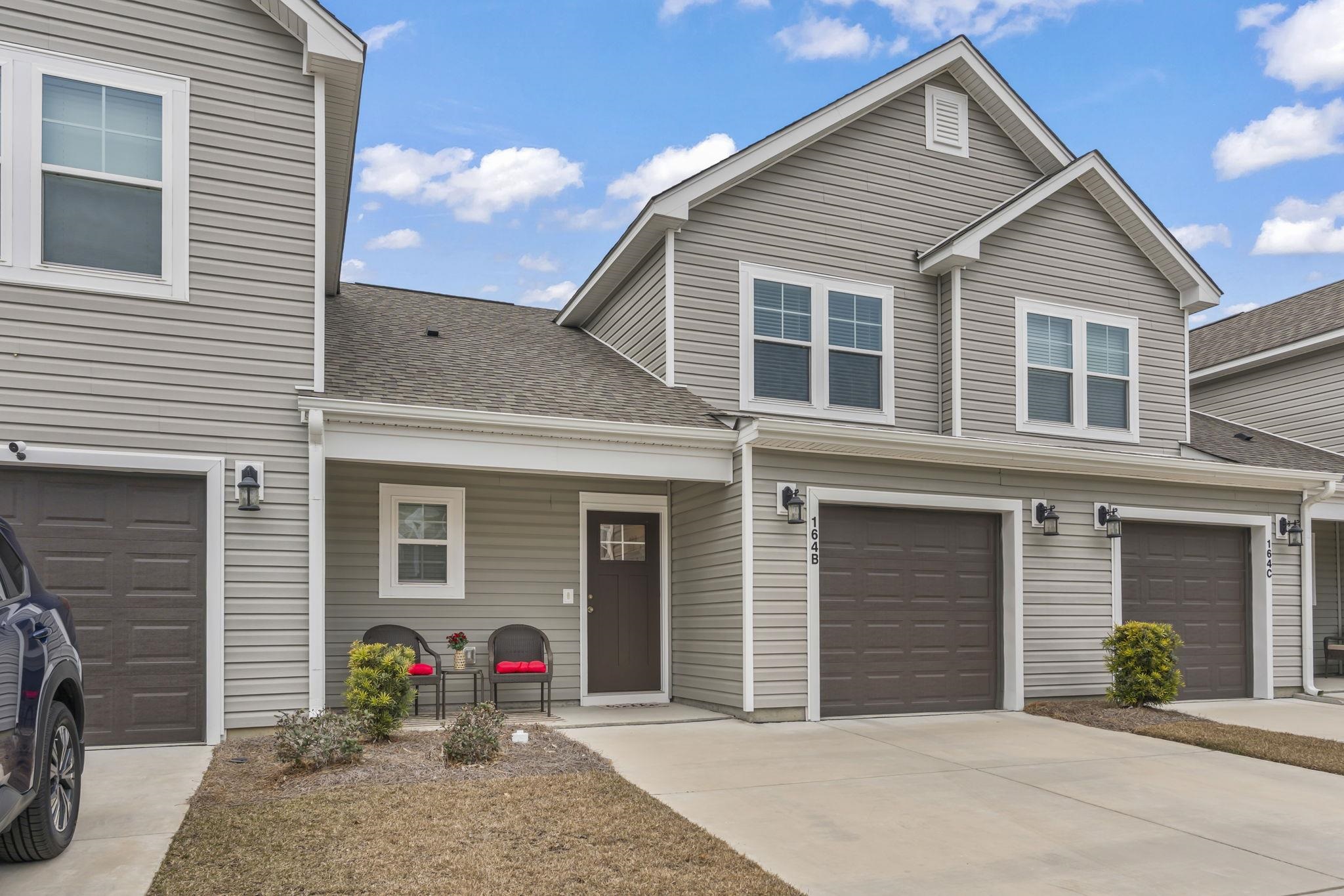 Welcome to 164 Machrie Loop Unit B — a beautifully maintained condo in the sought-after Berwick at Windsor Plantation, close to everything Myrtle Beach has to offer. This welcoming home features a bright, open living area with luxury vinyl plank flooring and vaulted ceilings that fill the space with natural light. The stylish, functional kitchen includes stainless steel appliances, ample cabinetry, generous counters, and a large island perfect for casual meals. The main-level primary suite provides comfort and privacy with a spacious bedroom, walk-in closet, double sinks, and tiled shower. Convenient Laundry also on the first level. Upstairs are two additional bedrooms with roomy closets and warm natural light. Enjoy your morning coffee or relaxing evenings in the screened-in porch and take advantage of the attached garage and HOA-covered landscaping for low-maintenance living. The community offers a beautiful pool ideal for sunny South Carolina days. Located close to world-class golf courses, lively entertainment, waterfront restaurants, shopping, hospitals and medical offices, and white sandy beaches, this home is perfectly positioned for both leisure and convenience.