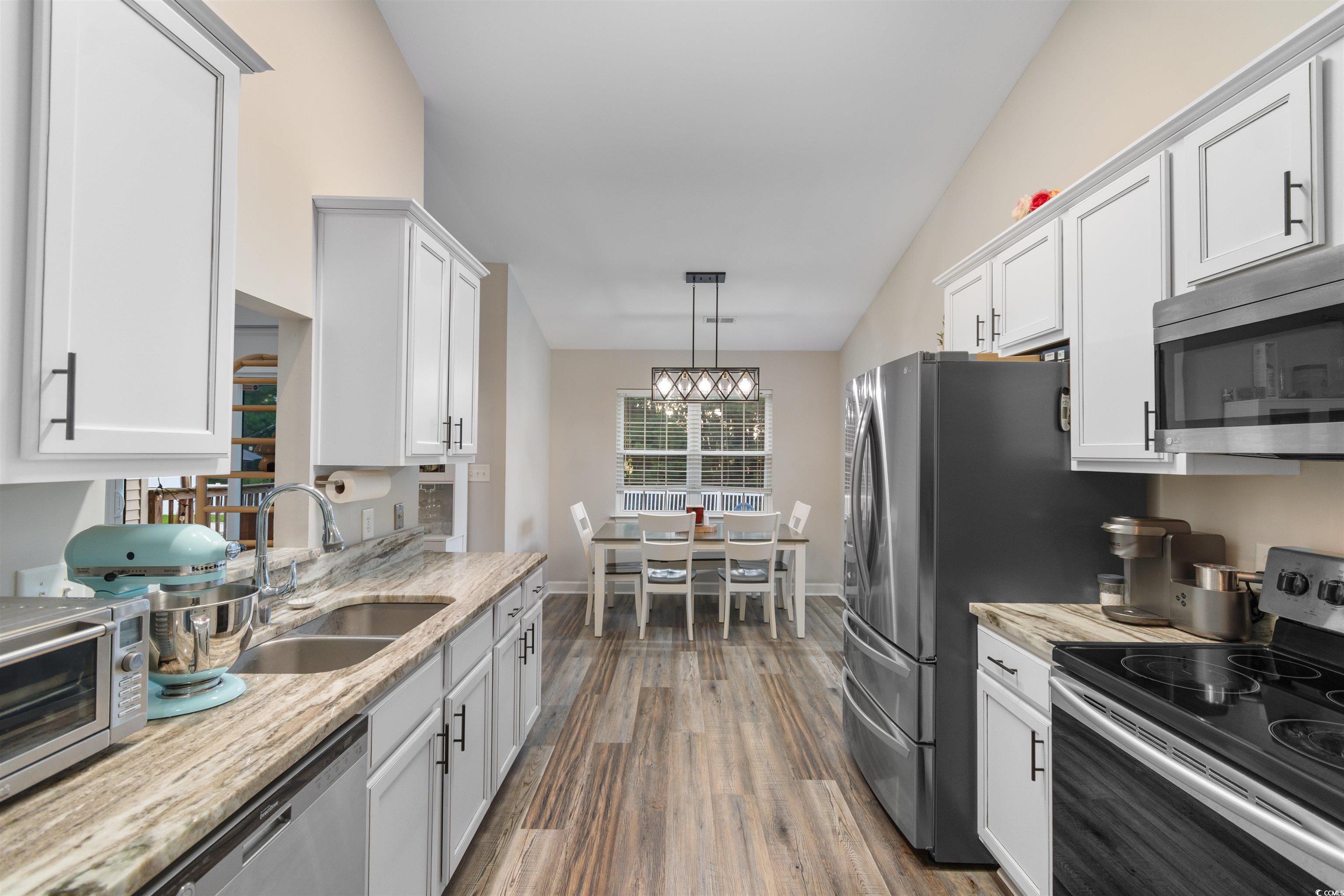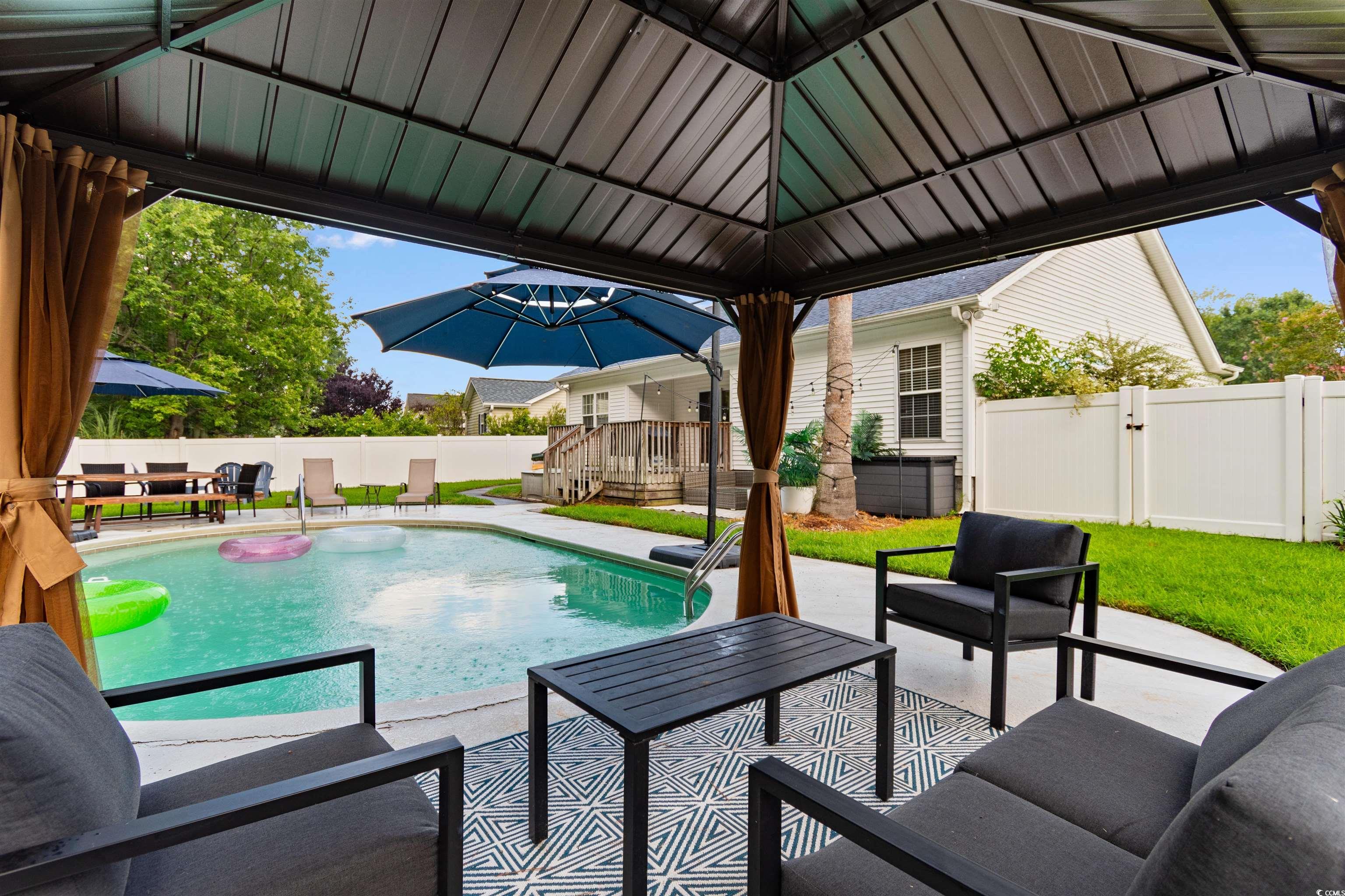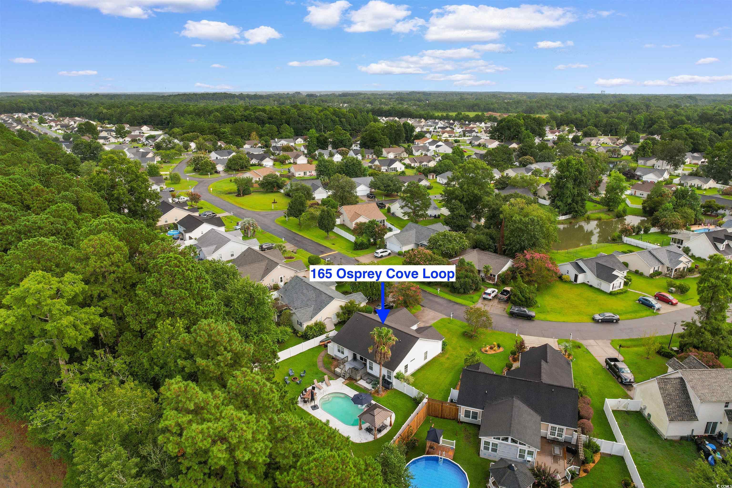 Private Backyard Oasis Near the Beach! Welcome to 165 Osprey Cove Loop, a beautifully upgraded 3-bedroom, 2-bathroom home located in a quiet community just minutes from the beach. Step inside to a bright, open floor plan featuring a vaulted ceilings in the living room that creates an airy, spacious feel. The kitchen is both stylish and practical with updated kitchen cabinets, granite countertops, and a cozy dining area. The primary suite is a peaceful retreat with vaulted ceiling, an en-suite bath and generous closet space, while two additional bedrooms offer flexibility for guests, family, or a home office. But the real showstopper is the private backyard oasis: enjoy the saltwater in-ground pool, relax under the gazebo or on the back deck, and take in the serenity of a fenced yard on a creek, the perfect spot to unwind or entertain. Grill out by the pool or sit around the fire pit on cooler nights. Located in the desirable Osprey Cove community, off of 707 near Highway 31, with central access to all that the Grand Strand has to offer - Market Common, Coastal Grand Mall, Myrtle Beach International Airport, golf, shopping, and dining. Call your realtor to make an appointment today!