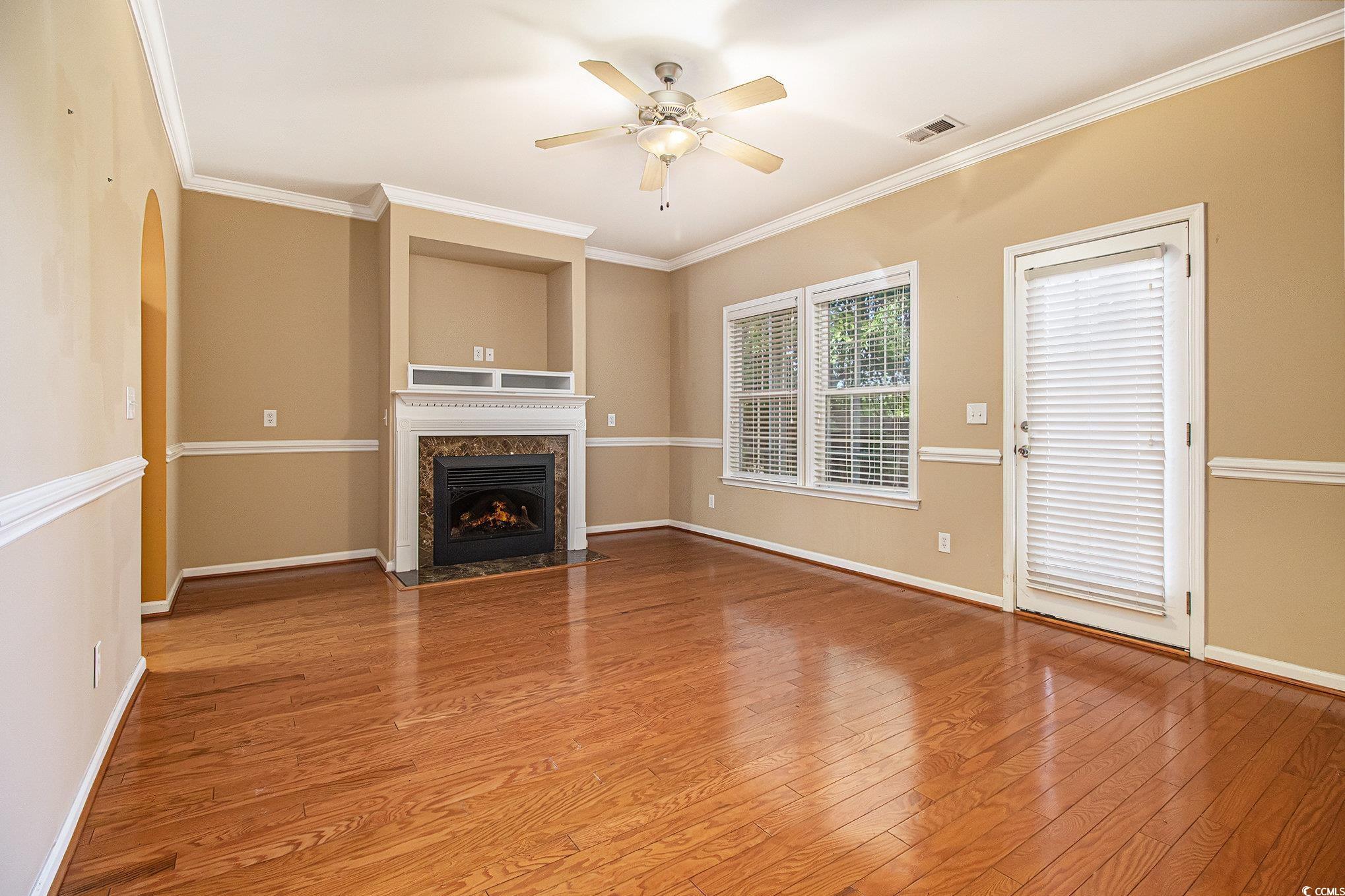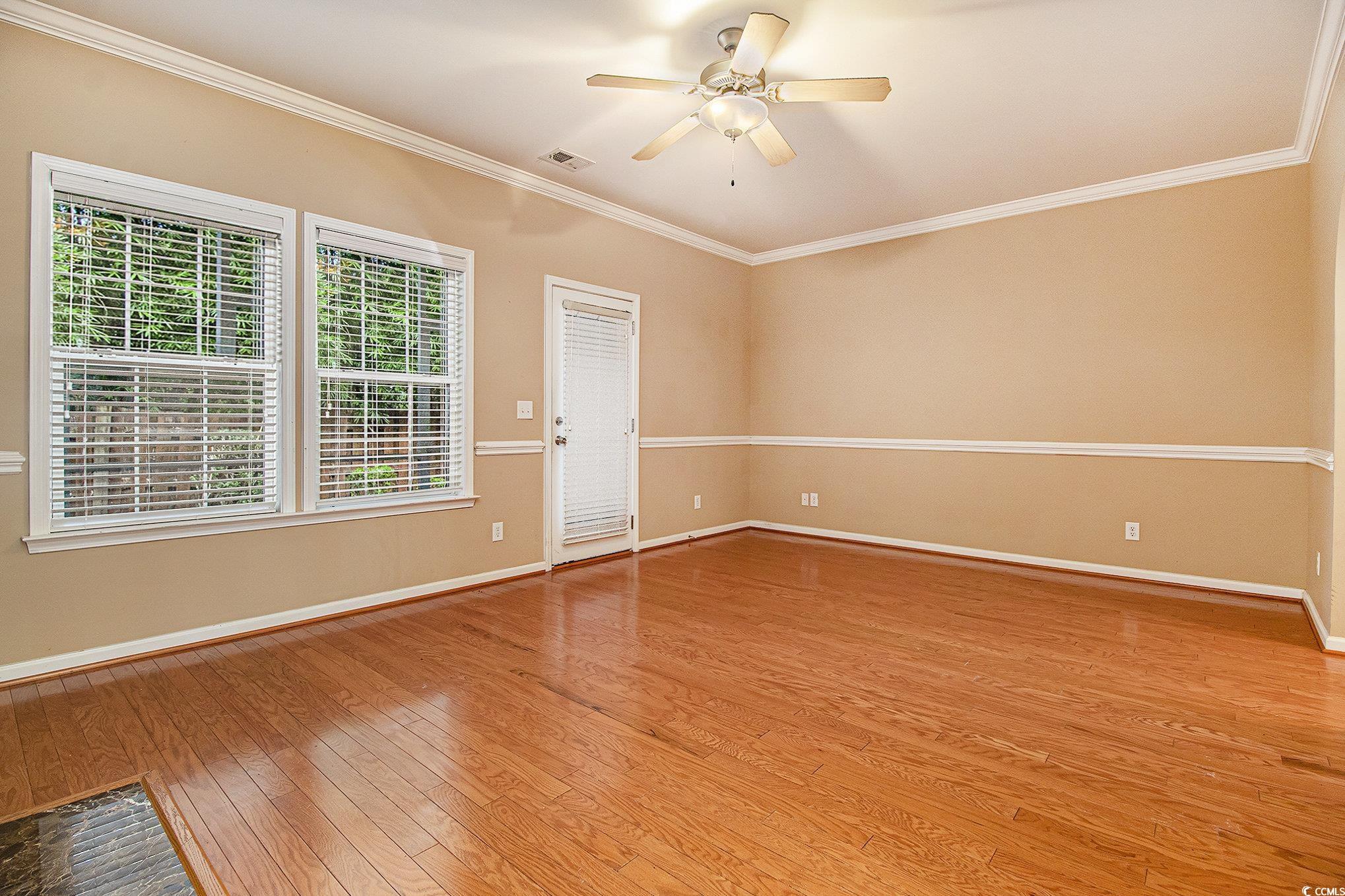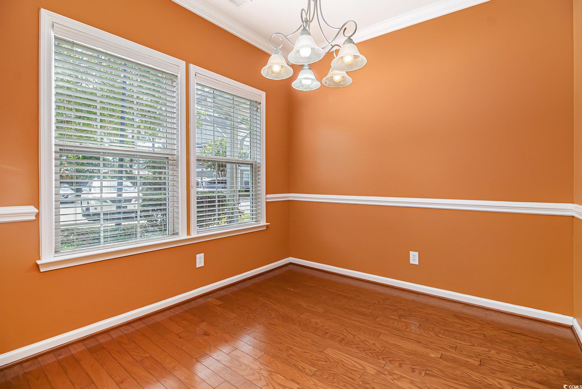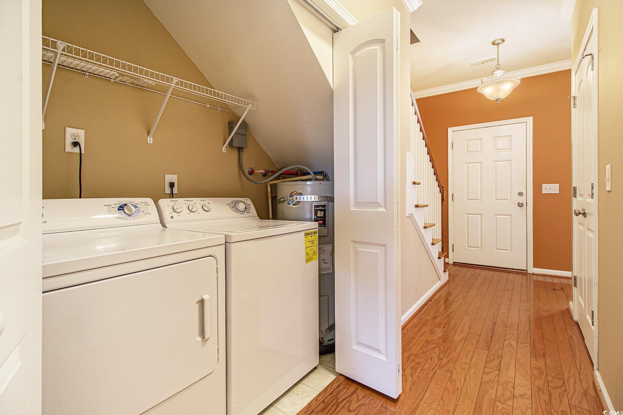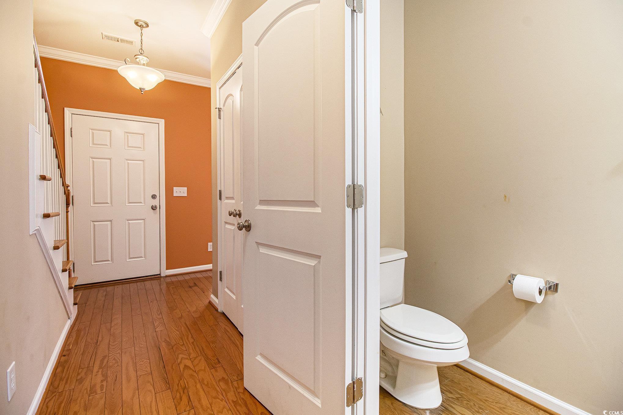 Welcome to your dream townhome in the gated Pine Island Townhomes community of Myrtle Beach! This charming three-bedroom, two-and-a-half-bathroom residence perfectly blends comfort and style. As you enter, you'll be welcomed by a fully equipped kitchen featuring ample cabinet and countertop space for all your culinary creations. Adjacent to the kitchen is a cozy private dining area bathed in natural light, making every meal a delight. The spacious living area, complete with a warm fireplace, is perfect for entertaining friends and family. Beautiful hardwood floors flow seamlessly through the kitchen, dining, and living areas, adding an elegant touch. A half bathroom on the main level enhances the home's functionality, and there's a dedicated laundry area for your convenience. Upstairs, you'll find three inviting bedrooms, all carpeted for comfort, alongside two bathrooms equipped with convenient shower-tub combos. The master bedroom serves as a true retreat, boasting a large walk-in closet and vaulted ceilings that enhance the spacious feel. Don't overlook the private balcony off the master suite, ideal for sipping morning coffee or unwinding after a long day. Step outside to enjoy the screened-in rear porch, a peaceful space to relax, complemented by an attached storage closet for your extra belongings. After a day soaking up the sun, refresh yourself with a dip in the community pool. Pine Island Townhomes is ideally located just a short drive from the pristine beach, with easy access to Myrtle Beach's exceptional dining, shopping, golf courses, and entertainment options. Whether you're looking for a forever home, vacation spot, or investment property, this townhome is the perfect choice. Don't wait, schedule your showing today and start living the coastal lifestyle you've always dreamed of!