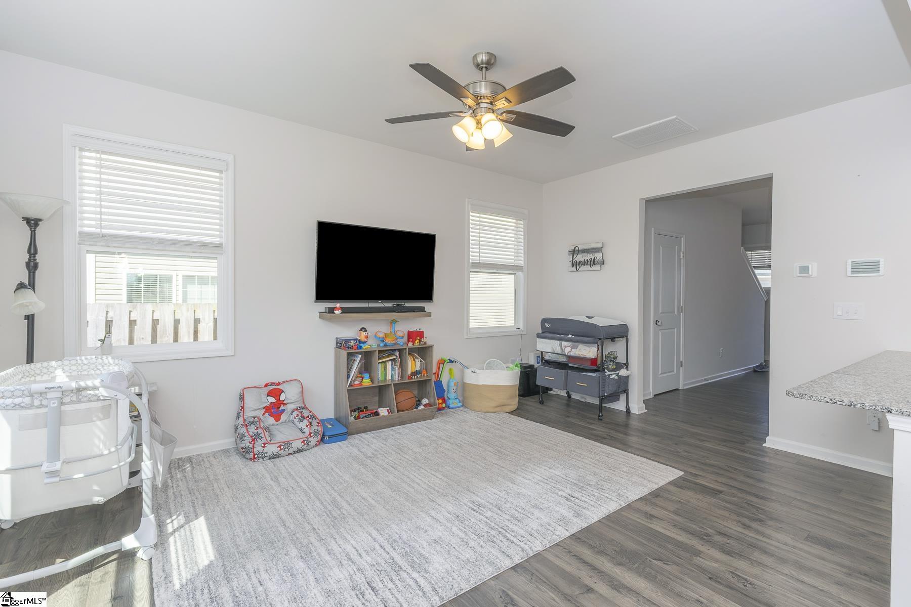 Welcome to 167 Clingstone Trail in Duncan, SC, a beautifully maintained premium 3-bedroom, 2.5-bath end-unit townhome in the Peach Tree Park community, offering extra space, natural light, and thoughtful upgrades throughout. With a covered front porch, attached garage, and an extended driveway for additional parking, this home delivers both curb appeal and everyday convenience. Step inside to an inviting entryway that showcases the stairwell and opens into a bright, airy layout featuring durable laminate plank flooring and abundant natural light. The open-concept design seamlessly connects the main living spaces, making it ideal for both relaxing and entertaining. The kitchen overlooks the spacious living area and is well-appointed with white cabinetry, granite countertops, island, pantry and top-of-the-line Samsung stainless steel appliances, including a built-in microwave and refrigerator. The dishwasher features a stainless steel tub and a third rack for added convenience, while the gas top range offers 5 burners, perfect for the cook of the house. Just off the kitchen, the dining area offers direct access to the backyard, creating an easy indoor-outdoor flow. Upstairs, you’ll find three generously sized bedrooms with light, neutral carpeting that enhances the bright and open feel. Each bedroom offers ample closet space and natural light. The primary suite serves as a comfortable retreat, featuring a spacious walk-in closet and a private ensuite bath with dual vanities. Outside, enjoy a private fenced backyard designed for low-maintenance living, complete with a paved patio, perfect for outdoor seating, grilling, or entertaining guests. Built with energy efficiency in mind, the home also includes a centralized media panel that keeps internet and cable connections organized and easily accessible. Conveniently located near I-85 and GSP, this premium end-unit combines functionality, style, and location, ready for you to enjoy.