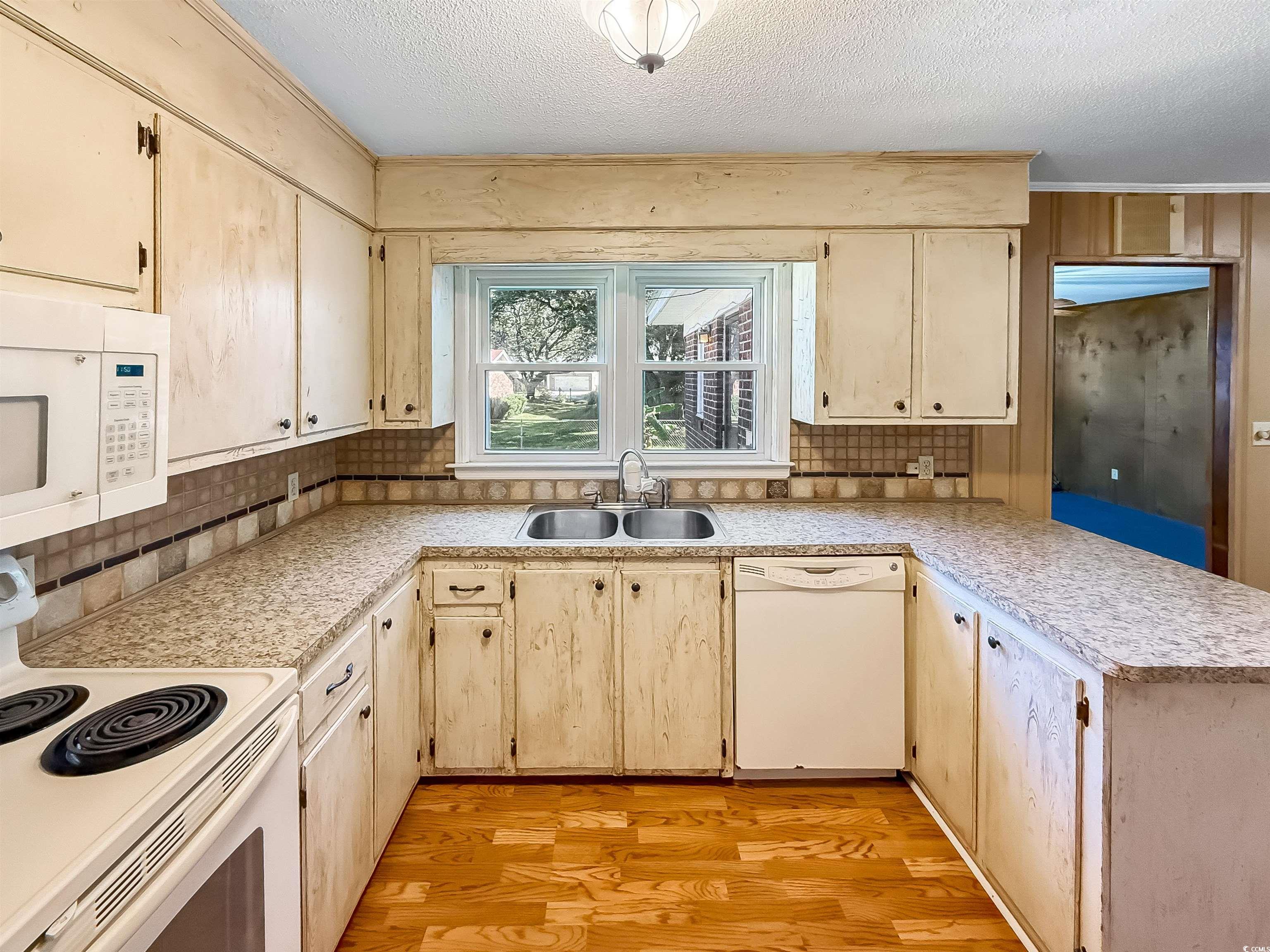 Solid brick home in the Kensington section of Georgetown, situated on a generous lot with mature trees. The main living area is centered around a large brick fireplace, offering a spacious gathering spot. The functional kitchen overlooks the backyard and opens to a separate dining or utility space. A versatile bonus room provides a great space for a den, office, or playroom. The large, fenced in backyard is perfect for outdoor activities. Detached storage building with electricity would make a great space for tools and workbench. A great opportunity to bring your personal touches to a well-built home.
