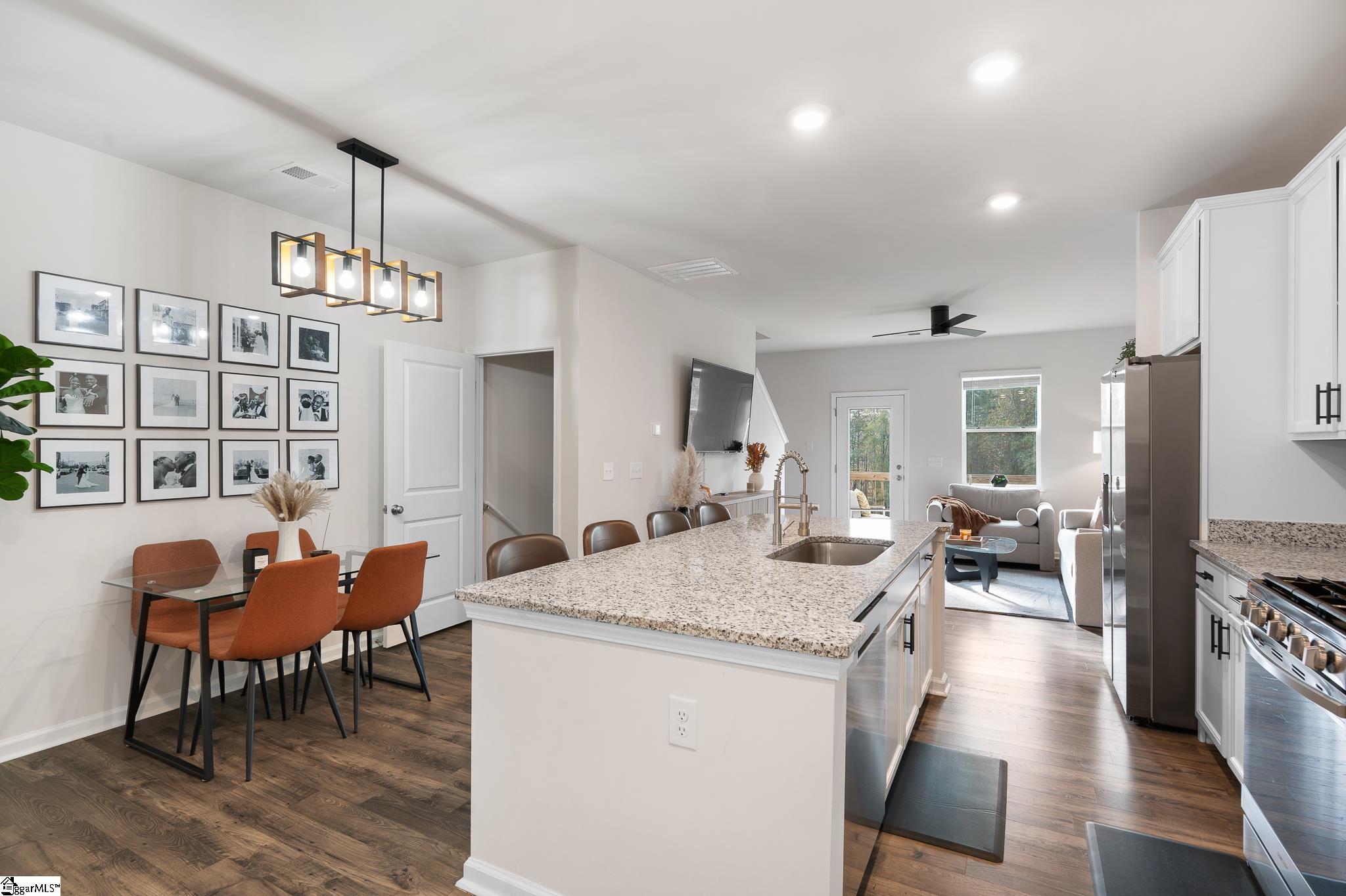This 3 Level Newly Constructed townhome is an ideal starter home or investment opportunity. With conveniently sitting second to the end, this versatile floor plan is highly functional. The main level boasts an open kitchen featuring a large center island, allowing the chef to enjoy family time while preparing meals on the gas stove with ALL your kitchen appliances included. The possibilities for this area are endless, and you can enjoy the mornings and evenings on the connected private deck. On the second floor, you'll find three spacious bedrooms with beautiful natural light, two full bathrooms, and a laundry area that will include a washer and dryer. The basement includes an additional bedroom with a full bathroom, as well as a den/rec area that provides endless potential. The backyard entrance could be fenced or transformed into a lovely deck space. Parkland Townes features walking trails, dog parks, a playground, and a swimming pool. This peaceful community is conveniently located just minutes from downtown Greenville and Interstate 85.