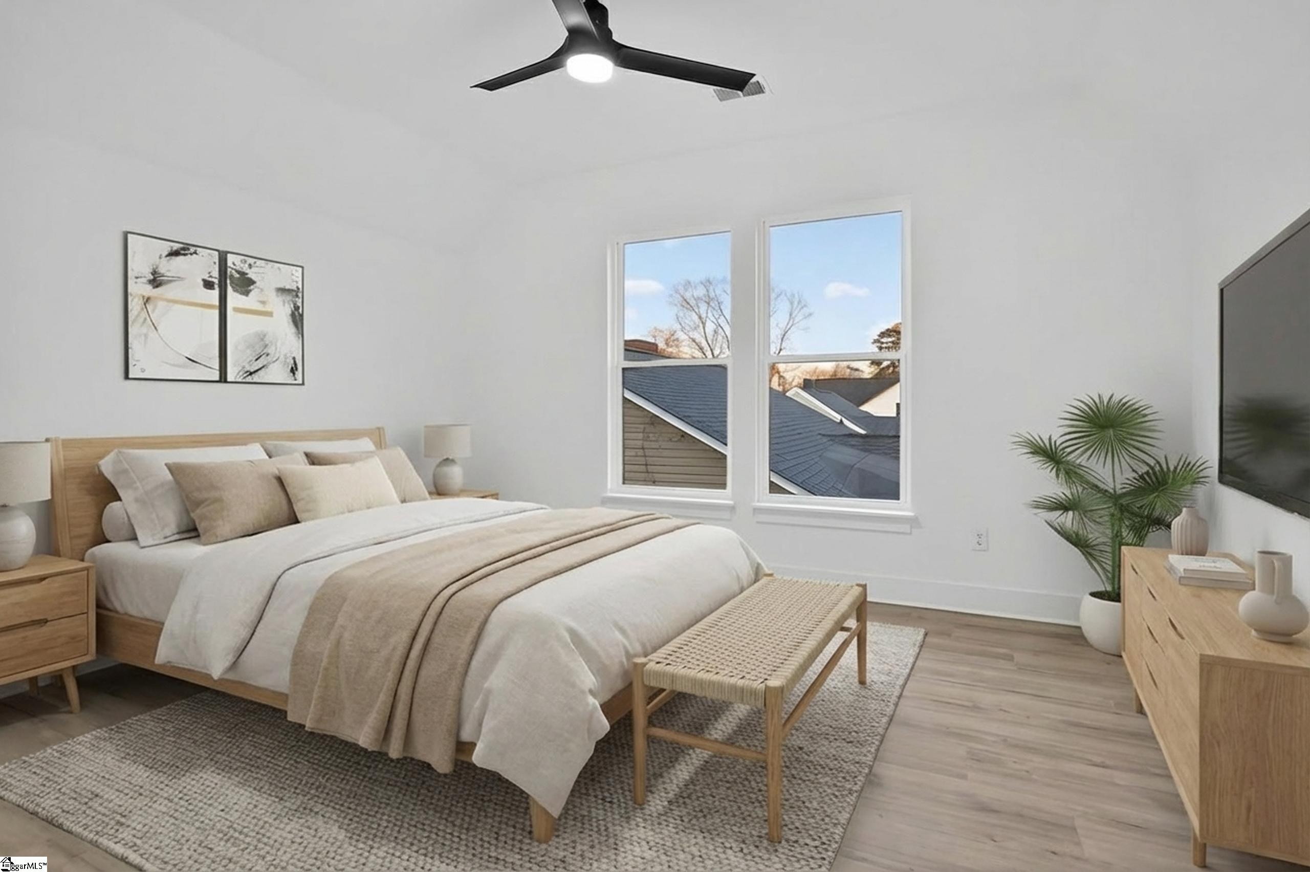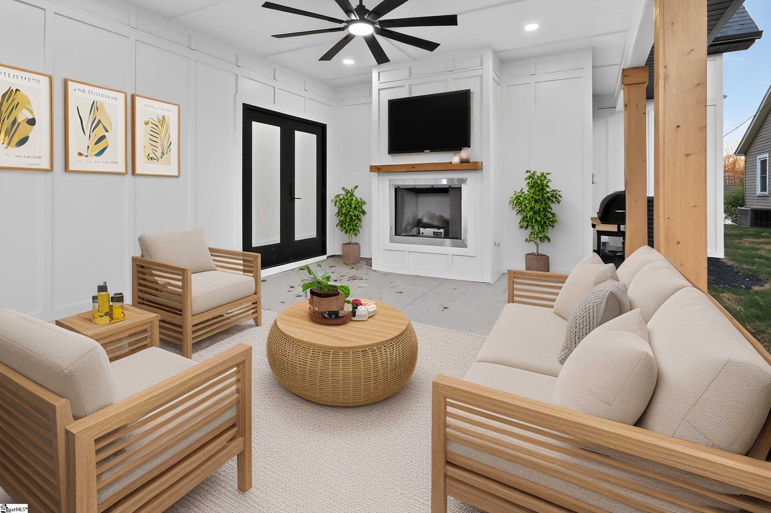 This 3-bedroom, 2.5-bath home features a well-designed open floor plan that allows the main living spaces to flow effortlessly, making it ideal for both everyday living and entertaining. The living area is anchored by a sleek ventless fireplace, adding warmth and visual interest while maintaining a clean, contemporary feel. Abundant natural light enhances the home’s bright and inviting atmosphere. The kitchen connects seamlessly to the living and dining areas, creating a functional and welcoming space. The primary bedroom provides a private retreat with an en-suite bath, while two additional bedrooms offer flexibility for guests, home office use, or additional living needs. Outdoor living is thoughtfully incorporated with a covered patio featuring an outdoor gas fireplace—perfect for enjoying all seasons. An attached one-car garage adds convenience and practicality. With its combination of new construction, modern finishes, and a prime Augusta Road location, this home offers easy access to Downtown Greenville, local amenities, and key commuting routes, delivering a lifestyle that blends comfort, style, and location.*Virtually staging for visual references only.