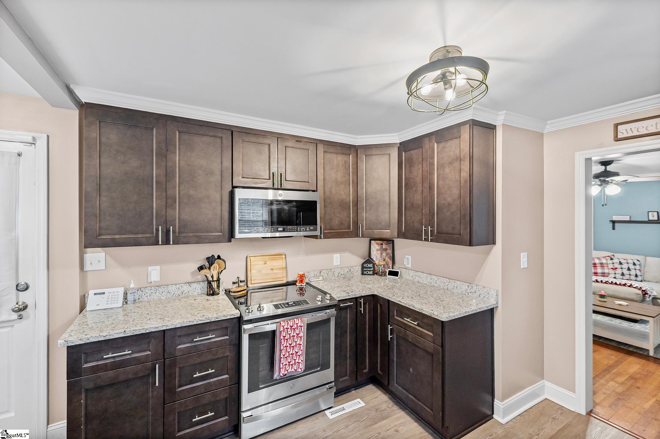 Priced well below appraised value—this is your opportunity to own in the heart of downtown Greenville at an exceptional value! Welcome to this beautifully updated 3-bedroom, 3-bath residence in the highly desirable Augusta Road area of Greenville, SC, where classic character meets thoughtful modern updates. Built in 1962, this home offers timeless charm paired with improvements that make everyday living easy and comfortable. Step inside and be greeted by gleaming hardwood floors that run throughout the main living spaces and bedrooms, creating a warm and inviting atmosphere. The spacious living room flows effortlessly into the fully remodeled kitchen, complete with new wiring and plumbing, custom cabinetry, granite countertops, and stainless steel appliances—ideal for both cooking and entertaining. A cozy eat-in area adds the perfect spot for morning coffee or casual meals. The primary suite provides a peaceful retreat, featuring a large walk-in closet and a private ensuite bath highlighted by a butcher-block vanity and tub/shower combo. Each of the two additional bedrooms also offers its own full bath—an ideal layout for guests, roommates, or multi-generational living. Don’t overlook the fully floored attic, providing excellent bonus storage space. Outdoor living truly shines here. Enjoy both a covered and screened porch as well as a spacious deck, offering fantastic options for entertaining, dining outdoors, or simply unwinding in your private, fenced backyard. A storage shed adds even more functionality. Parking is a breeze with an extended paved driveway to accommodate guests and multiple vehicles. This home also boasts major improvements including a new 30-year roof along with a durable metal roof on the back of the home for added peace of mind. Inside, you’ll find a well-sized dedicated laundry room with extra storage that makes staying organized easy. Location truly sets this home apart—less than one mile from Prisma Greenville Memorial Hospital and minutes from Augusta Road shopping, dining, parks, and schools, with downtown Greenville just around the corner. You’re also only 20 minutes from GSP International Airport, making travel effortless. Homes like this, in this location, at this price, rarely come along. Schedule your private showing today before this opportunity is gone!