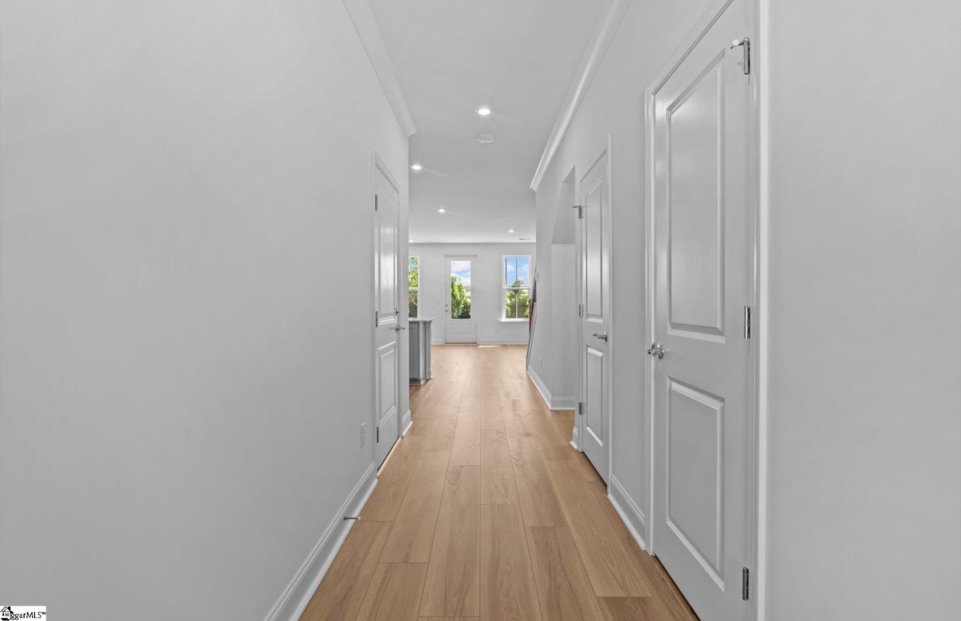 Enjoy 2 covered porches! Interior features include 7" Luxury Vinyl Plank Flooring, Quartz Countertops, Whirlpool Stainless Steel Gas Range and vented to the outside, Smart Home Pre Wiring and more! This 2 Covered Porches, Upgraded Levels of Interior Finishes and Upgraded Electrical Package. Hardie Board cement siding, 9ft ceilings on main and 2nd floor, 3/4 Lite 8ft front-entry door, carriage-style garage doors with windows, and solid brick accents at waterline level around the front and rear elevations. Residents enjoy a Dog Park, Community Fire Pit and Pavilion. Driveways are 2-car width and 1 attached! garage. Builder-Backed-Warranty includes a 1yr builder materials/finishes, 2-year systems/technical, 10-y!ear structural PLUS a rare 5-year leak protection warranty! Perfect central location within minutes from downtown Greenville, nearby shopping and commuting highways.