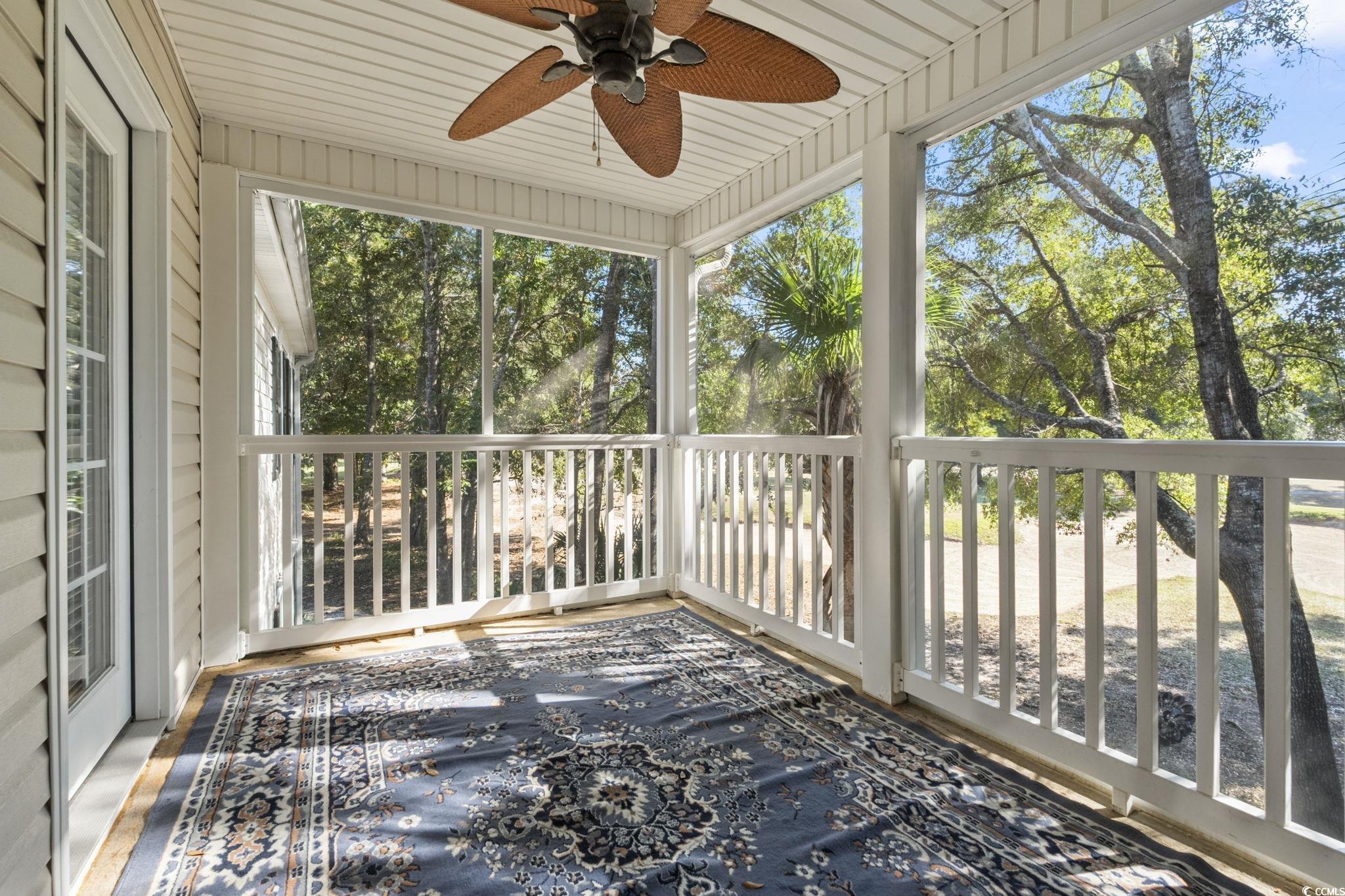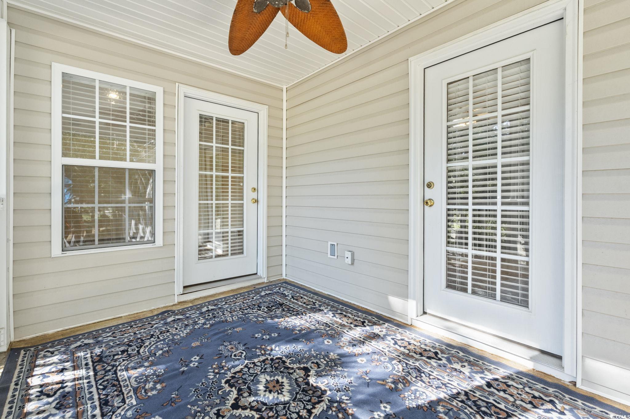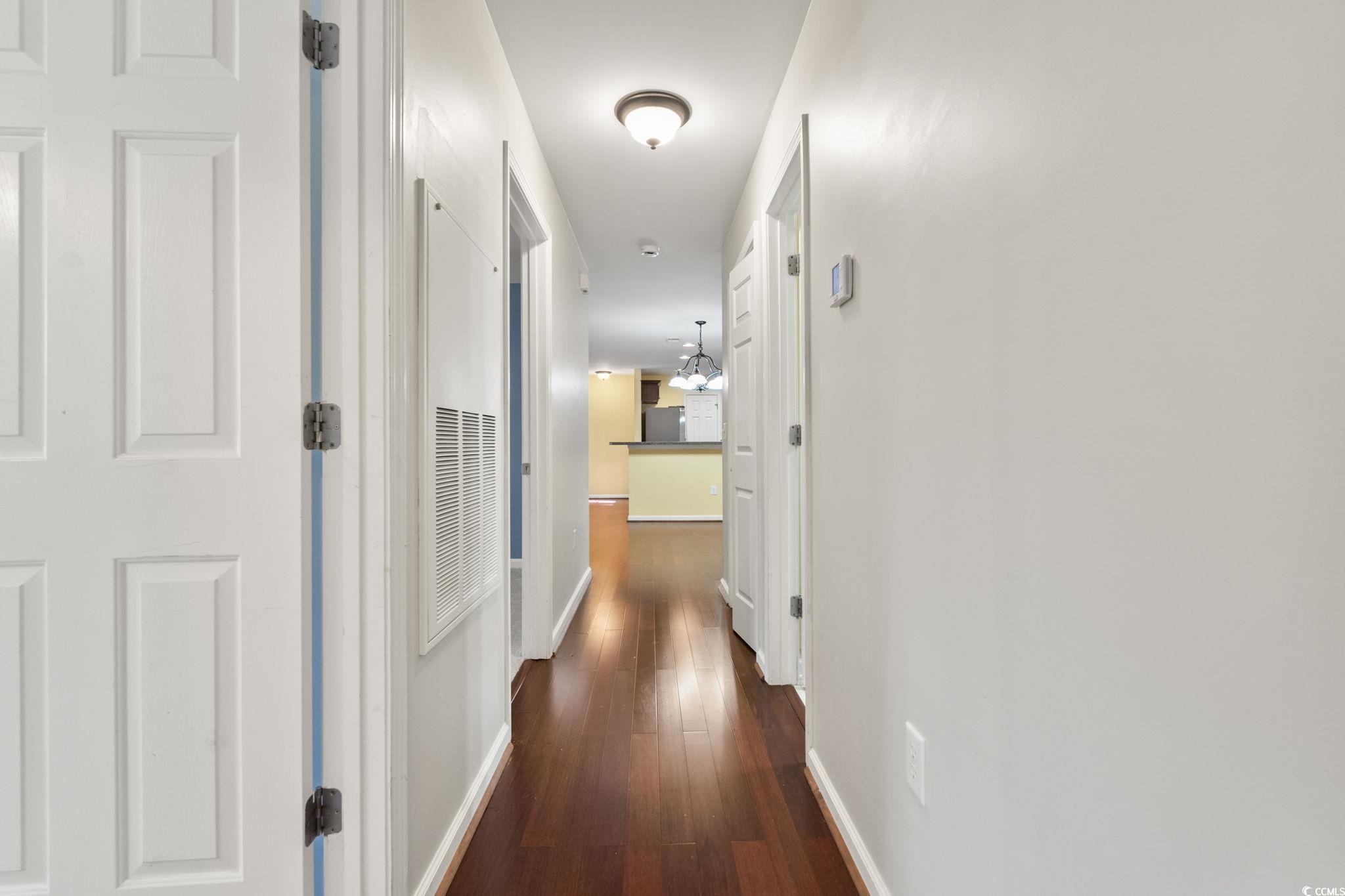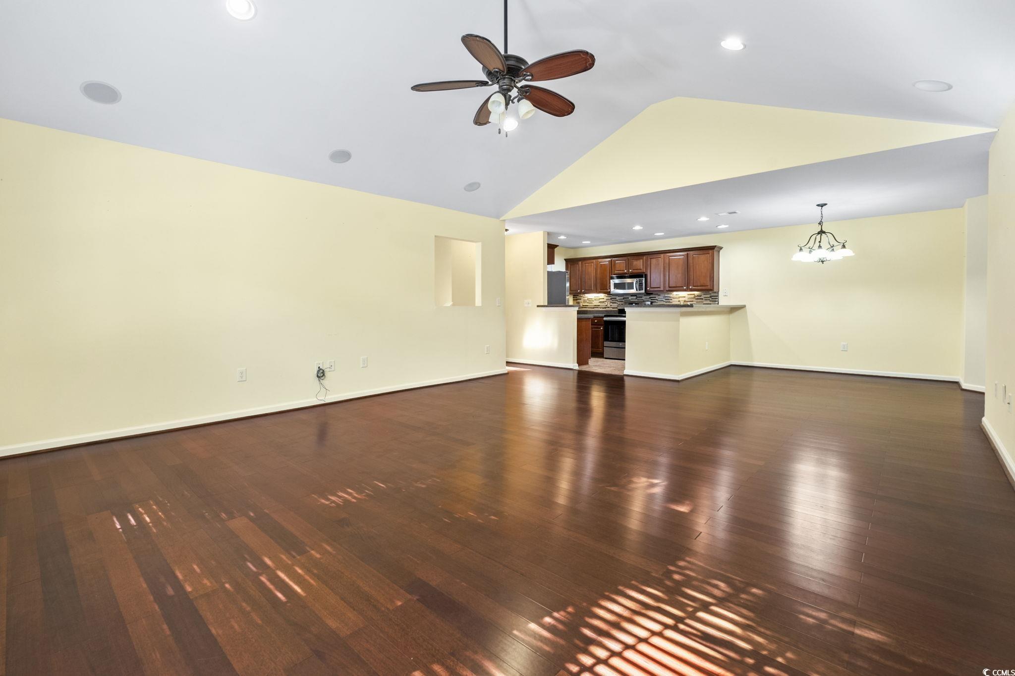 All the space you need, in a community where every day feels like a getaway, with 3 spacious bedrooms, 2 full bathrooms, and soaring ceilings with an abundance of natural light in the living area. The layout is open and functional, designed to maximize comfort and privacy. The spacious living room with vaulted ceilings flows seamlessly into the dining area and kitchen, creating a bright and inviting central gathering space. The kitchen features stainless steel appliances, granite-style counters, tile backsplash, and plenty of cabinetry for storage. The primary suite is tucked away with its own walk-in closet and full bath, while two additional bedrooms and baths provide flexibility for family, guests, or a home office. One bedroom enjoys private access to a screened balcony, perfect for relaxing outdoors with golf course views. Hardwood floors, fresh paint, new carpeting in guest rooms and thoughtful updates throughout make this home truly turnkey. As a resident of the gated Wachesaw East and Winchester community, you'll enjoy an impressive list of amenities including two resort-style pools, tennis and pickleball courts, a well-equipped fitness center, and miles of scenic walking and fitness trails. HOA dues cover exterior maintenance, landscaping, pest control, insurance, garbage removal, and 24/7 gated security - providing both convenience and peace of mind. The location places you minutes from the Murrells Inlet MarshWalk, Huntington Beach State Park, Brookgreen Gardens, a public marina, and Tidelands Hospital. Whether you're searching for a primary residence or a weekend retreat, this property offers a relaxed coastal lifestyle in a premier golf course community where every day feels like a getaway. Measurements are not guaranteed. Buyer is responsible for verifying.