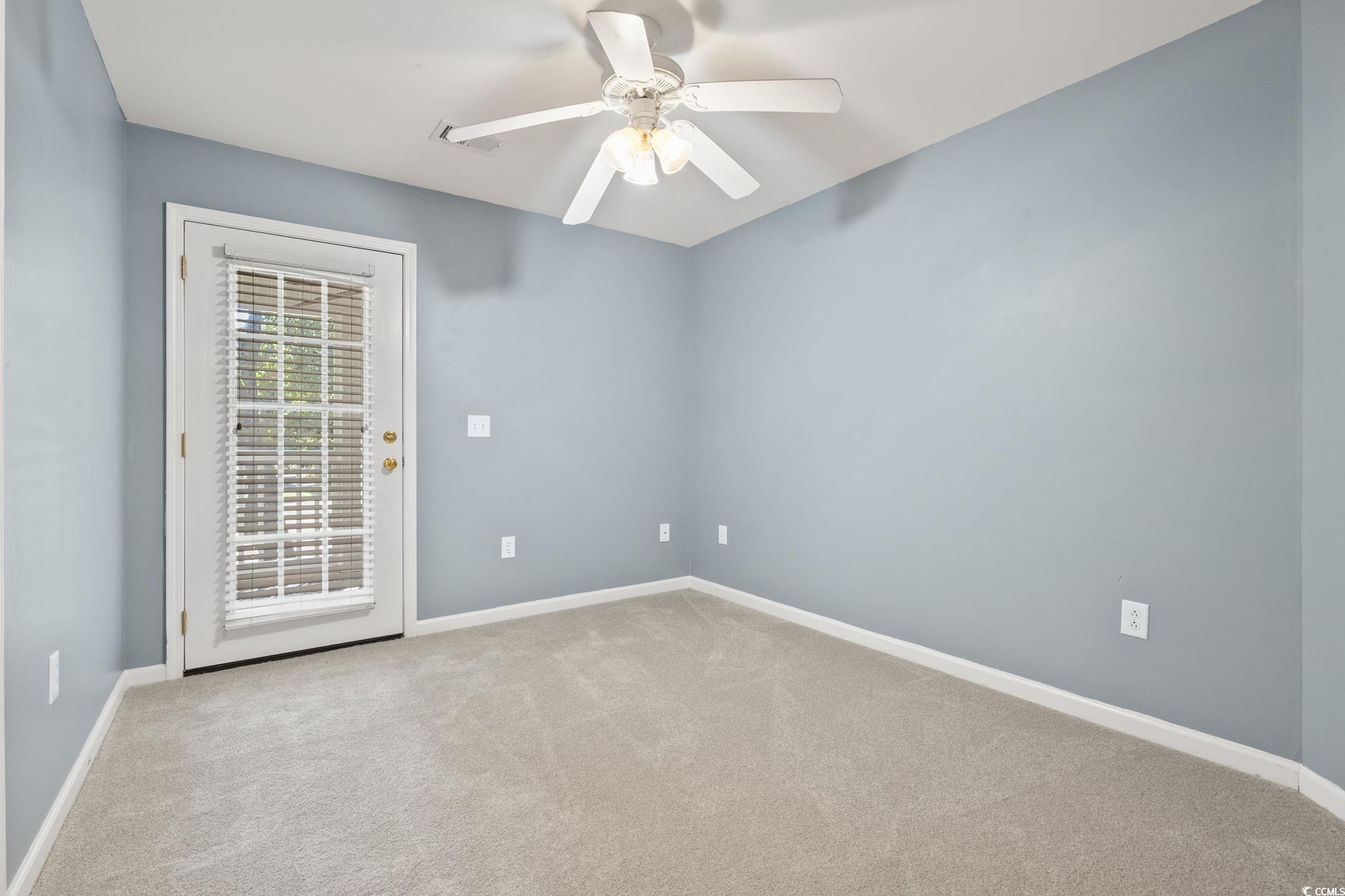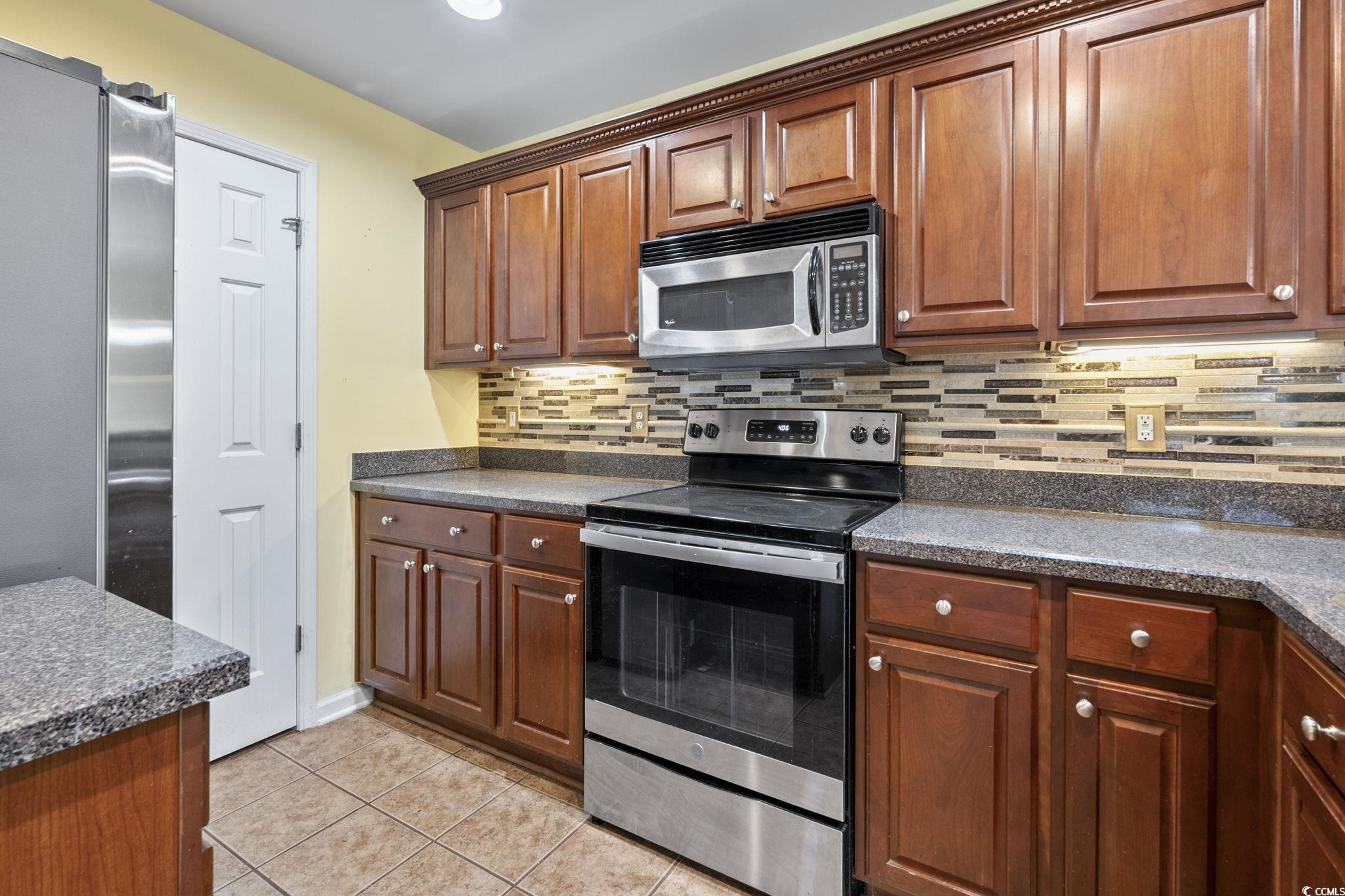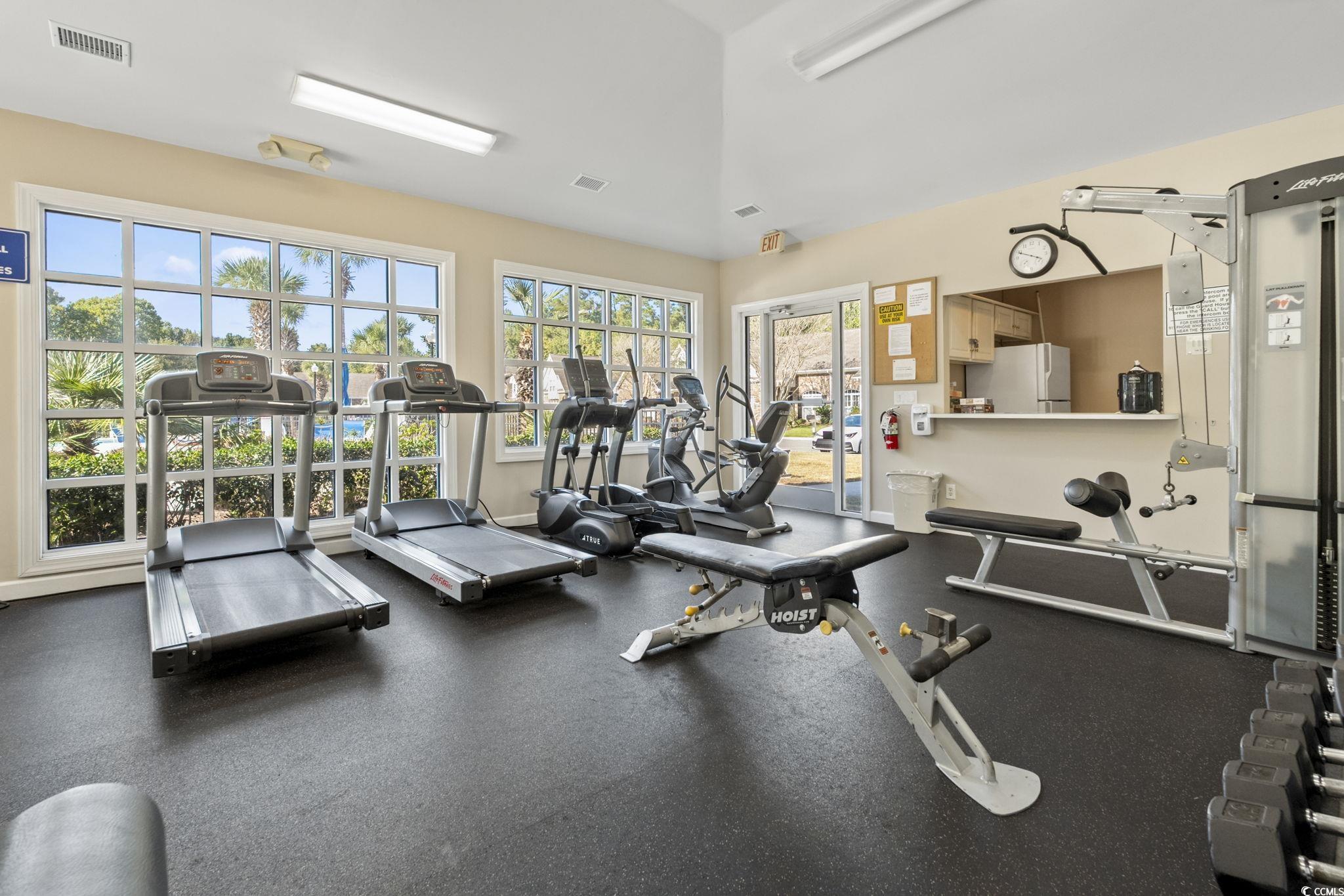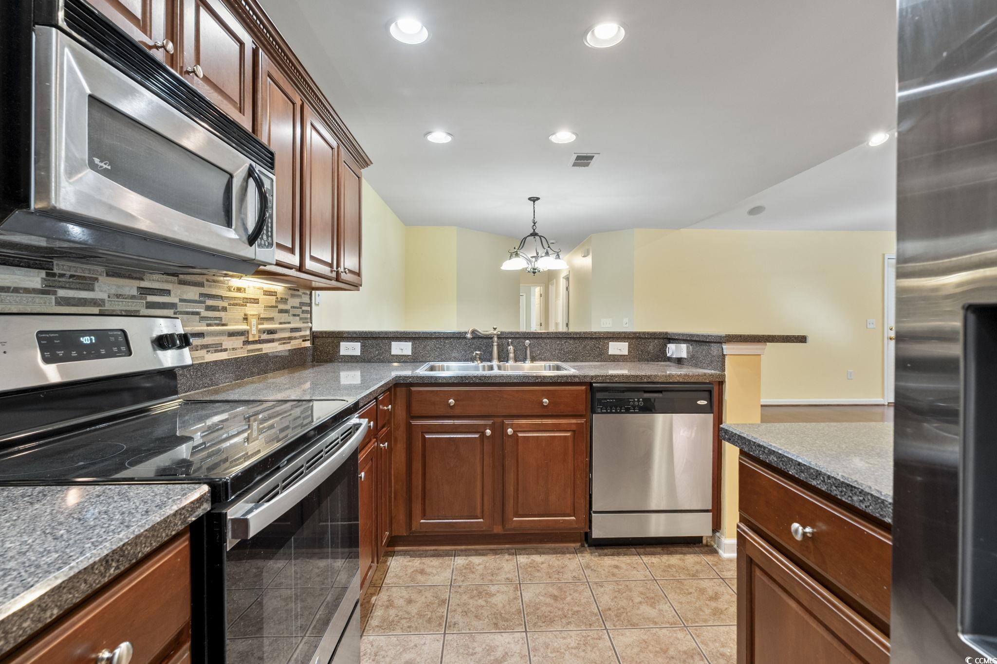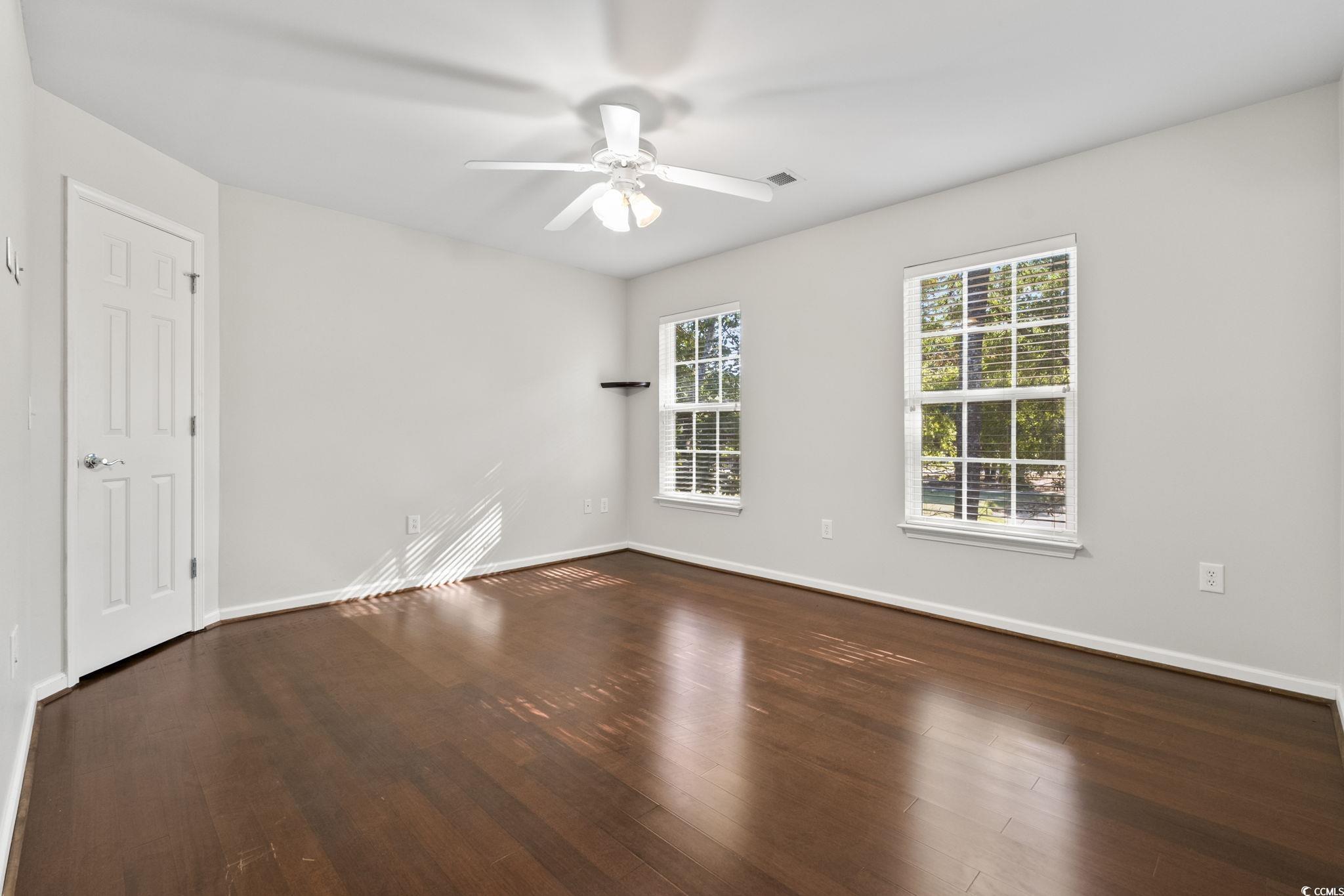 All the space you need, in a community where every day feels like a getaway, with 3 spacious bedrooms, 2 full bathrooms, and soaring ceilings with an abundance of natural light in the living area. The layout is open and functional, designed to maximize comfort and privacy. The spacious living room with vaulted ceilings flows seamlessly into the dining area and kitchen, creating a bright and inviting central gathering space. The kitchen features stainless steel appliances, granite-style counters, tile backsplash, and plenty of cabinetry for storage. The primary suite is tucked away with its own walk-in closet and full bath, while two additional bedrooms and baths provide flexibility for family, guests, or a home office. One bedroom enjoys private access to a screened balcony, perfect for relaxing outdoors with golf course views. Hardwood floors, fresh paint, new carpeting in guest rooms and thoughtful updates throughout make this home truly turnkey. As a resident of the gated Wachesaw East and Winchester community, you'll enjoy an impressive list of amenities including two resort-style pools, tennis and pickleball courts, a well-equipped fitness center, and miles of scenic walking and fitness trails. HOA dues cover exterior maintenance, landscaping, pest control, insurance, garbage removal, and 24/7 gated security - providing both convenience and peace of mind. The location places you minutes from the Murrells Inlet MarshWalk, Huntington Beach State Park, Brookgreen Gardens, a public marina, and Tidelands Hospital. Whether you're searching for a primary residence or a weekend retreat, this property offers a relaxed coastal lifestyle in a premier golf course community where every day feels like a getaway. Measurements are not guaranteed. Buyer is responsible for verifying.