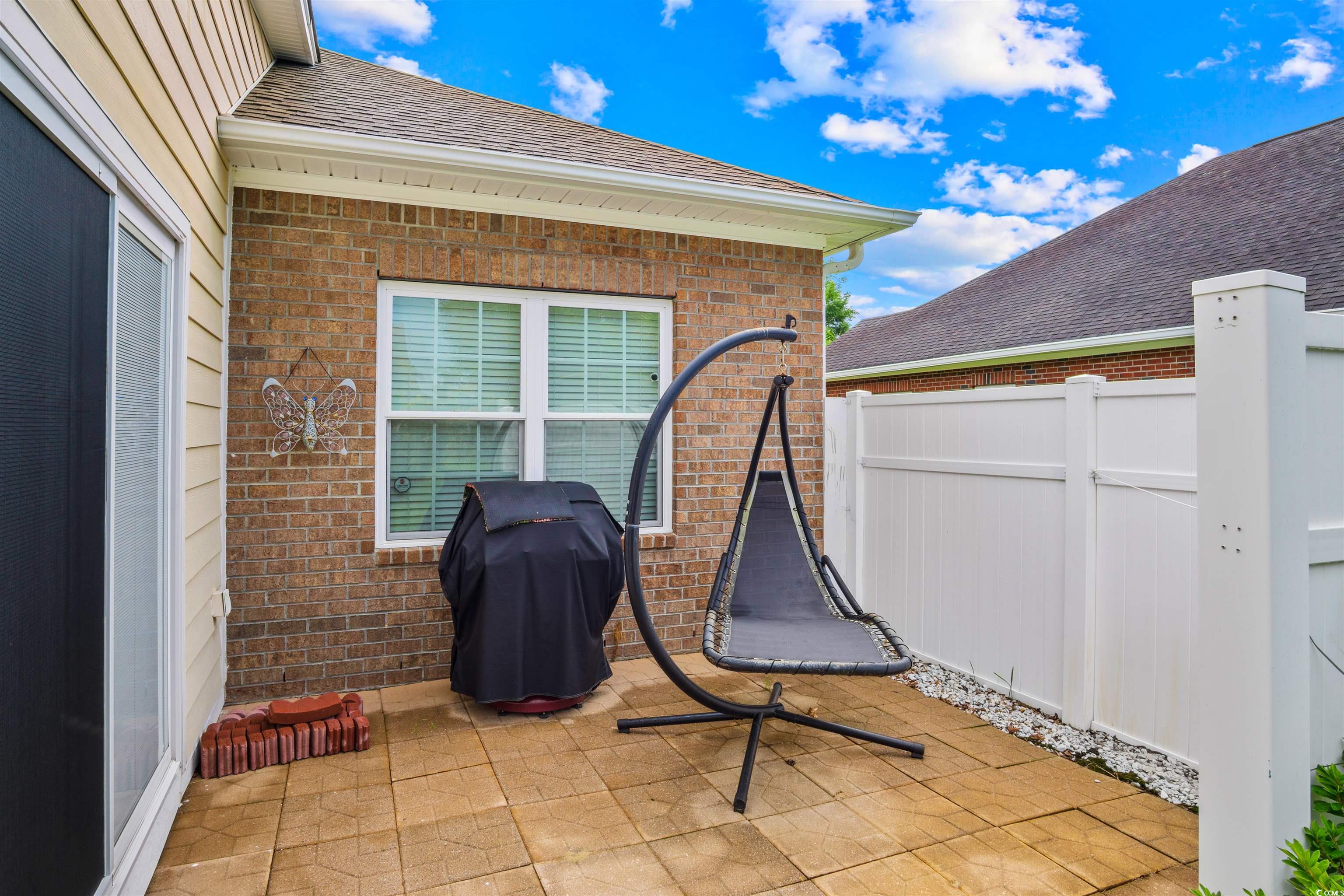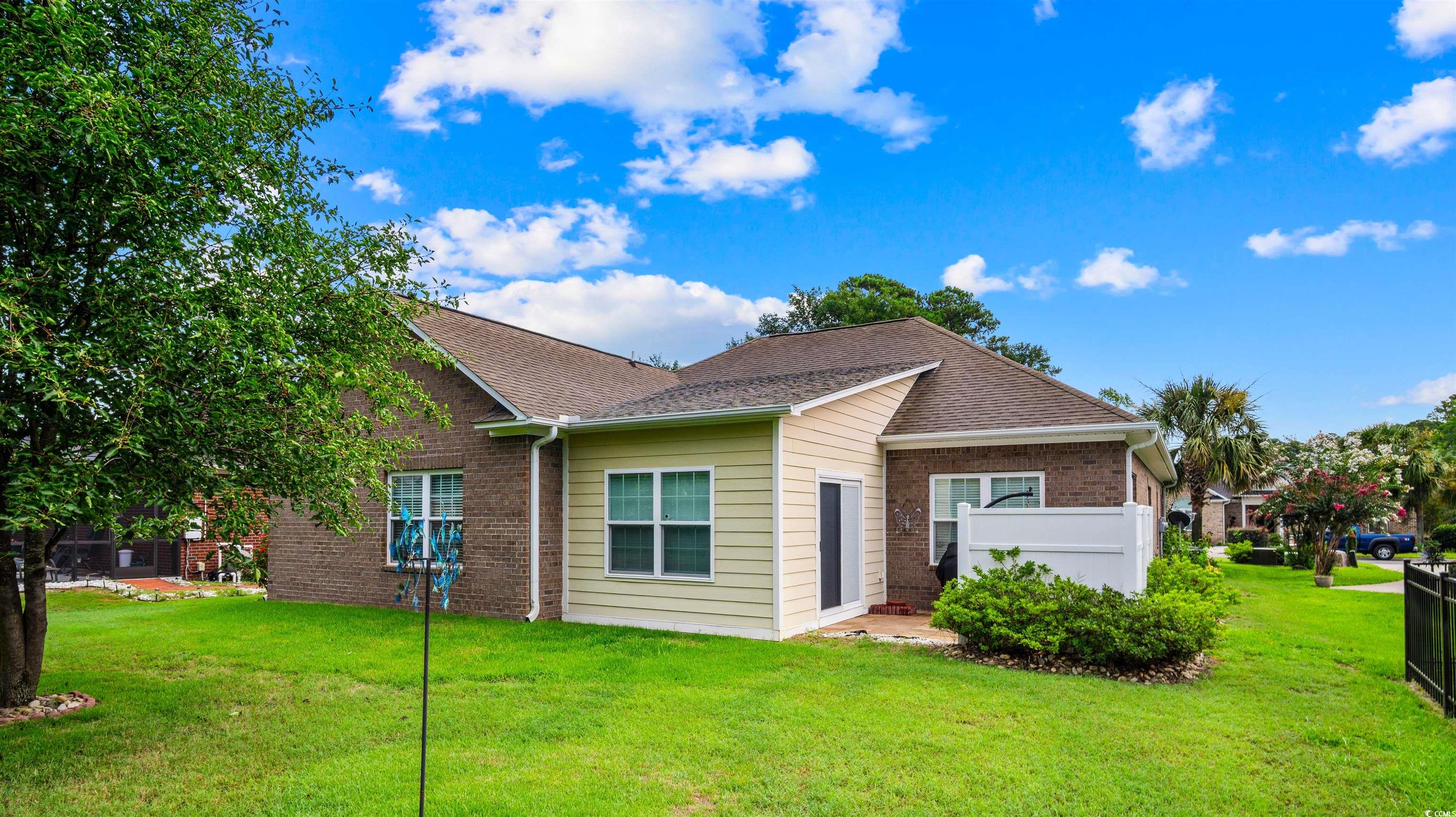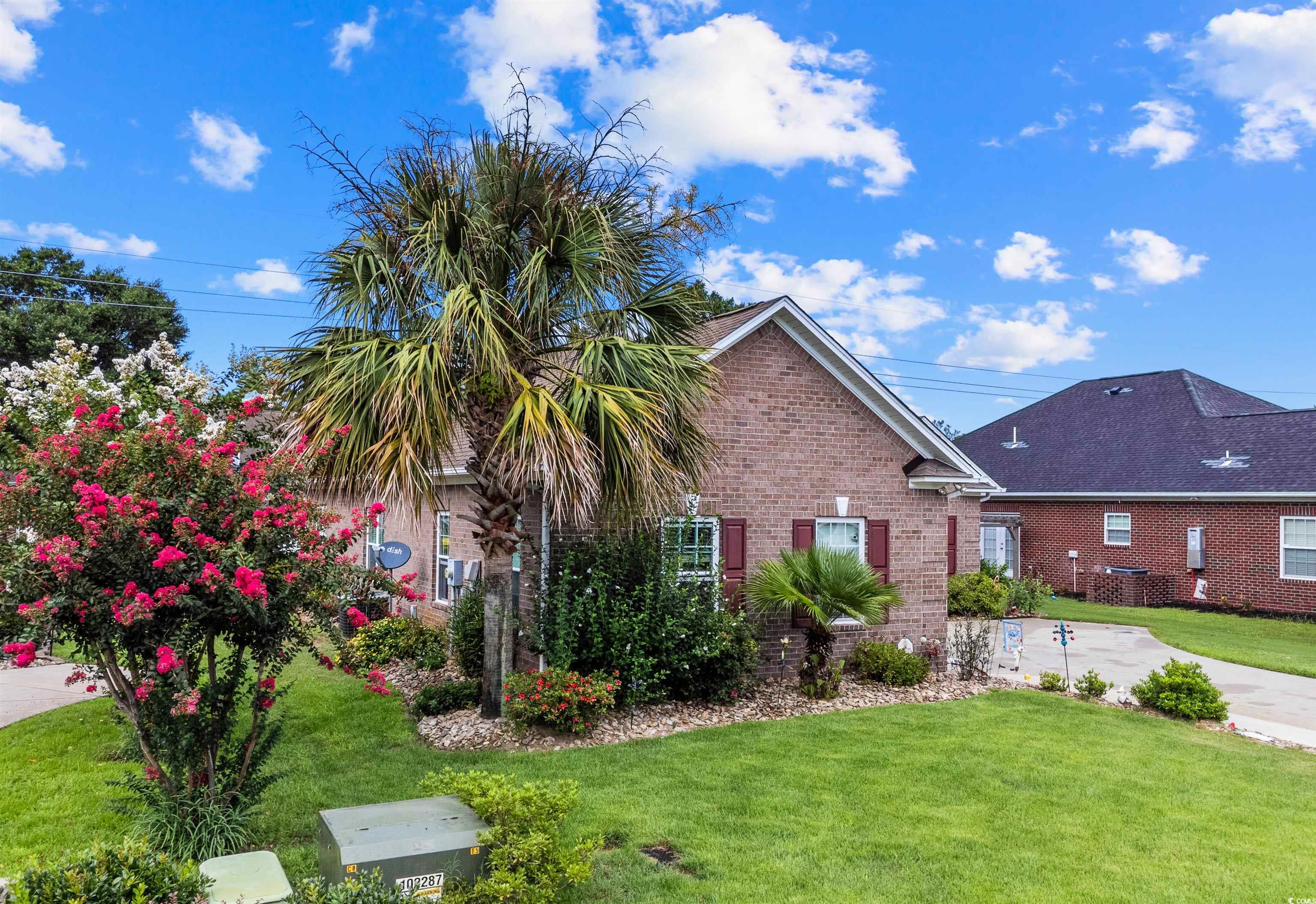 Beautiful brick home in small secluded quiet neighborhood of The Preserve. The home has a fantastic lake view and only a quick 5 minute golf cart ride to the beautiful blue Atlantic Ocean! This 3 bedroom 2 bath split bedroom floorplan is great for all the family and has been meticulously maintained. The kitchen is a wonderful center of the home boasting beautiful quartz counters, large center work island, breakfast room, upgraded cabinets, recessed lighting, chair railing and wood flooring. The island bar is a plus for entertaining guests and family gatherings. The kitchen also has wood blinds, large tile flooring and large pantry for storage. The kitchen opens up into living room so everyone can socialize. The dining room is spacious with wood floors and chair railing that accentuate this home. The living room/family room is beautifully appointed with tray ceiling, wood floors and recessed lighting. Just off the living area is a pocket door that opens up into the newly added lanai for relaxation and conversation. The Master bedroom is its own oasis for privacy with large ensuite including a garden tub, oversize beautifully tiled shower and double vanities. The master walk-in closet has an abundance of custom shelving and storage for hanging all of your clothes, shoes and storage needs. The 2 other bedrooms share a guest bathroom which provides plenty of space for family and friends to quietly enjoy. The laundry room is large with hanging space and a sink for soaking. The garage is oversized with custom privacy screens, workshop area and pull down attic storage. The yard is professionally landscaped with Zoysia grass and mature flowering trees and shrubs. Located at the beginning of Restaurant Row and convenient to all the highlights of Myrtle Beach - Alabama Theater, Carolina Opry, Dublin Winery, Barefoot Landing & Tanger Outlets. Don't miss this opportunity to own a slice of paradise!