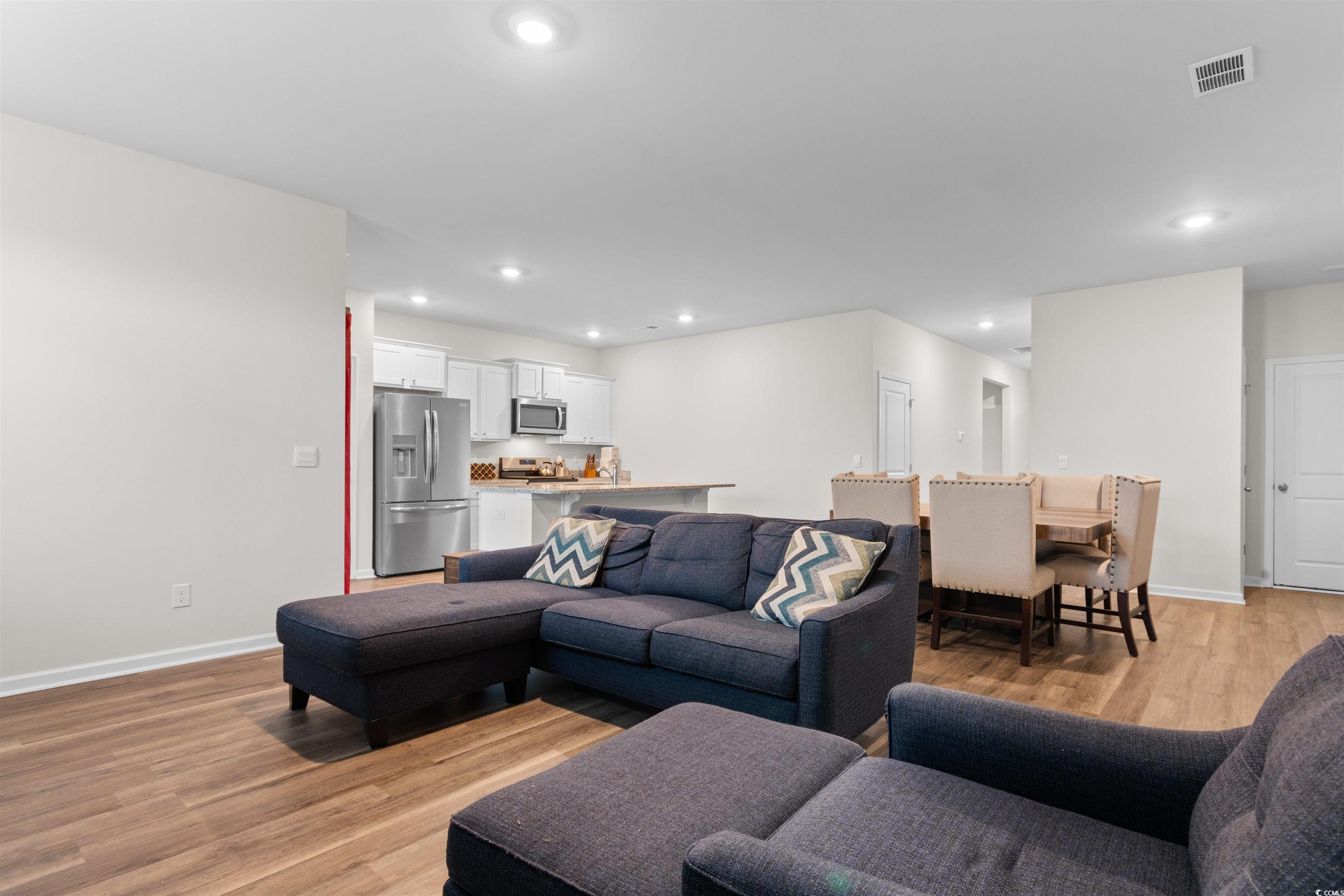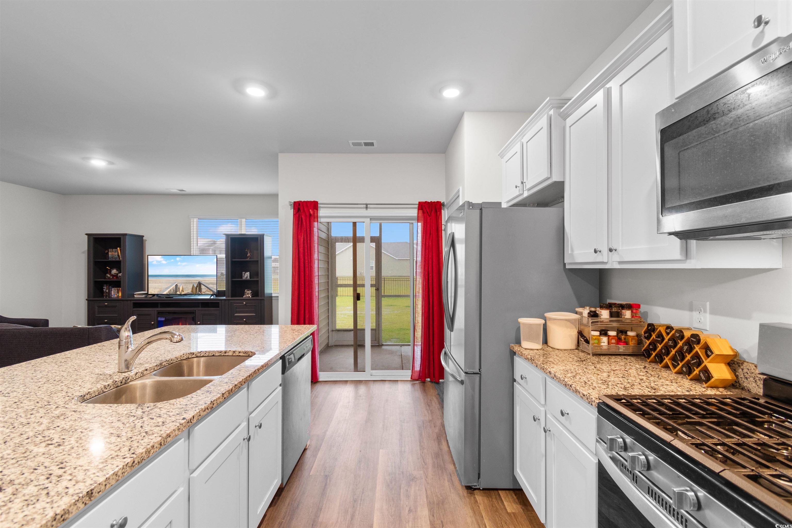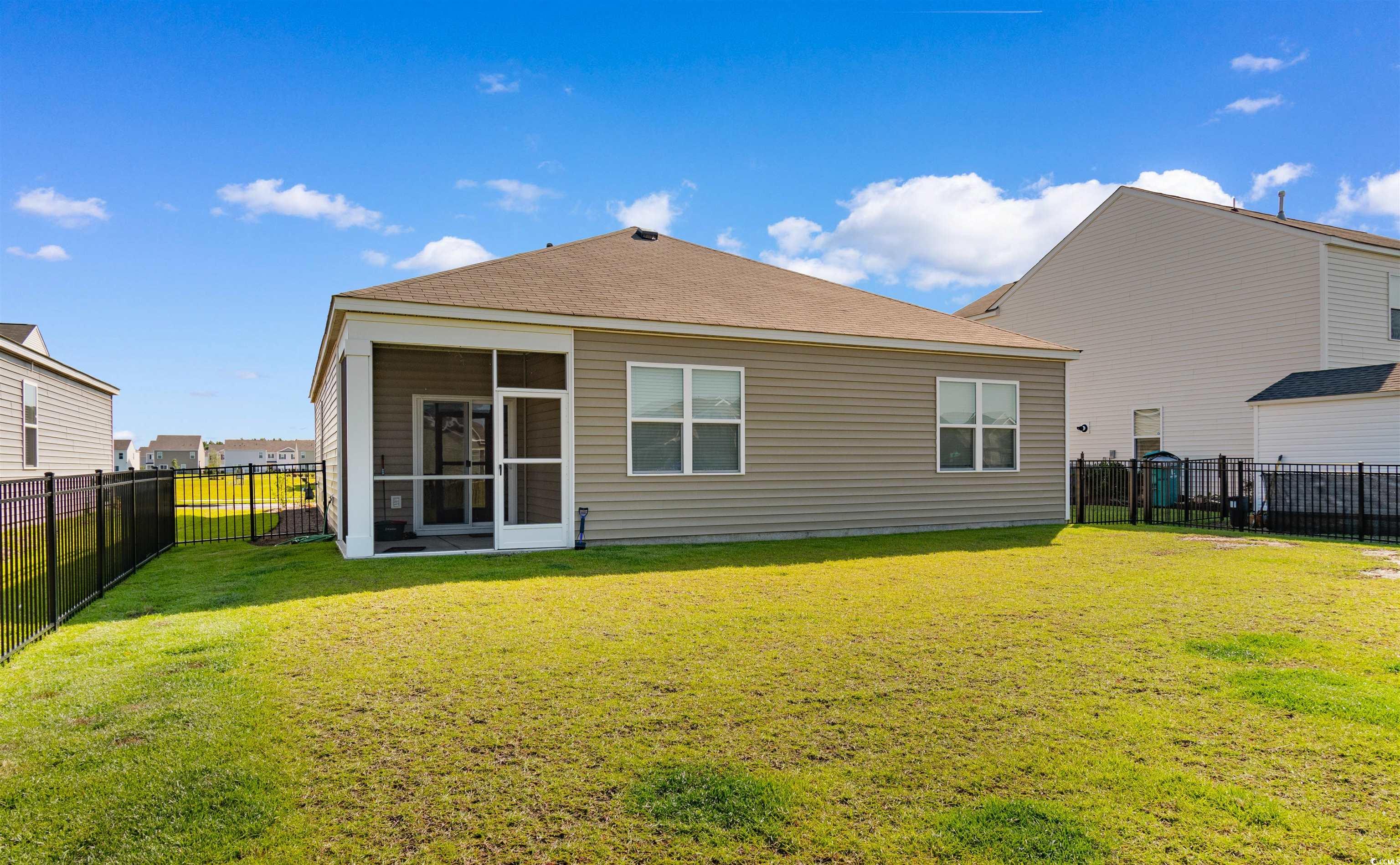 Discover easy living in this thoughtfully designed 3-bedroom, 2-bath home in the sought-after Village Oaks community of Myrtle Beach. With its open layout, modern finishes, and peaceful pond views from the backyard, this move-in ready home offers a comfortable, low-maintenance coastal lifestyle in a convenient location. A functional floor plan connects the kitchen, dining, and living areas—creating a natural flow that's ideal for daily living or casual get-togethers. The kitchen features granite countertops, stainless steel appliances, a large island with bar seating, and a pantry for extra storage. The primary bedroom serves as a relaxing retreat with an ensuite bath and walk-in closet, while two additional bedrooms offer flexibility for guests, work-from-home space, or hobbies. Out back, enjoy your covered porch and fenced yard, with serene pond views off to the side—a peaceful setting for outdoor relaxation or play. Additional highlights include a 2-car garage, tankless water heater, and smart home technology for added comfort and convenience. As a resident of Village Oaks, you’ll have access to a thoughtfully designed amenity center featuring a pool that overlooks a picturesque lake with a fountain, plus pickleball courts—a perfect way to unwind and connect with neighbors. The community’s location offers easy access to Highway 31, International Drive, shopping, dining, and, of course, the sandy shores of Myrtle Beach. Don’t miss your chance to own this charming home with pond views in one of Myrtle Beach’s most convenient and welcoming neighborhoods. Schedule your showing today!
